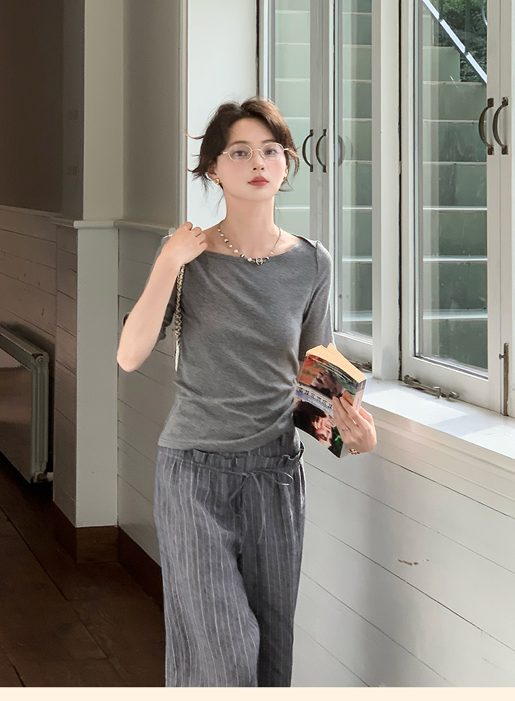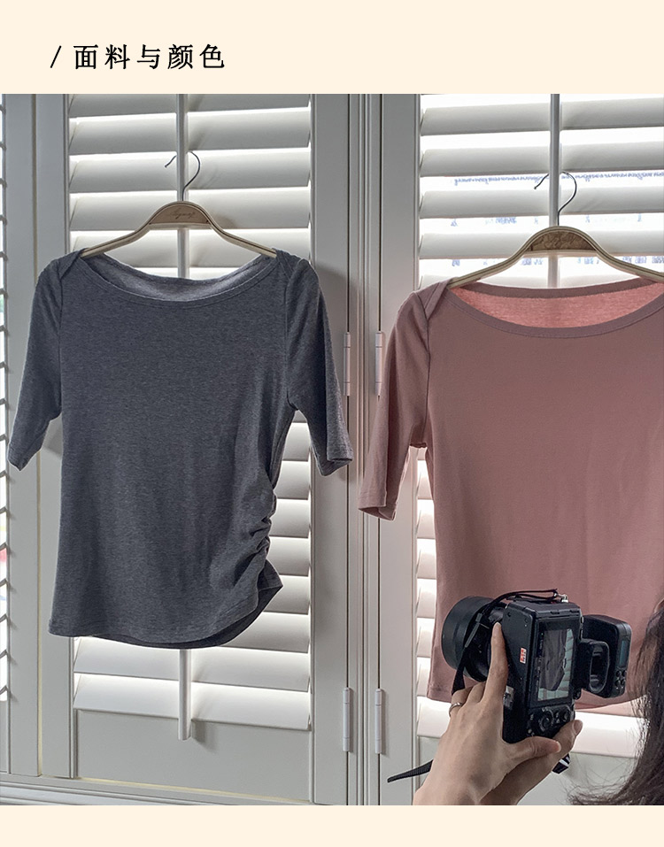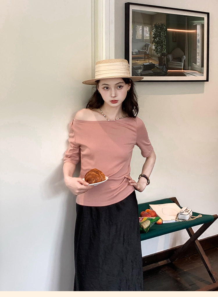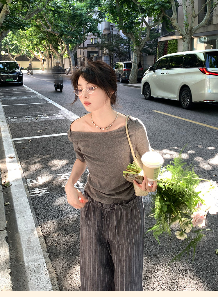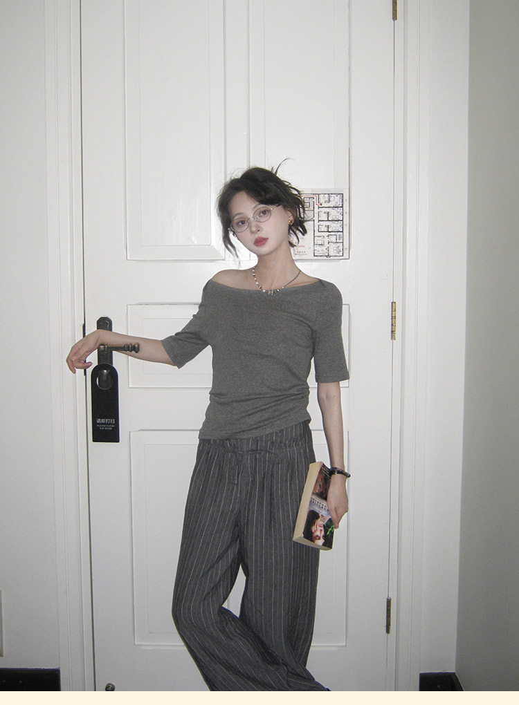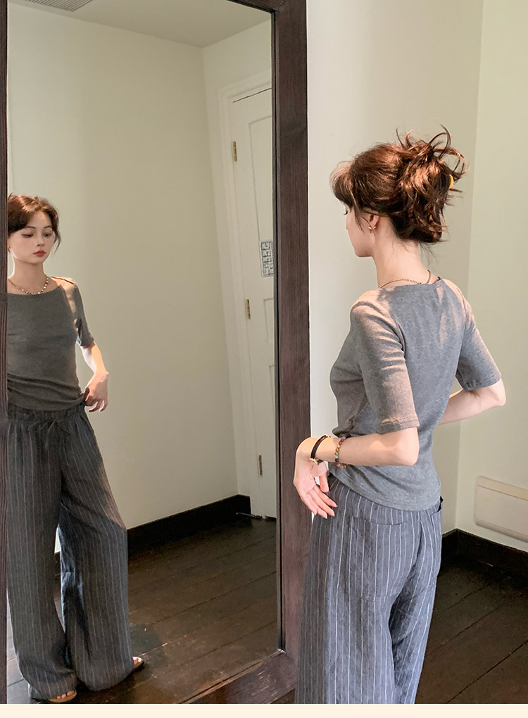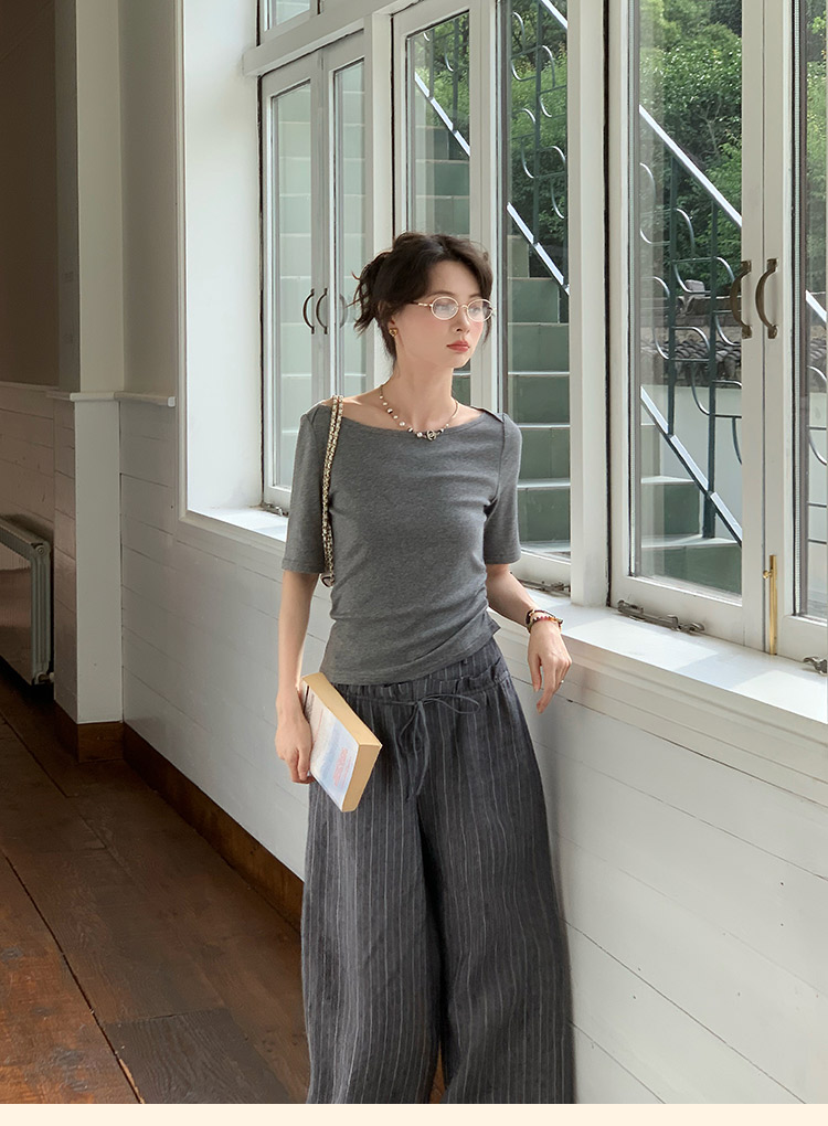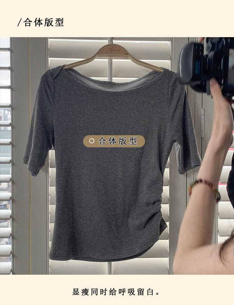 浮生八记/25B100/修身显瘦一字领短袖T恤