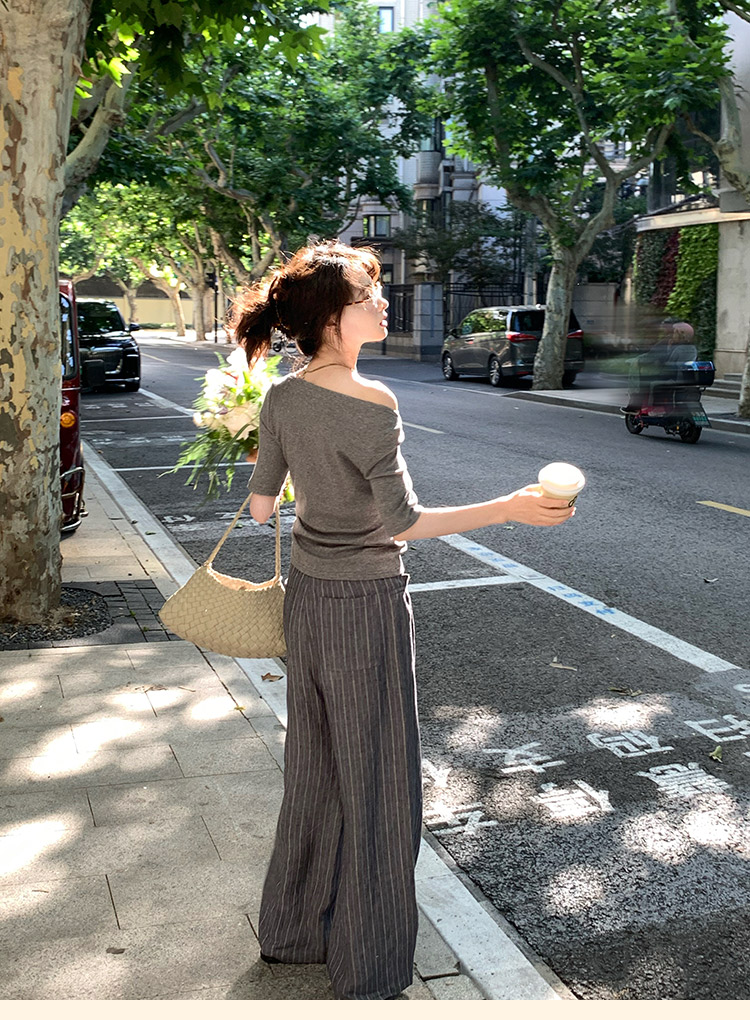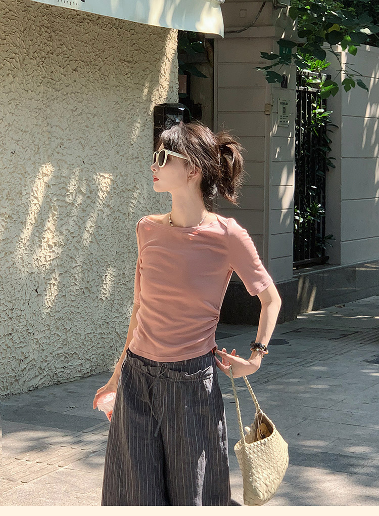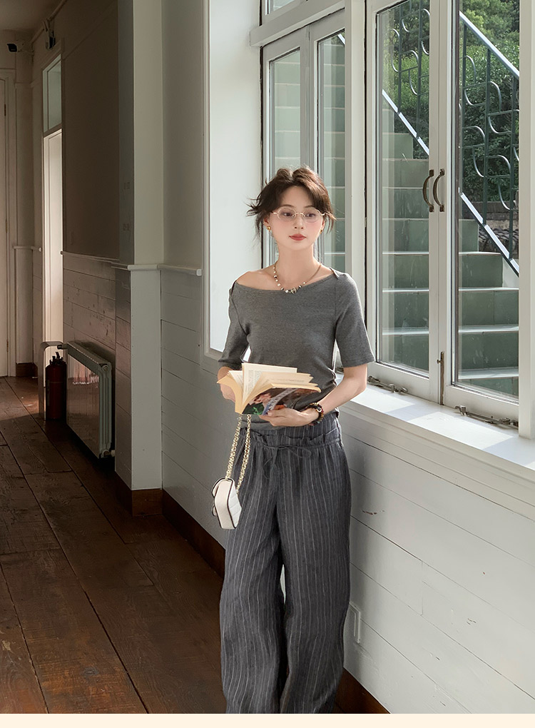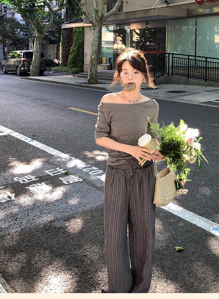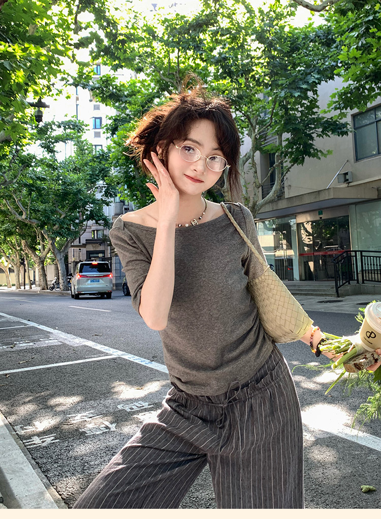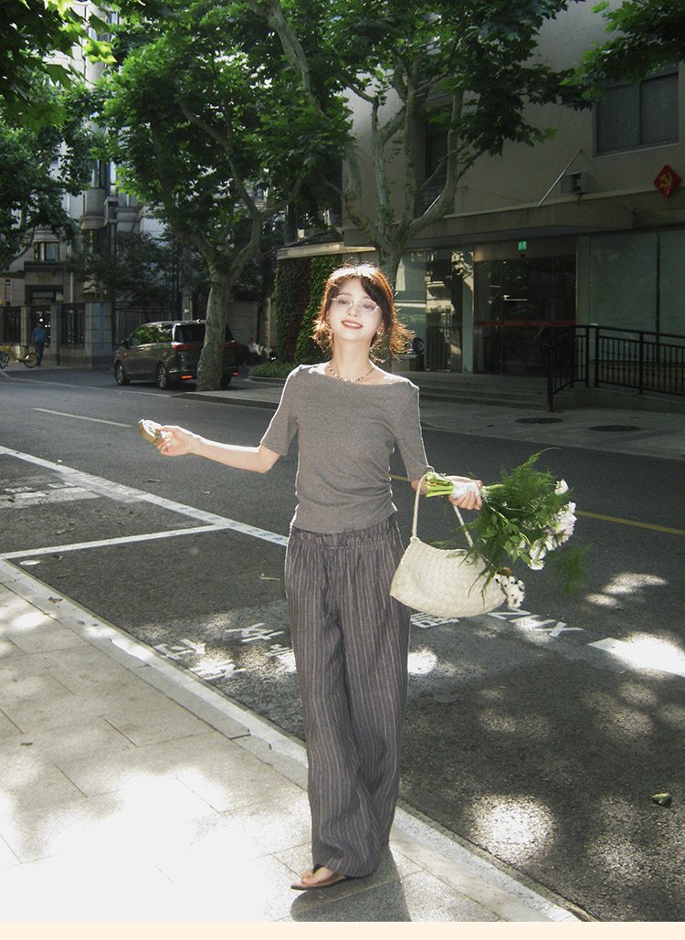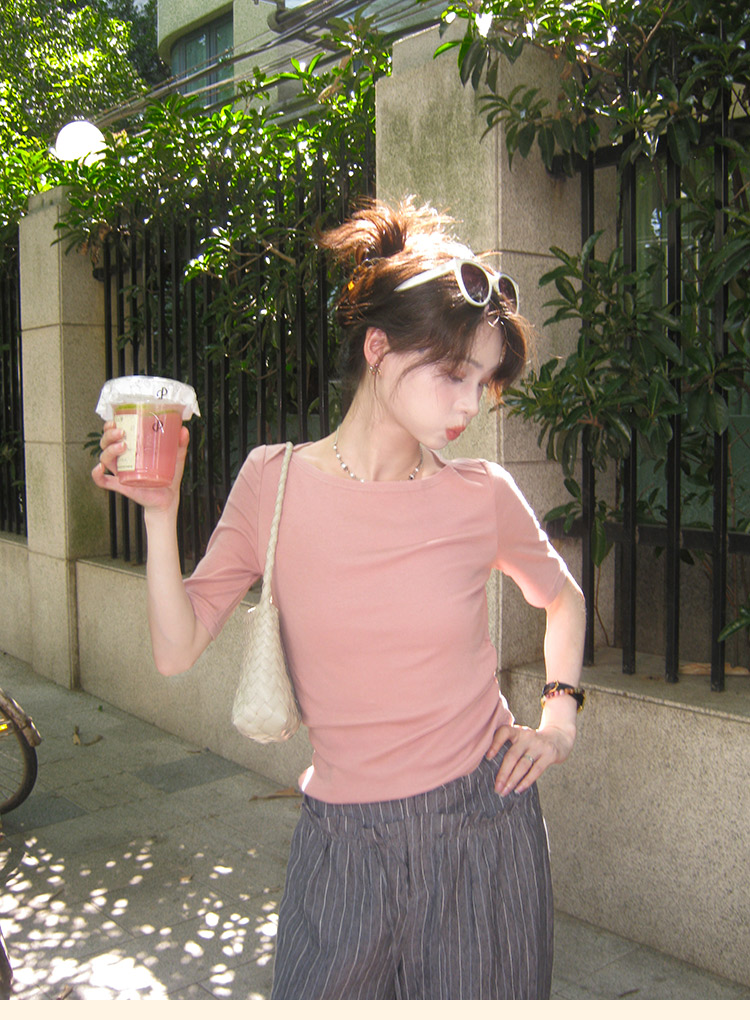 浮生八记/25B100/修身显瘦一字领短袖T恤
