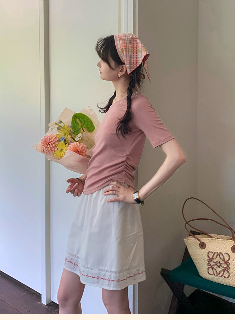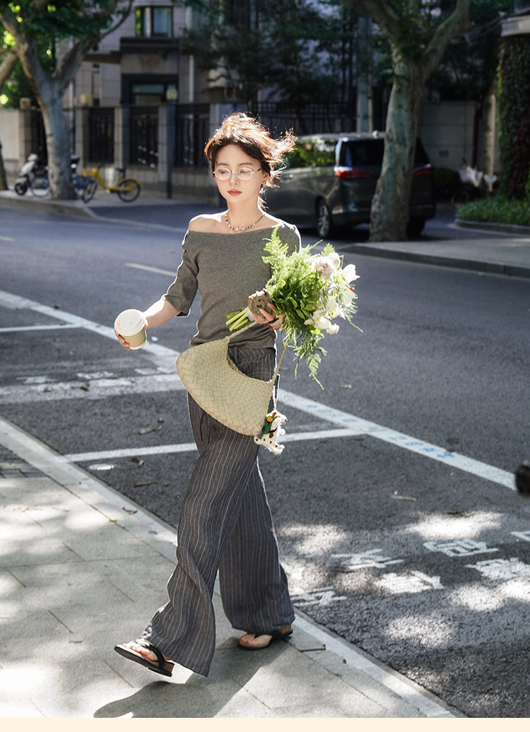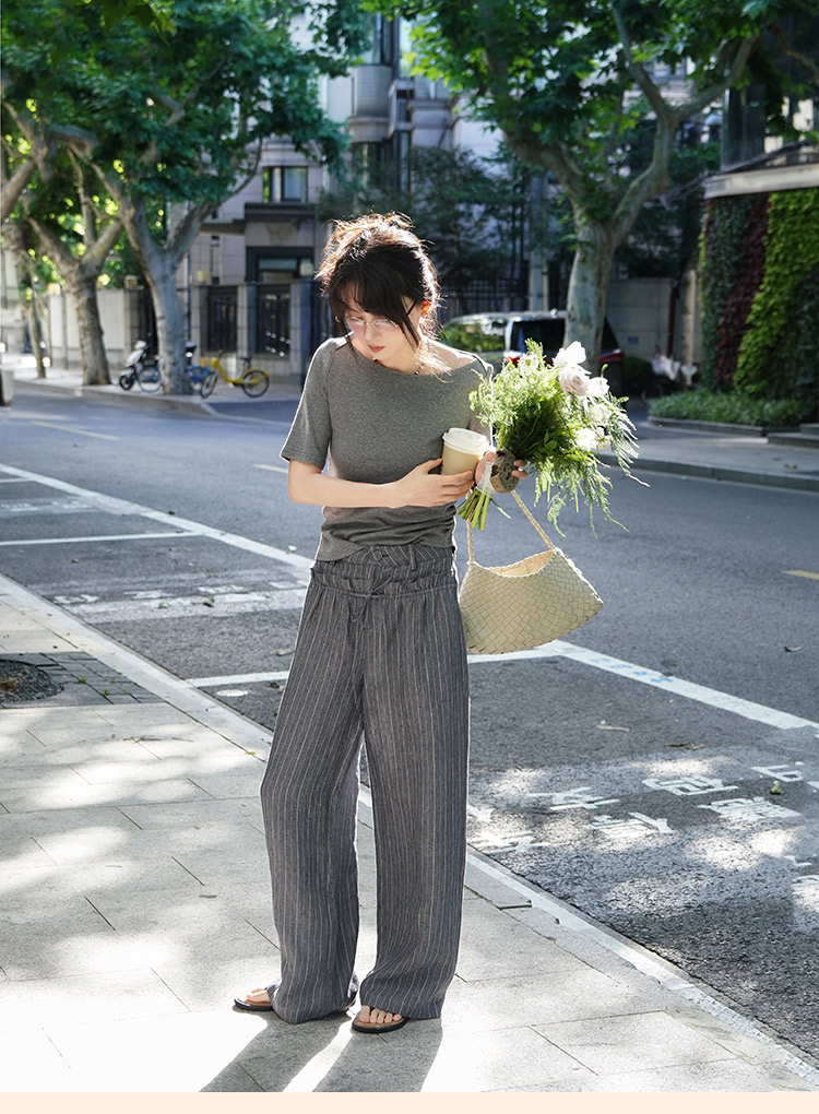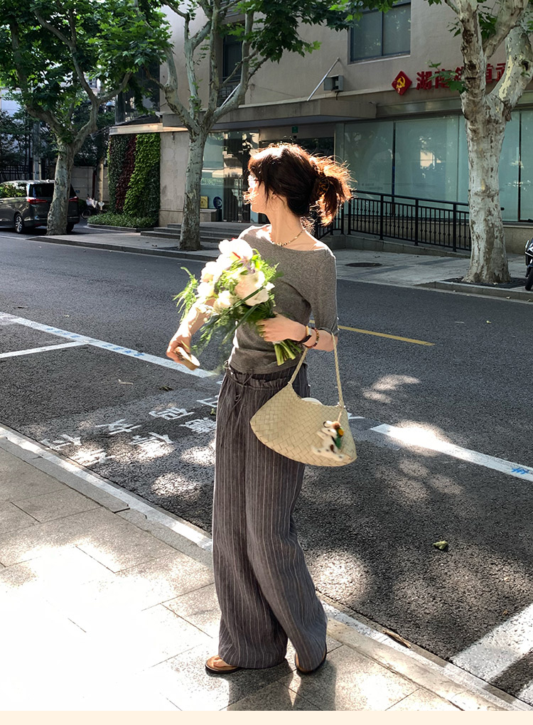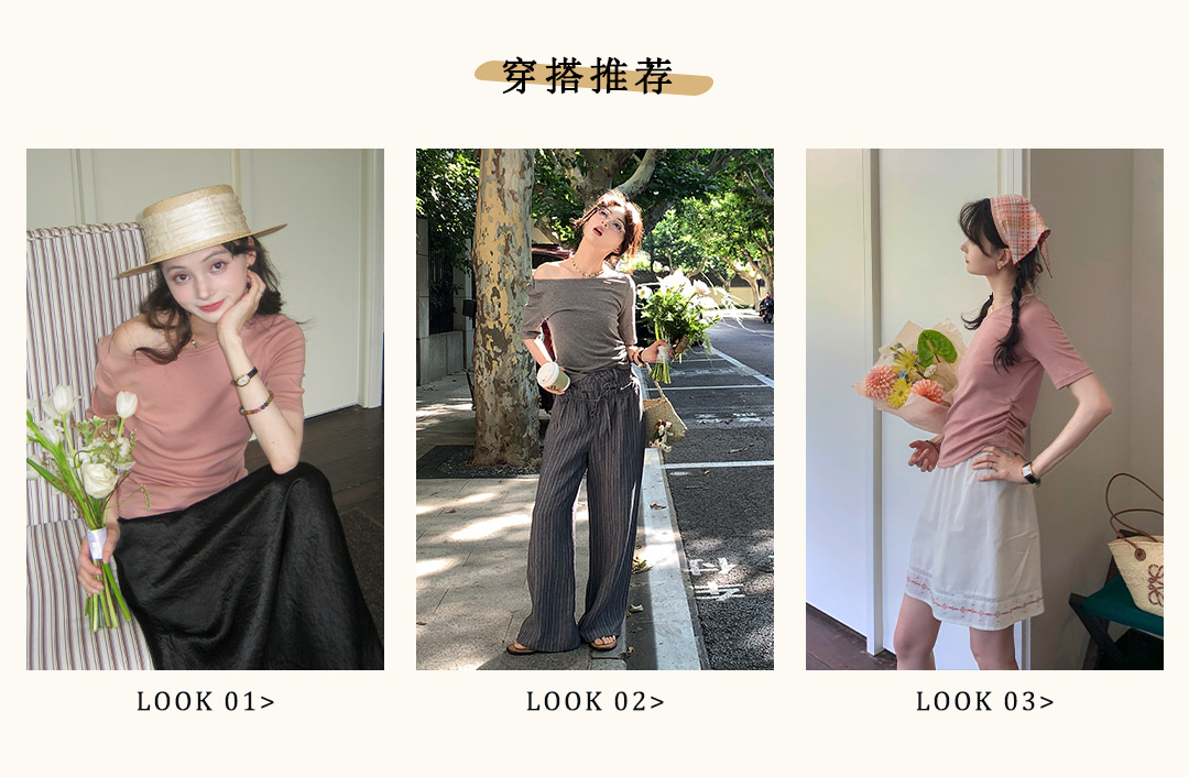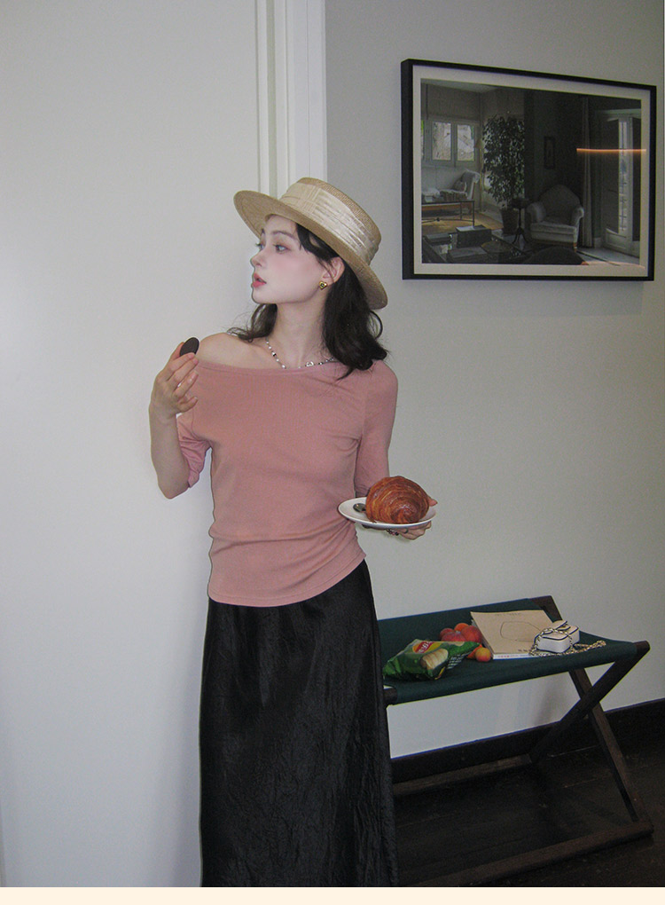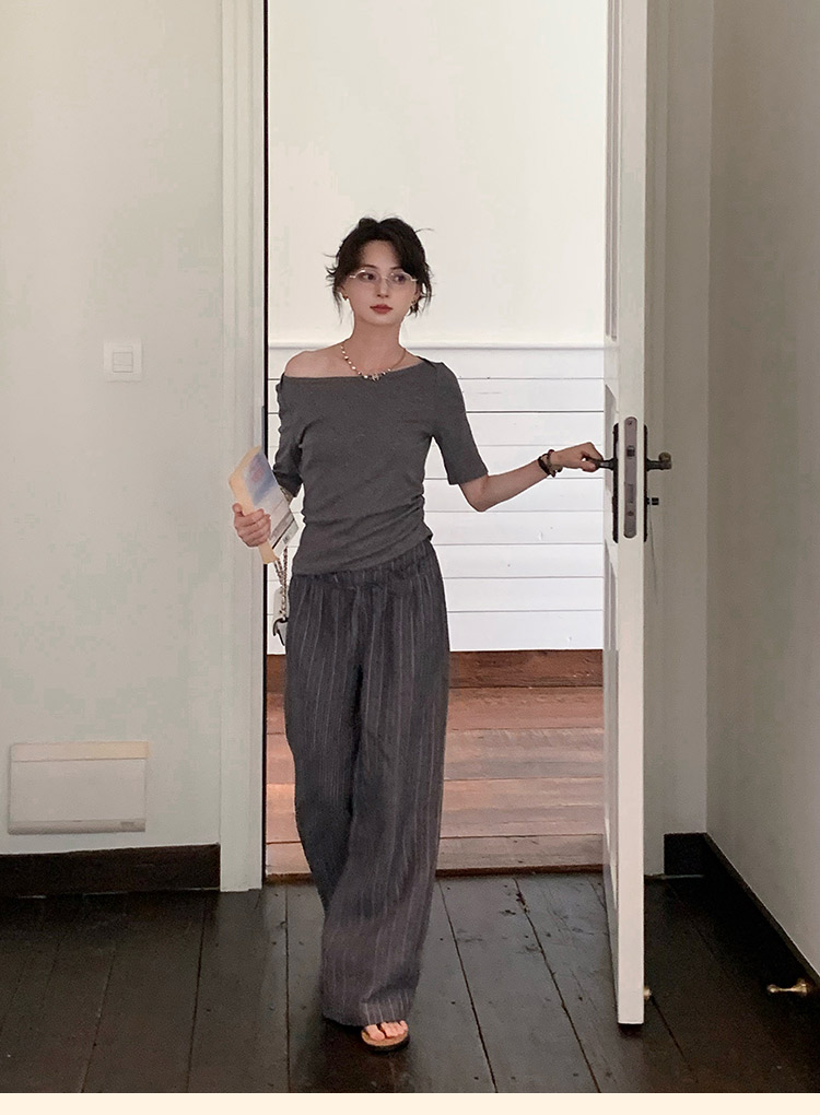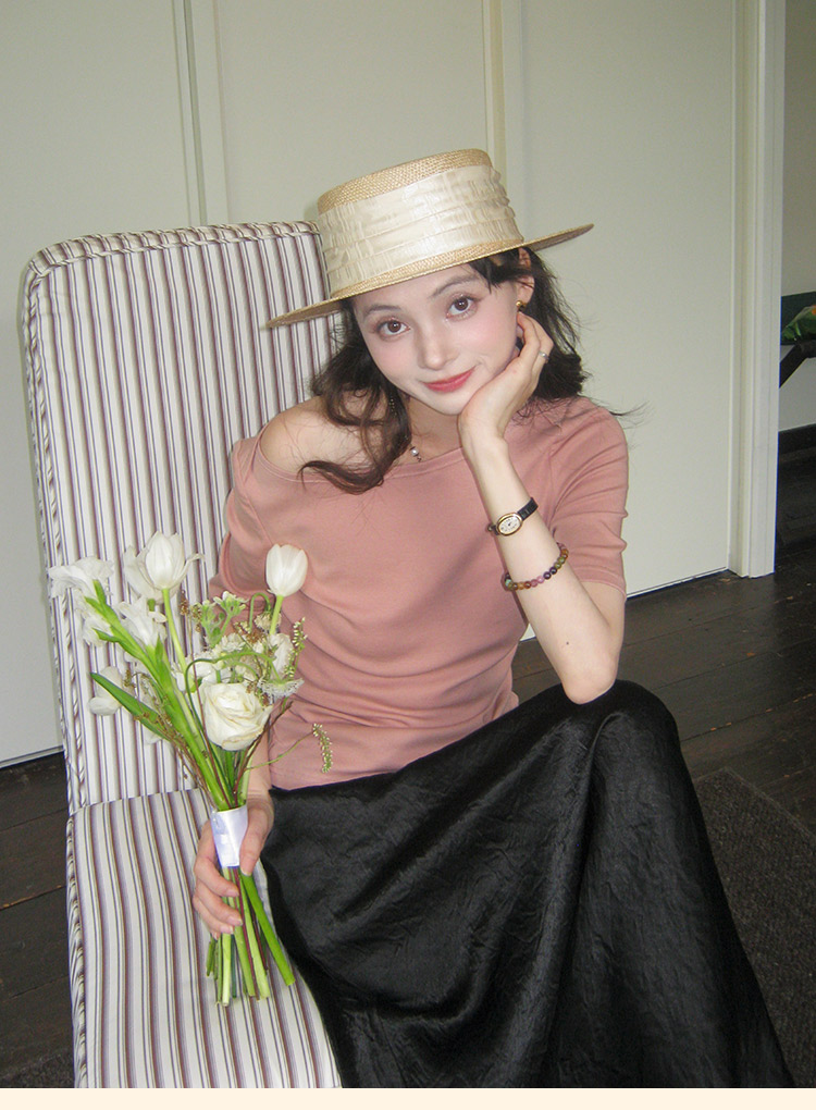浮生八记/25B100/修身显瘦一字领短袖T恤