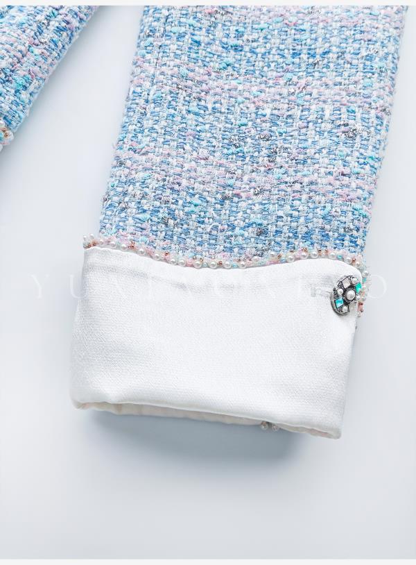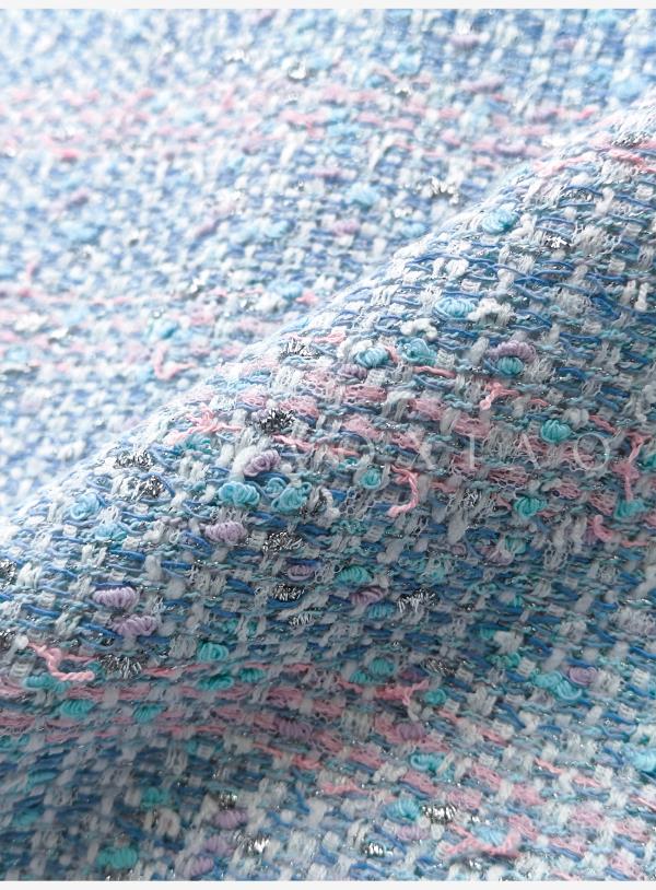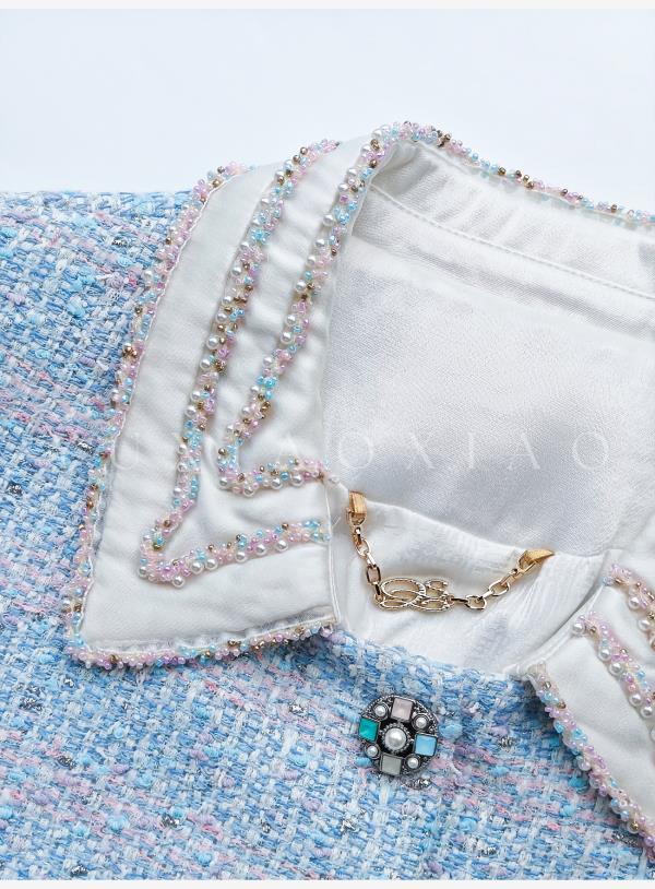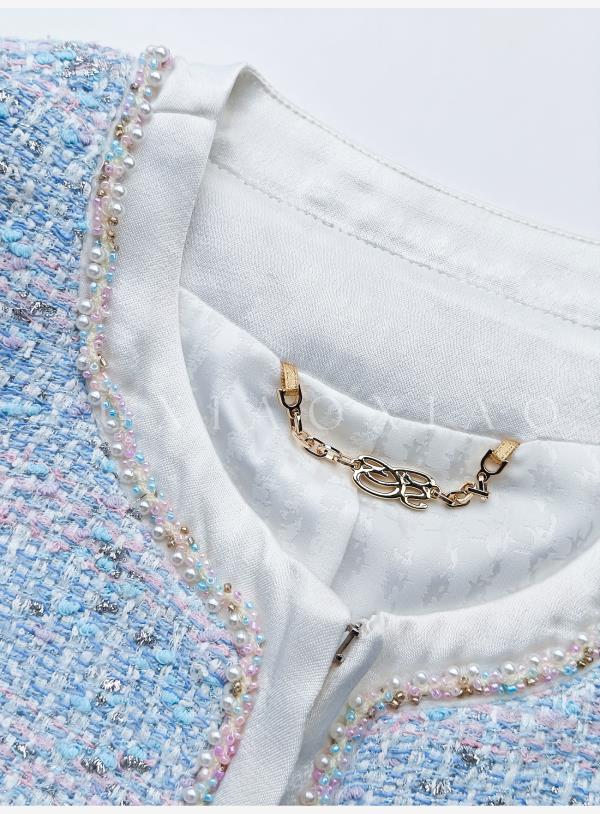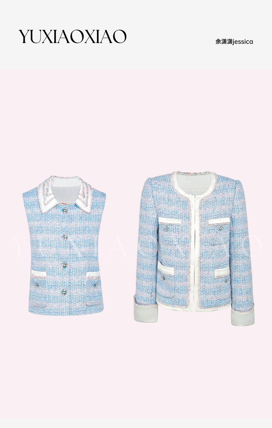 余潇潇【蓝调時光】高级感银丝编织粗花呢拼接缎面小香风外套&马甲