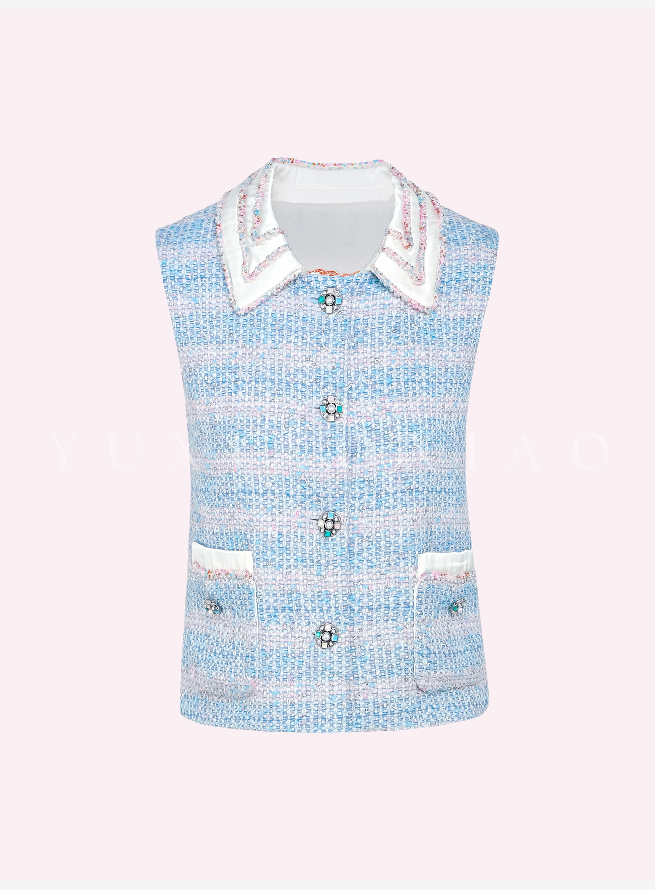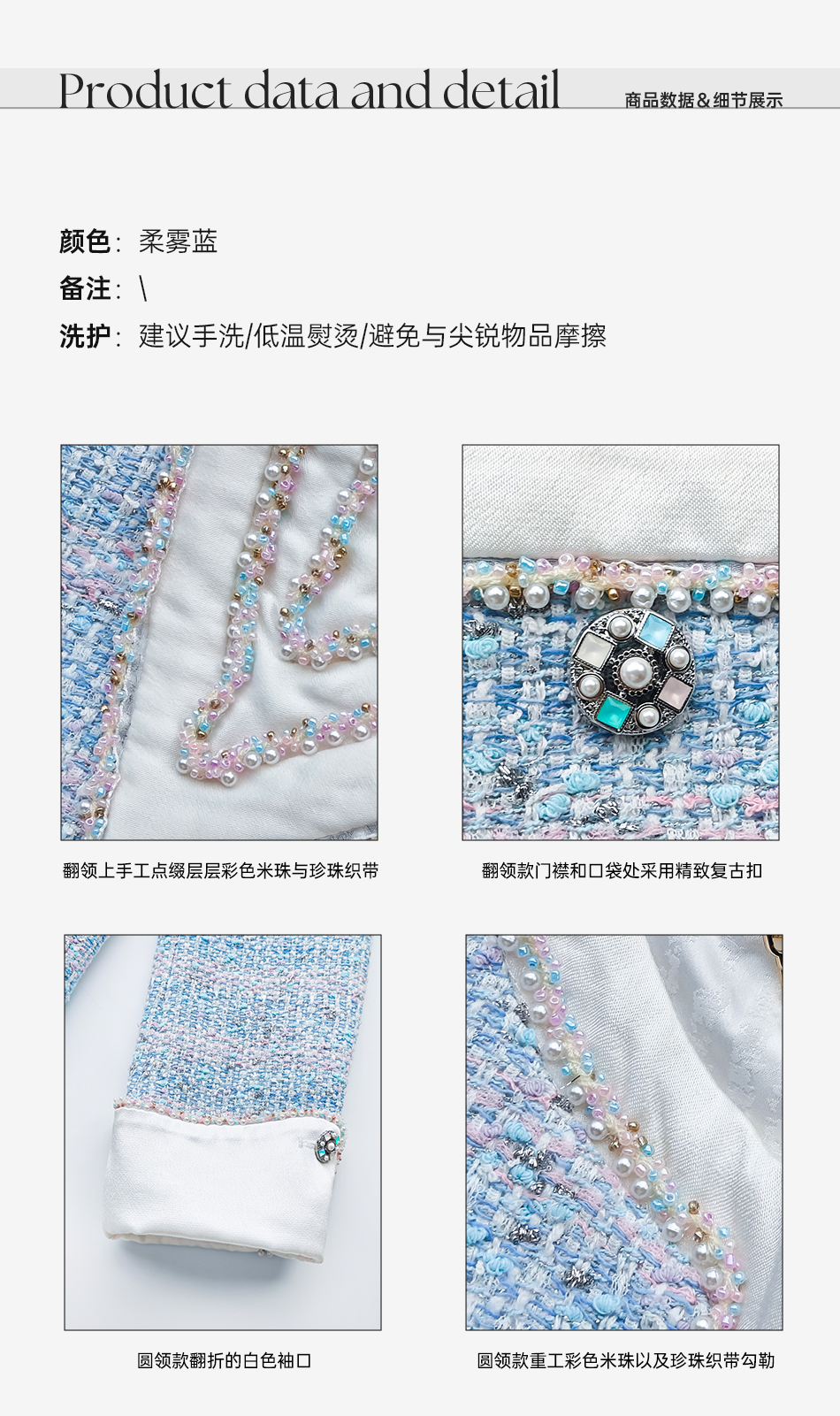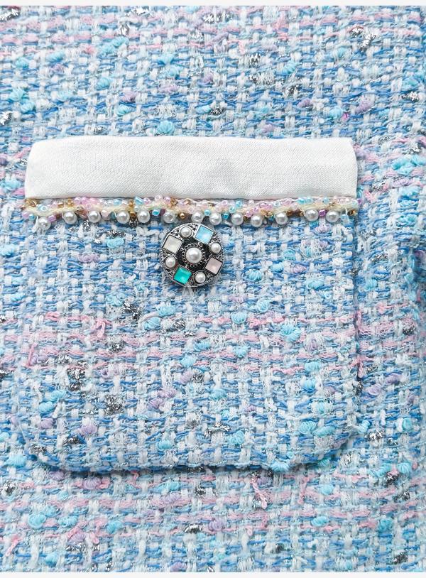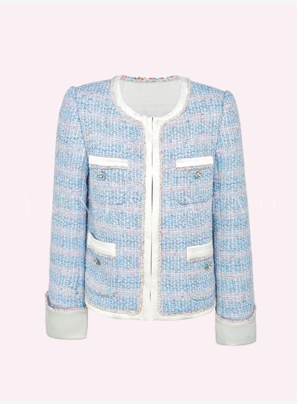 余潇潇【蓝调時光】高级感银丝编织粗花呢拼接缎面小香风外套&马甲