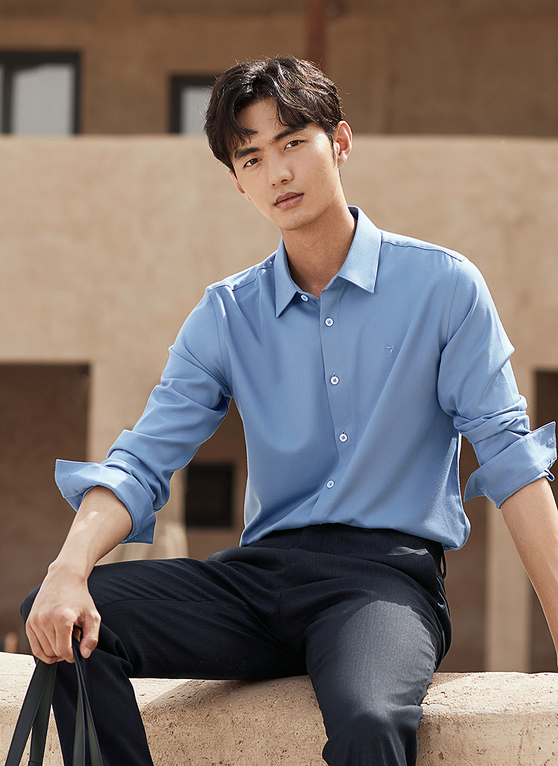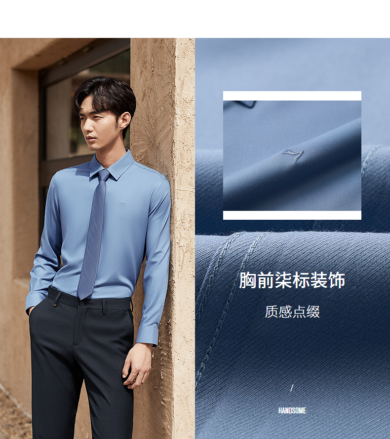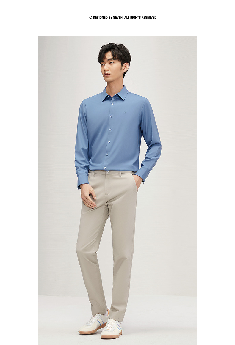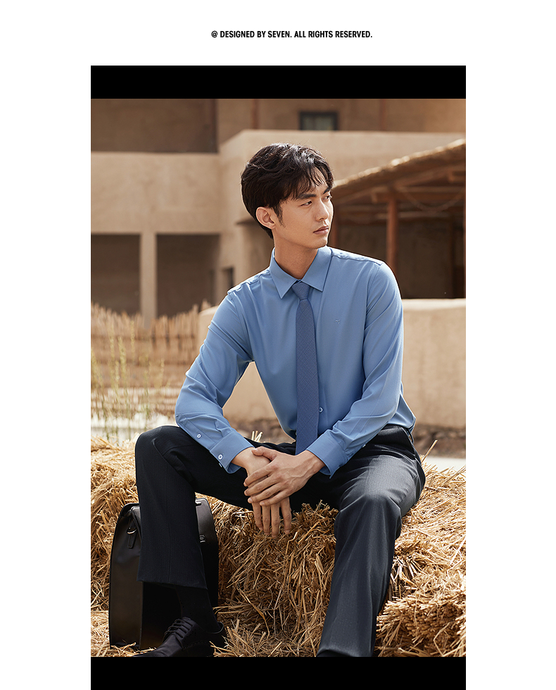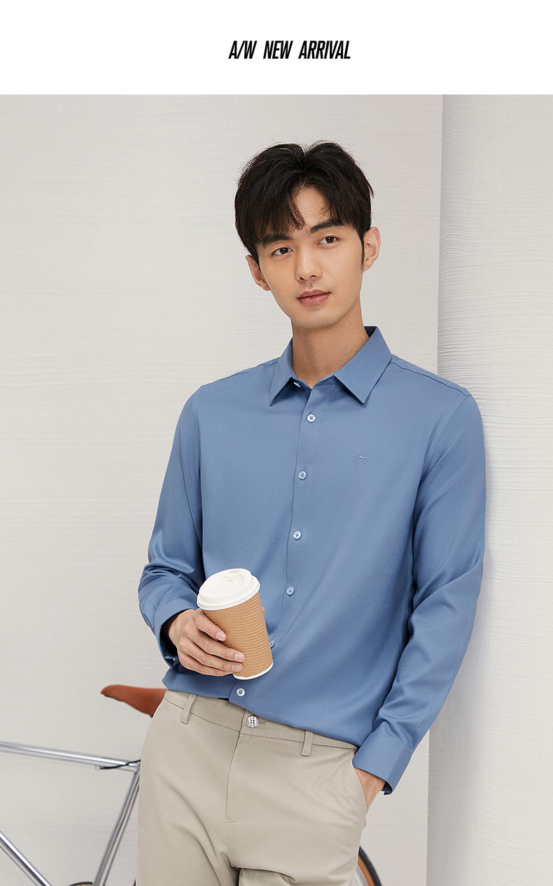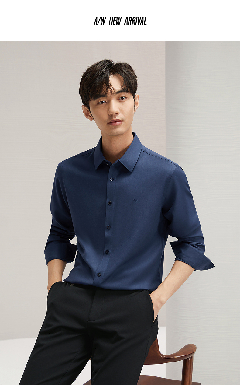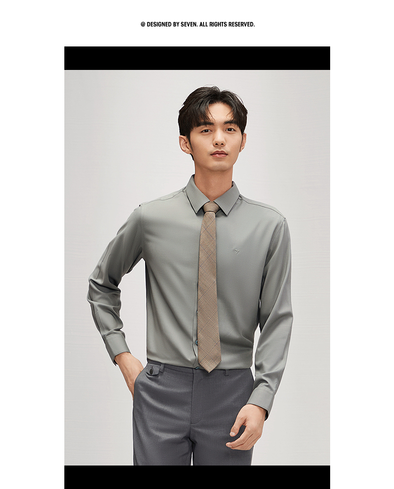 【远红外蓄热】柒牌长袖衬衫男秋冬2024新款正装面试商务翻领衬衣 127A70260