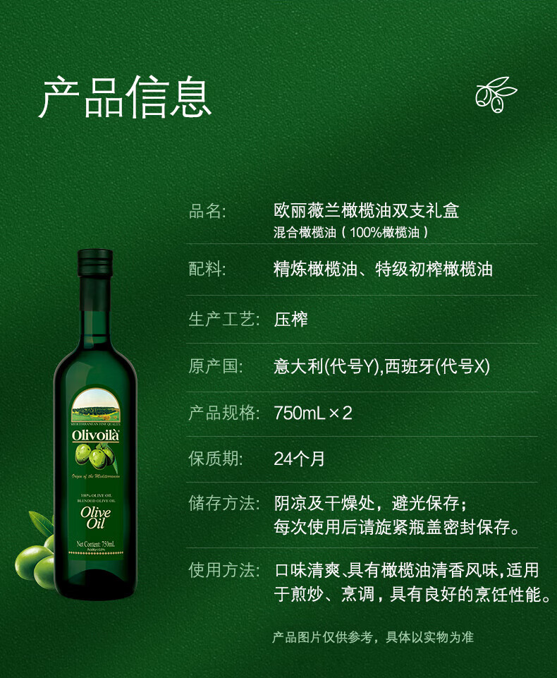 【发出后不支持拦截退货】欧丽薇兰 橄榄油礼盒 750ml*2