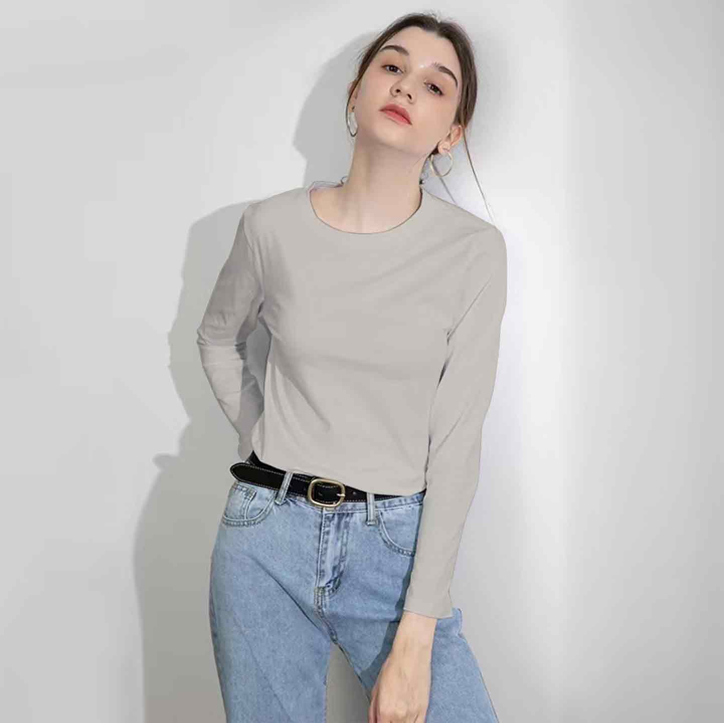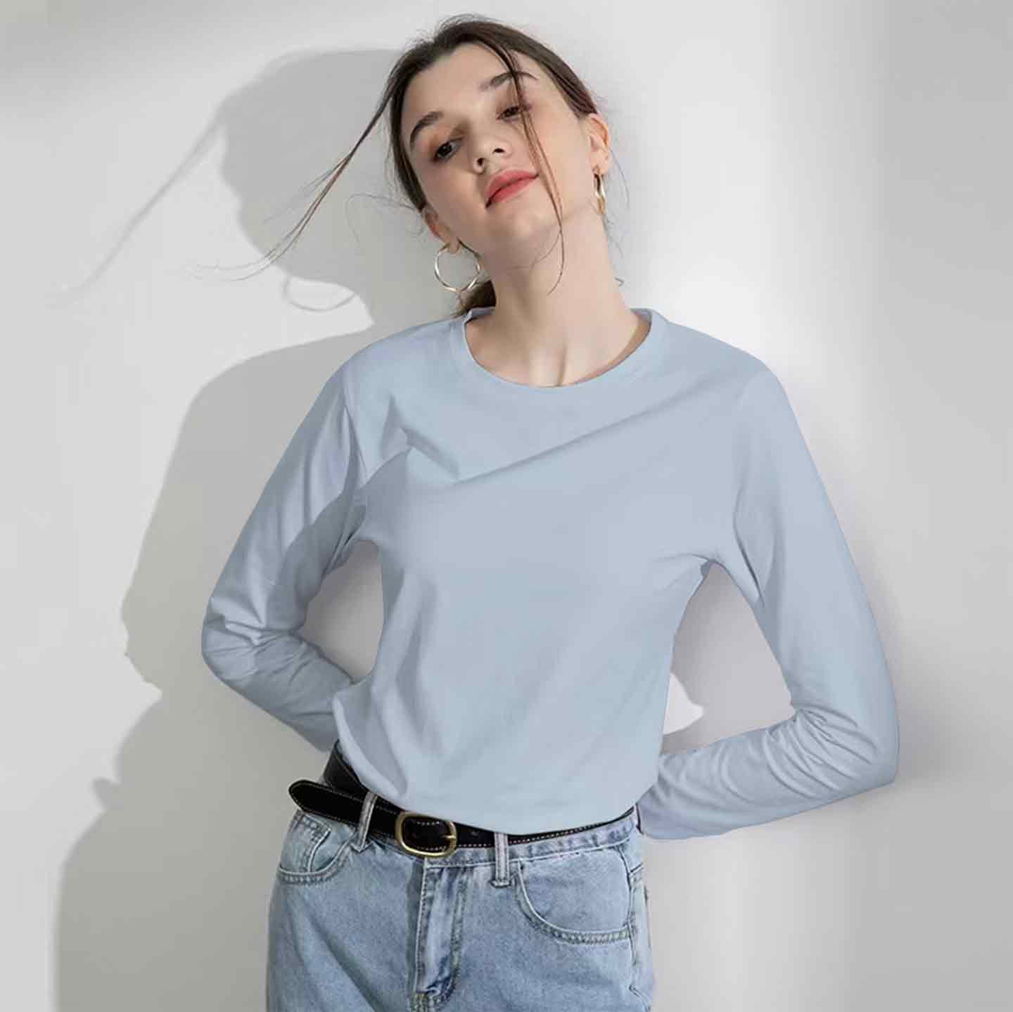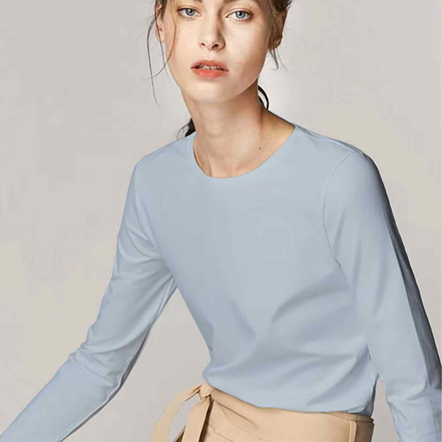 【99元3件】YANECINE精梳匹马棉情侣长袖T恤 亲肤透气不易变形 时尚百搭基础 男女同款纯色长袖打底衫 雾霾蓝XL无货