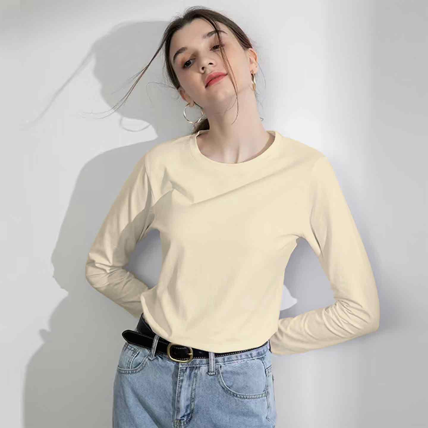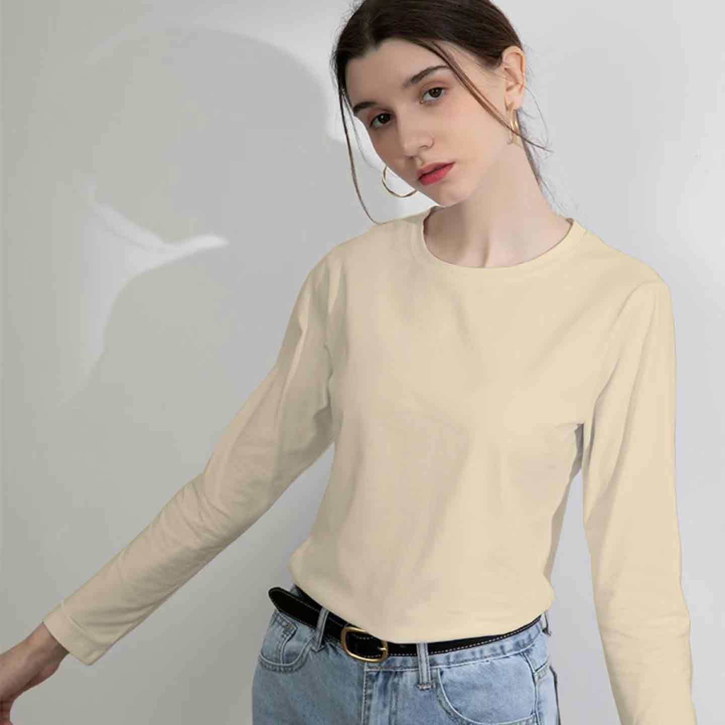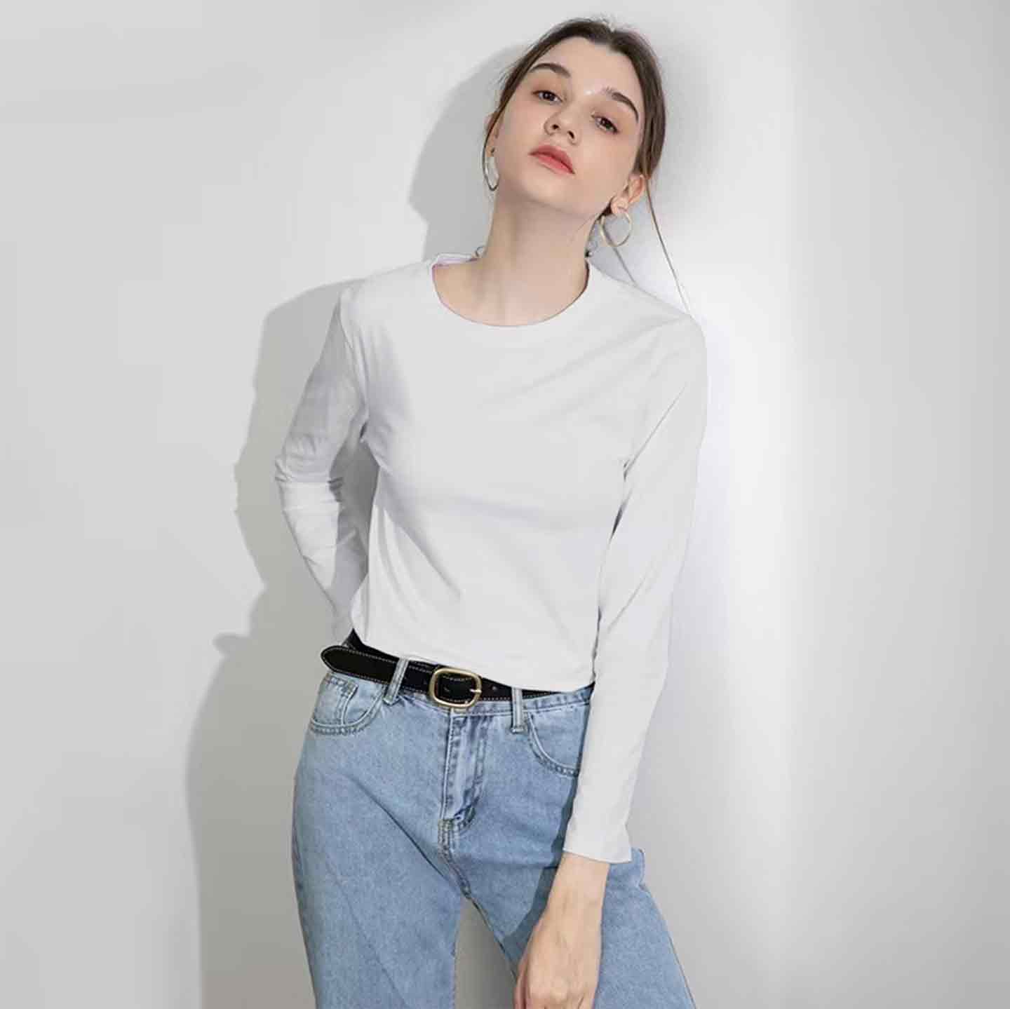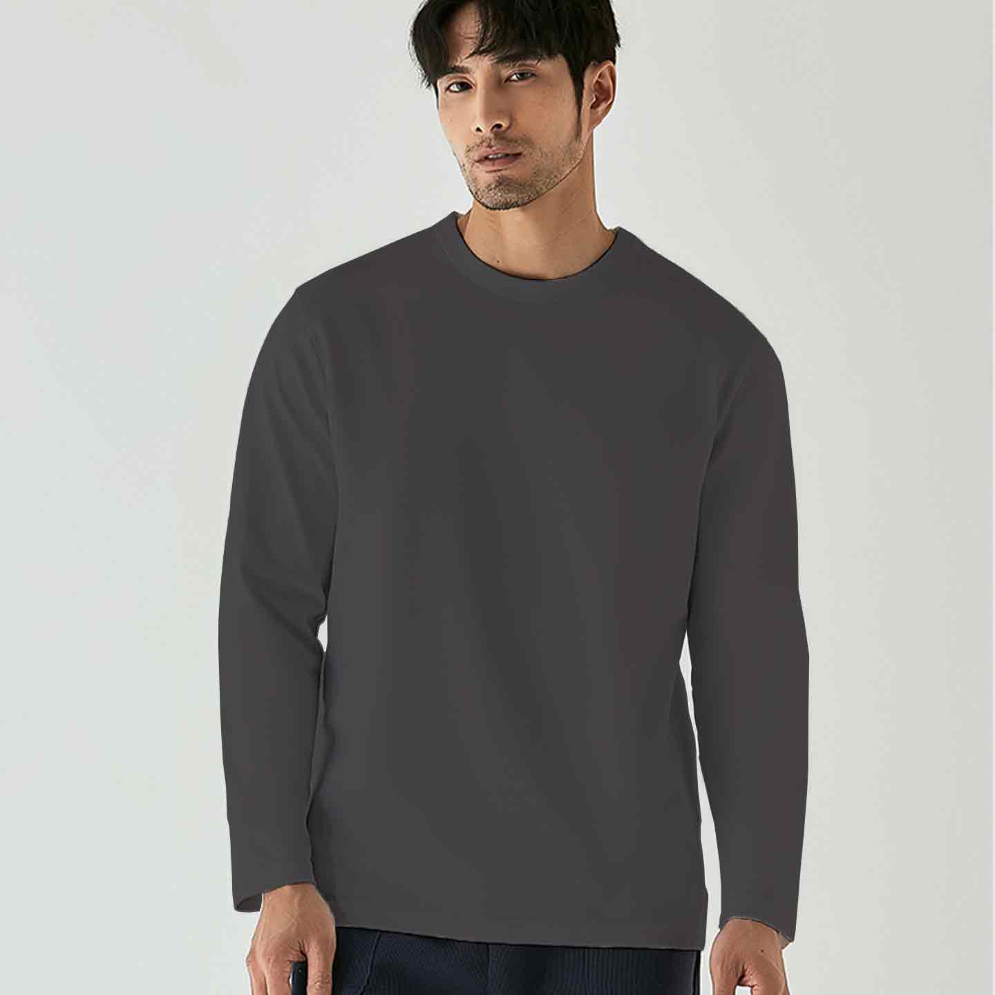【99元3件】YANECINE精梳匹马棉情侣长袖T恤 亲肤透气不易变形 时尚百搭基础 男女同款纯色长袖打底衫 雾霾蓝XL无货