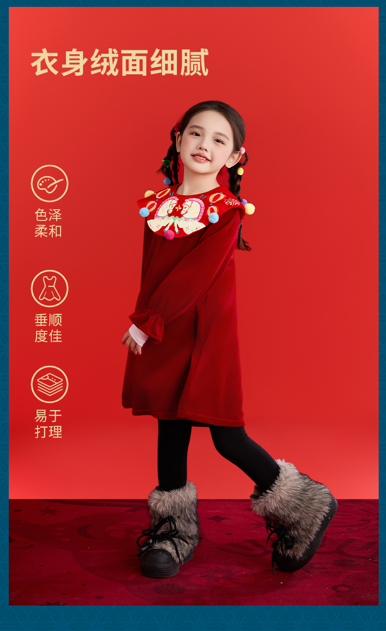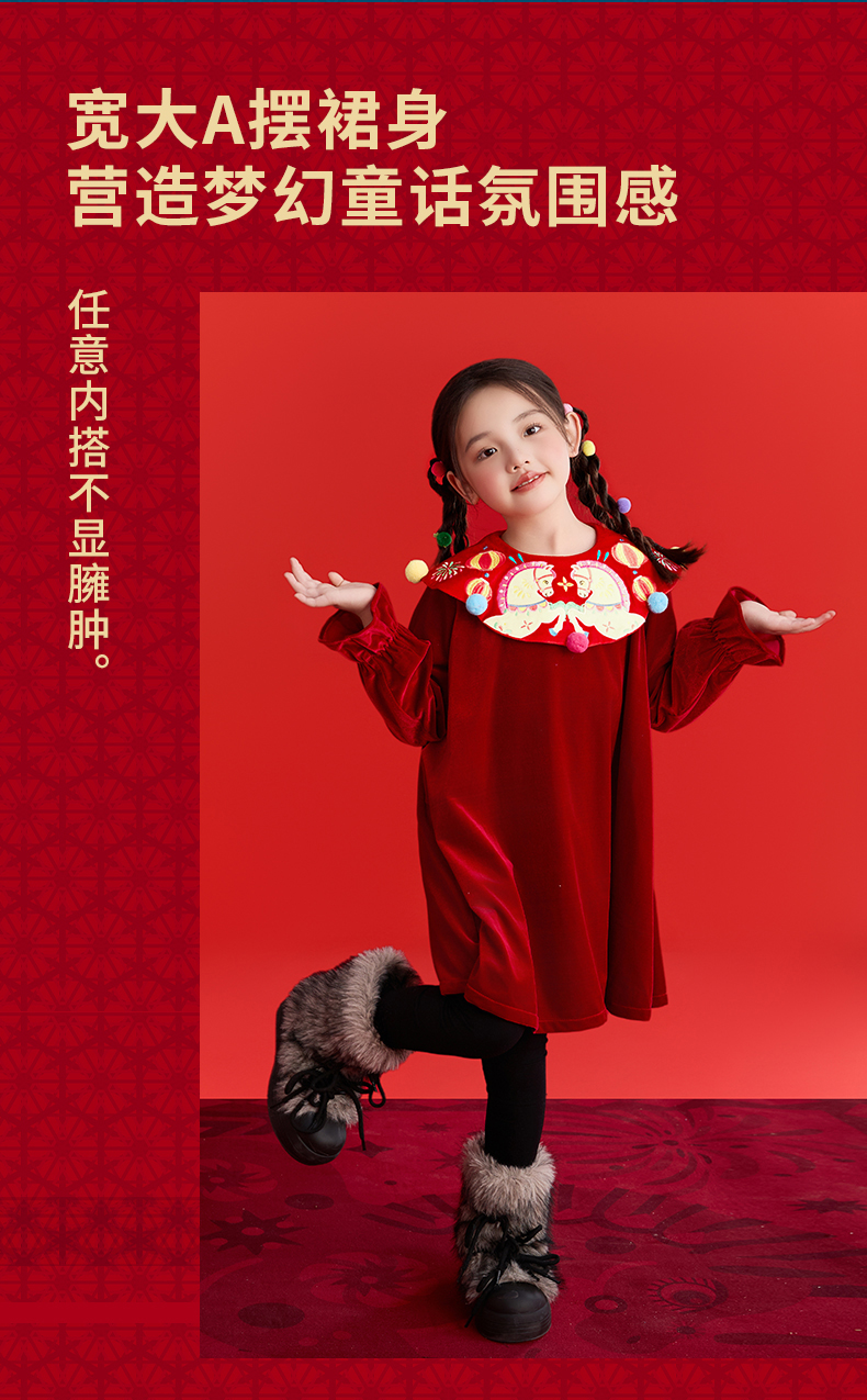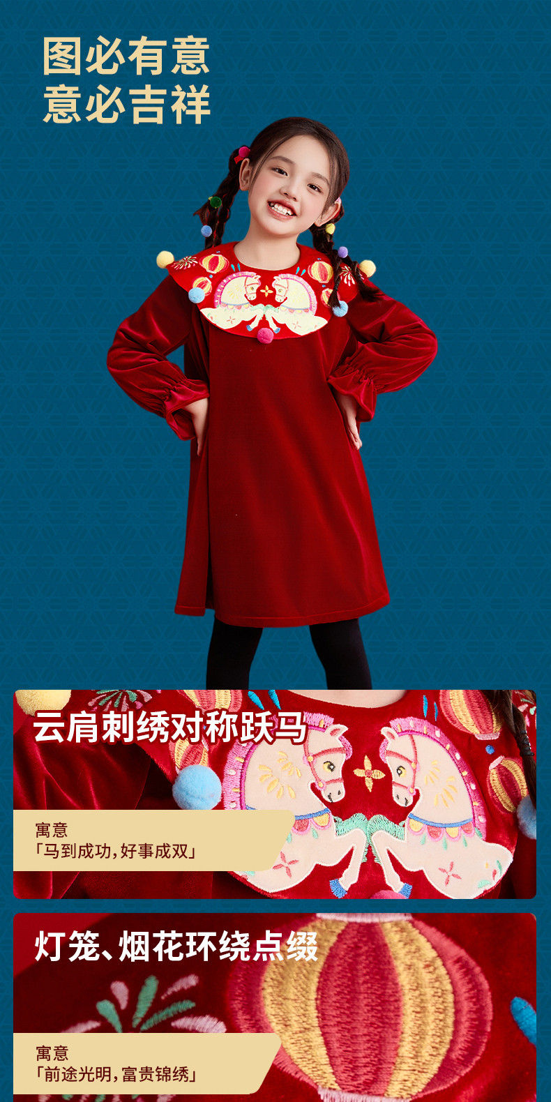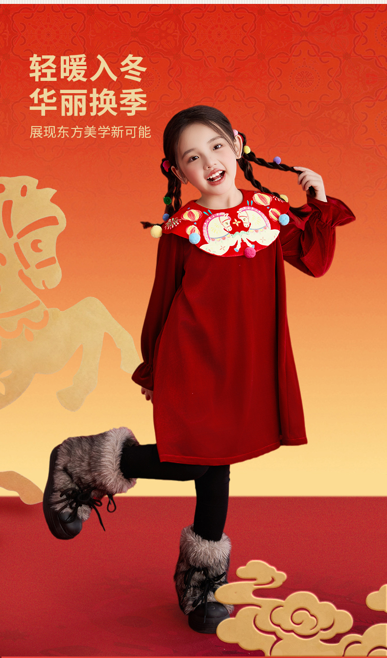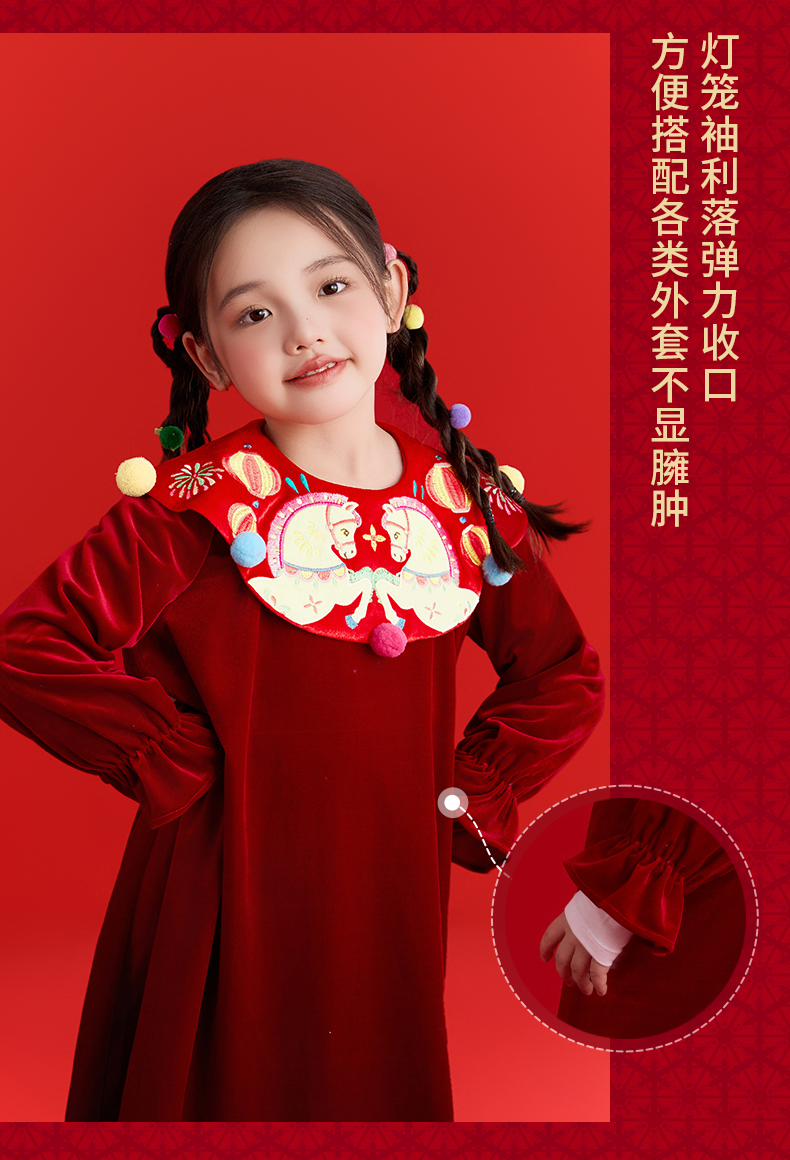 年衣童装儿童连衣裙冬季新款女童中式甜美女孩长袖裙子短裙拜年服