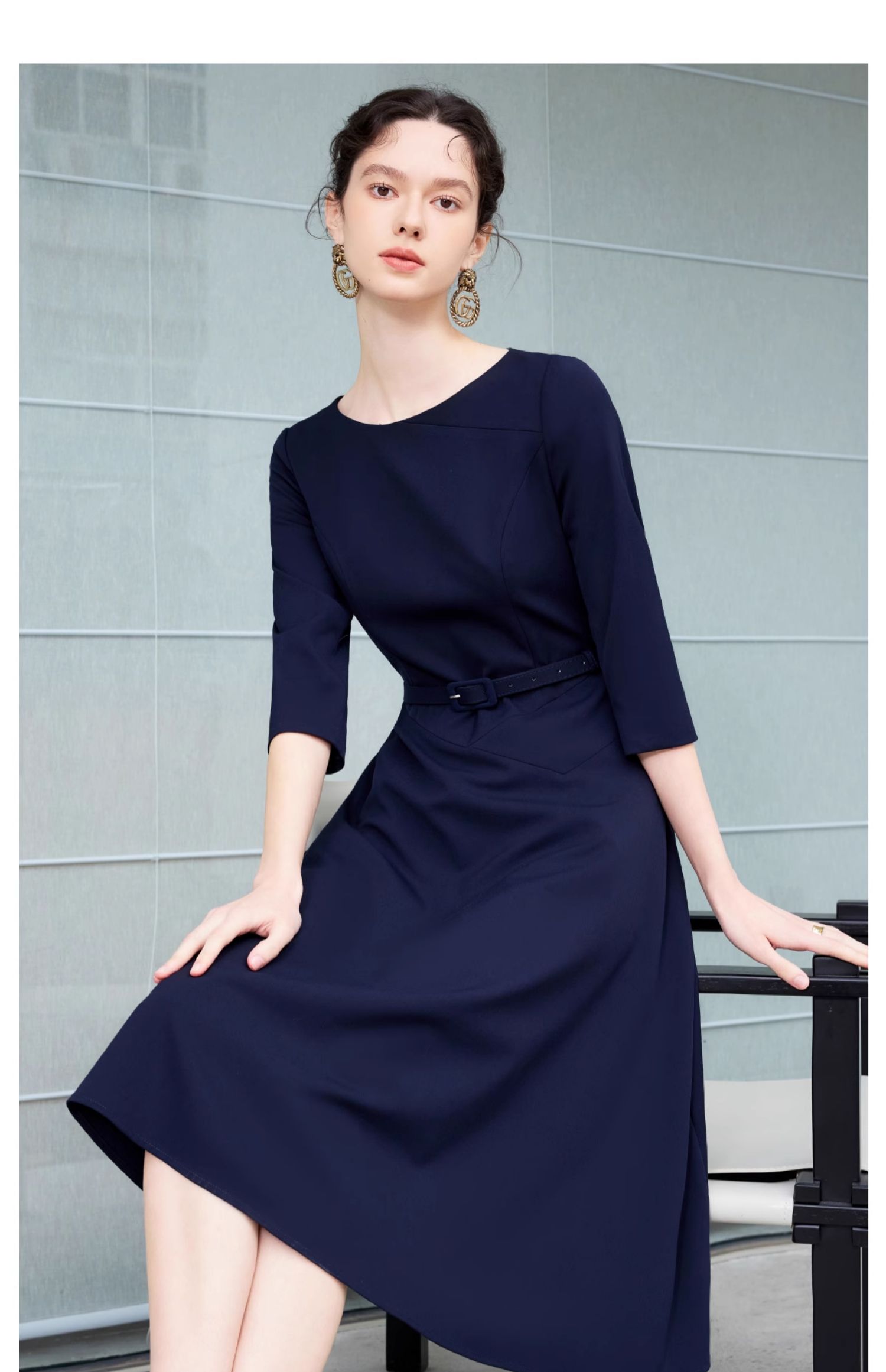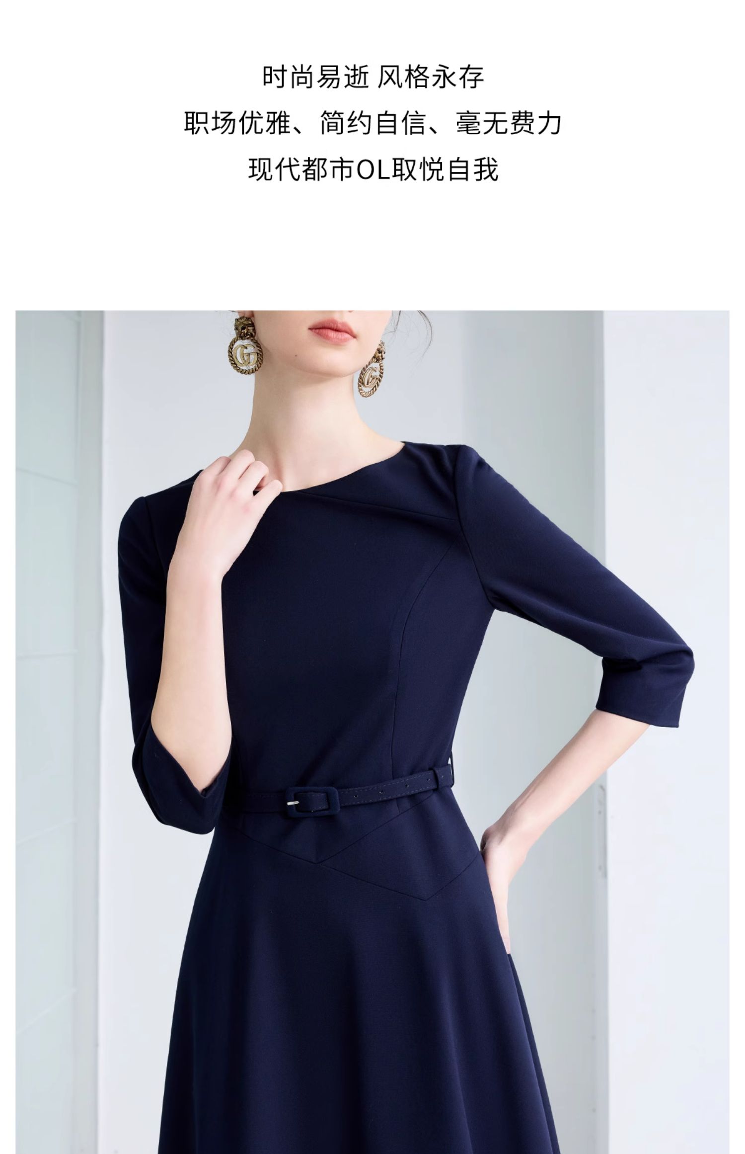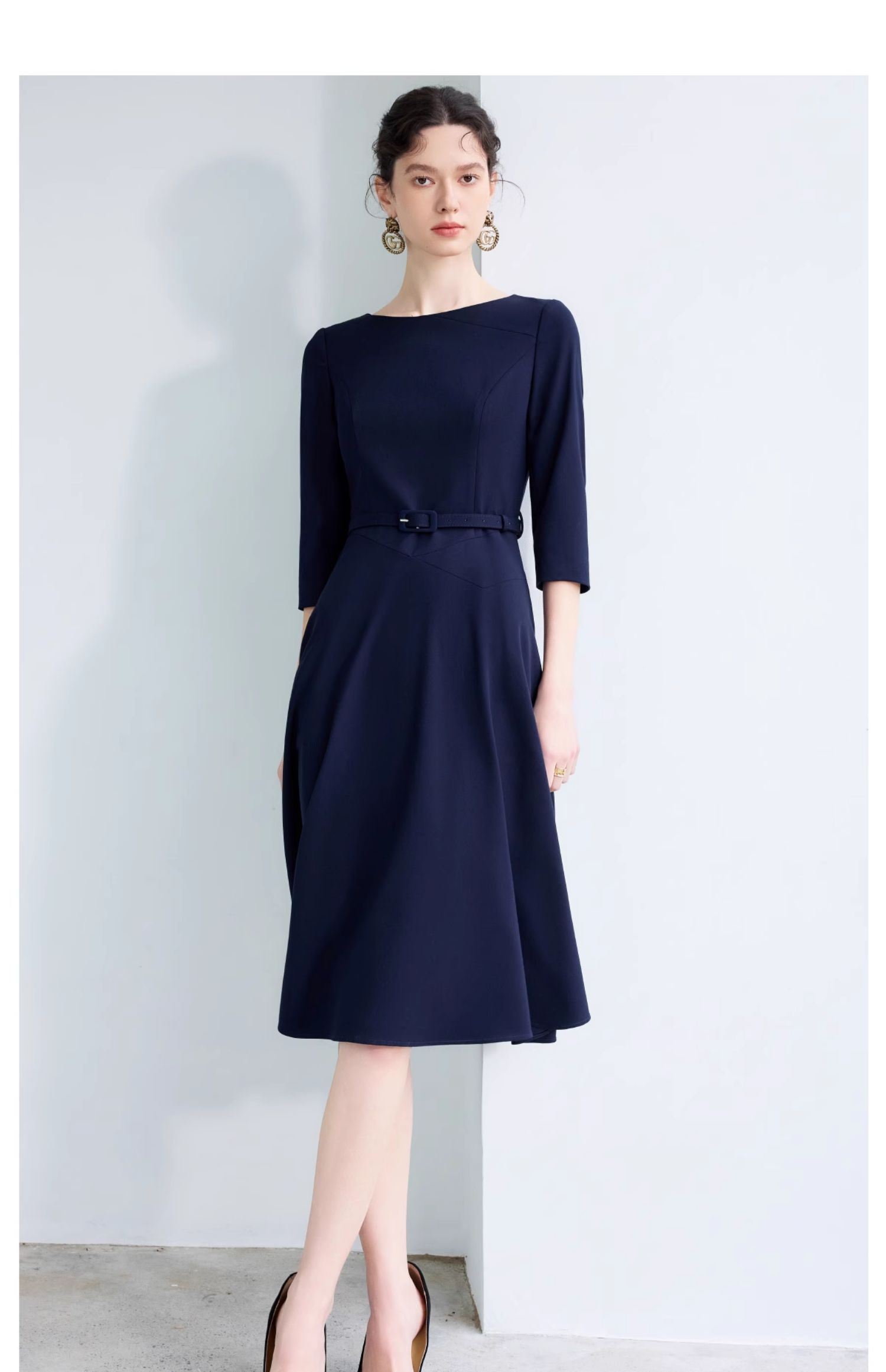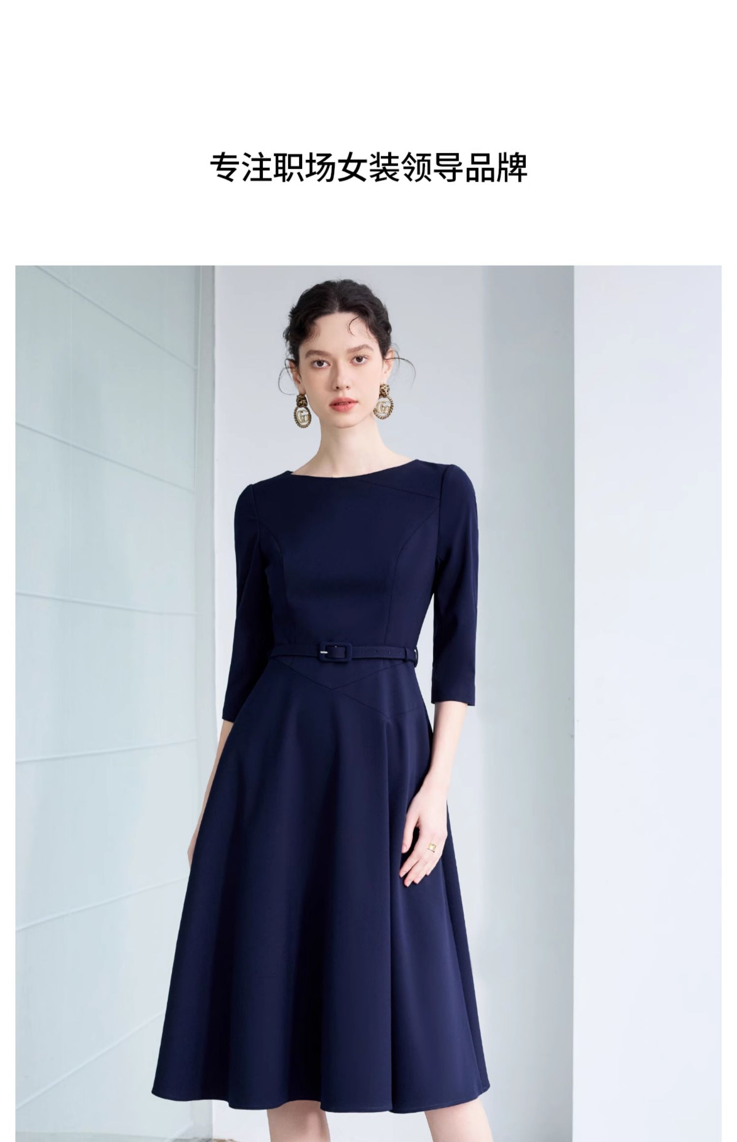 IWY/大方得体连衣裙新款今年流行爆款藏青色法式圆领中长款伞裙Q1265