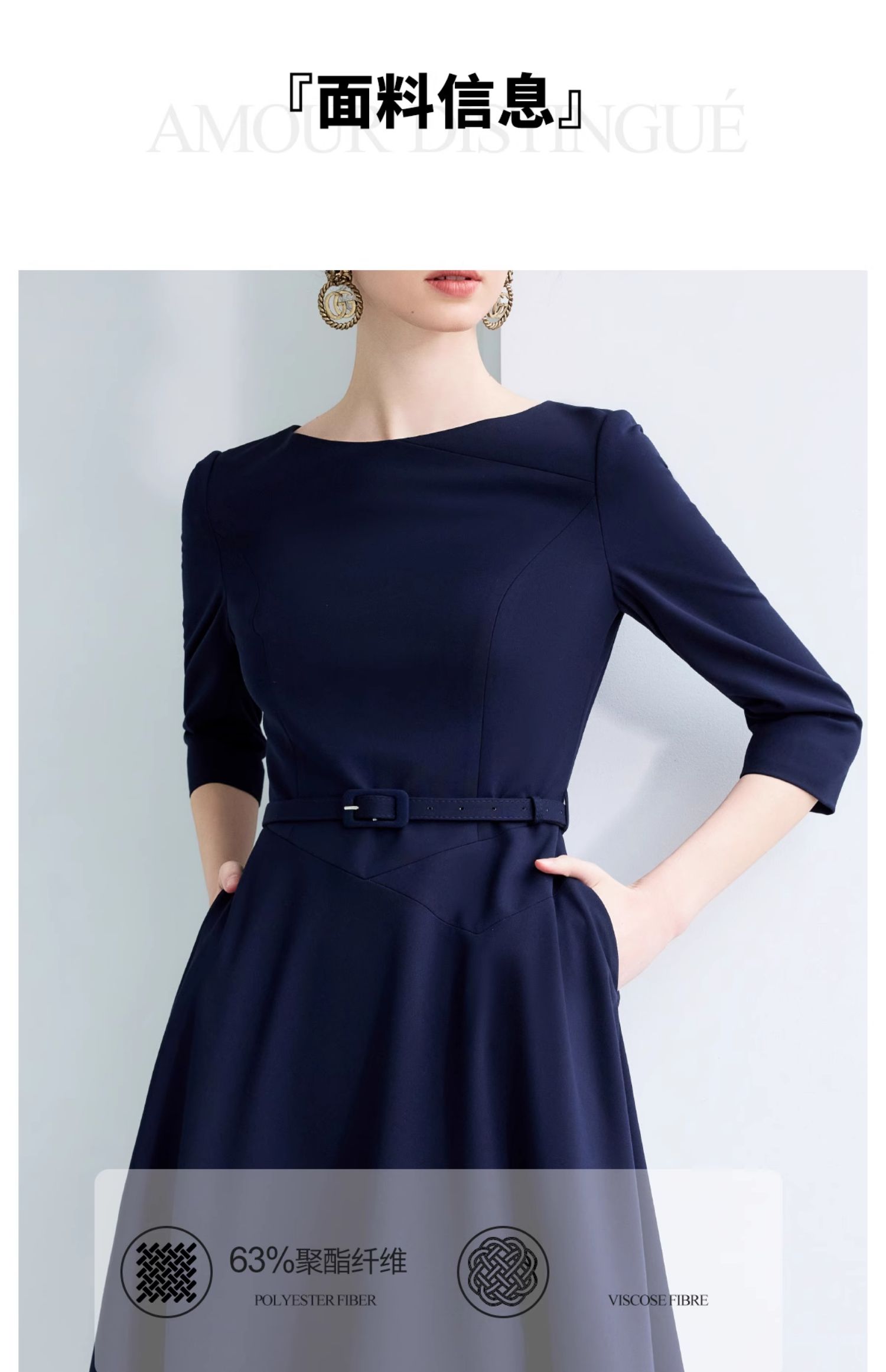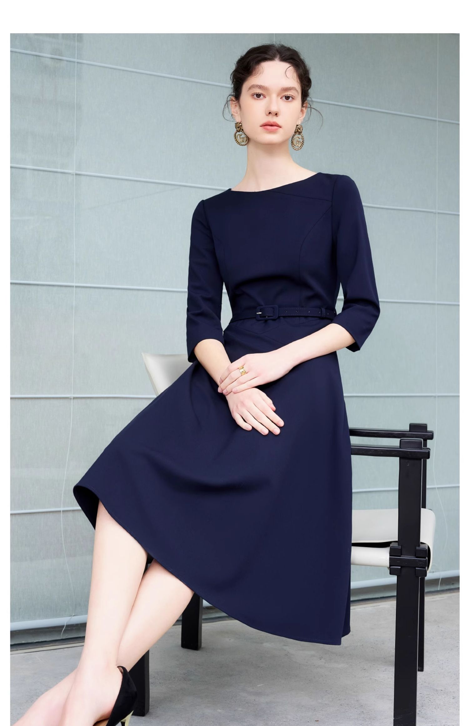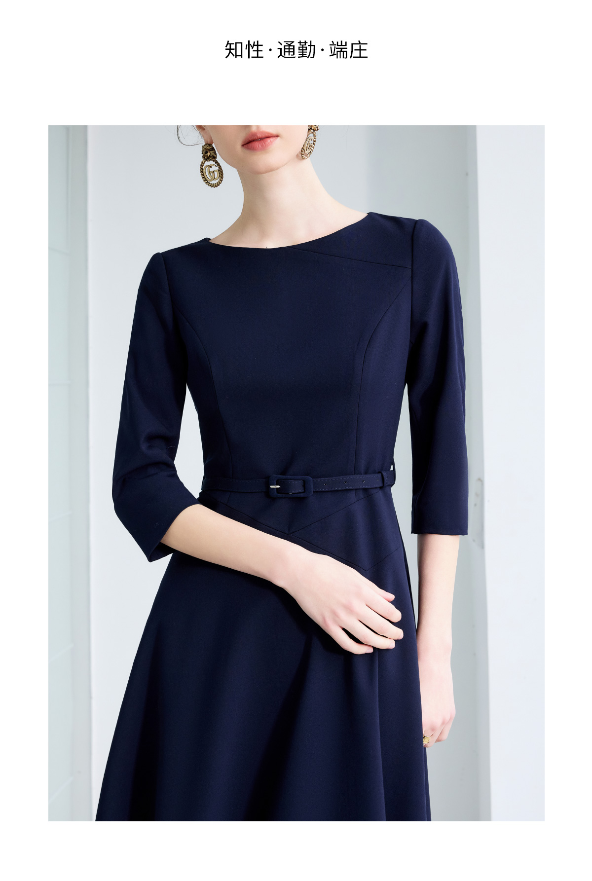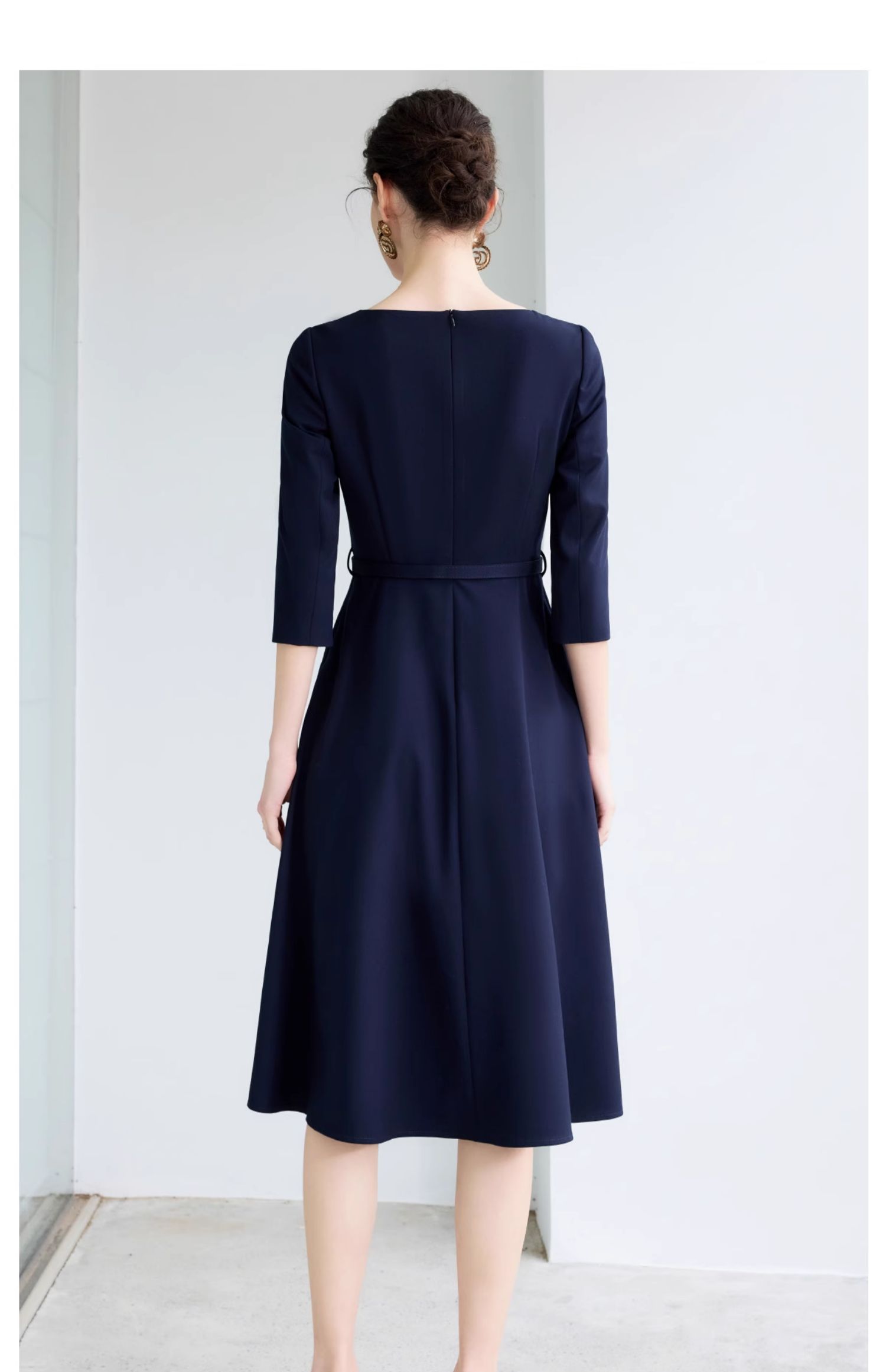 IWY/大方得体连衣裙新款今年流行爆款藏青色法式圆领中长款伞裙Q1265