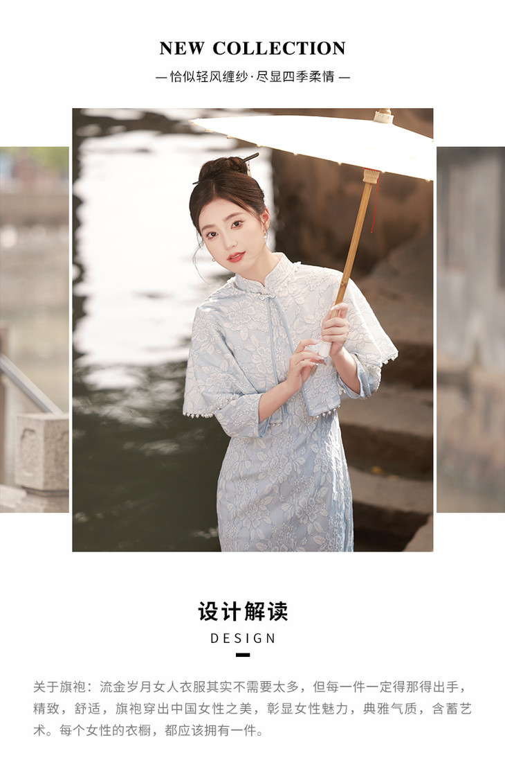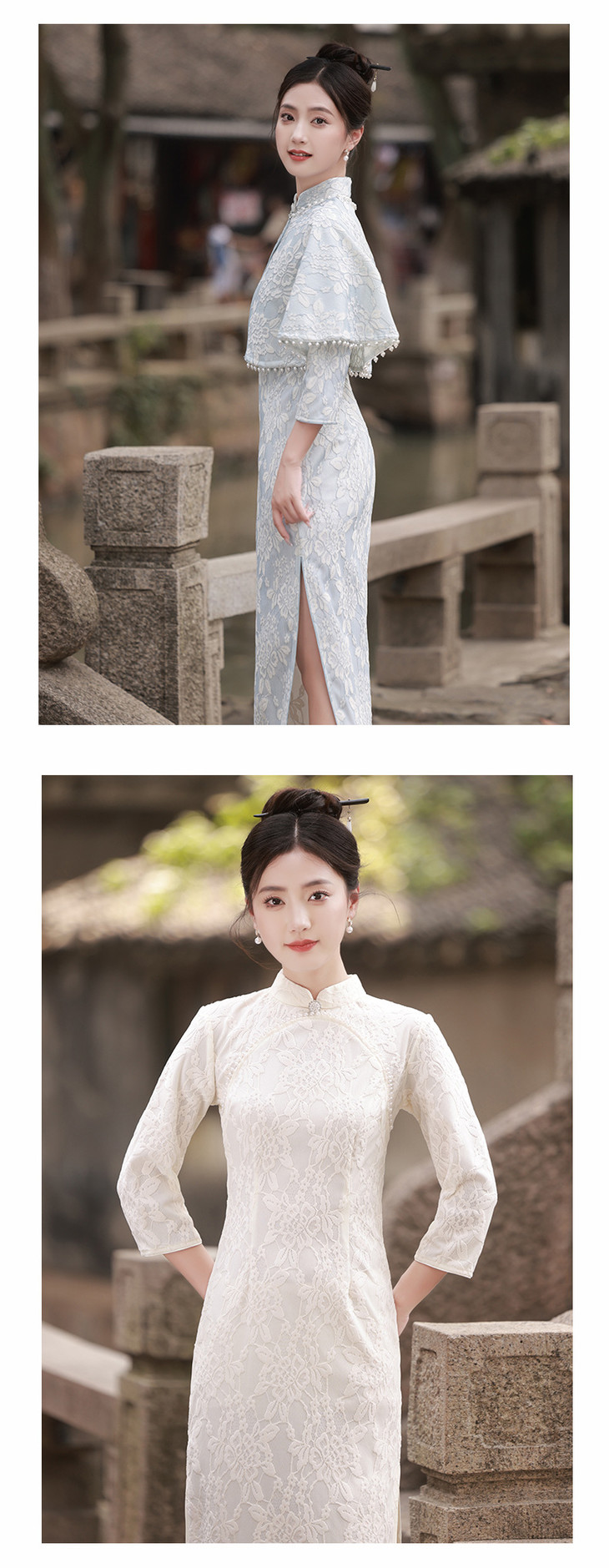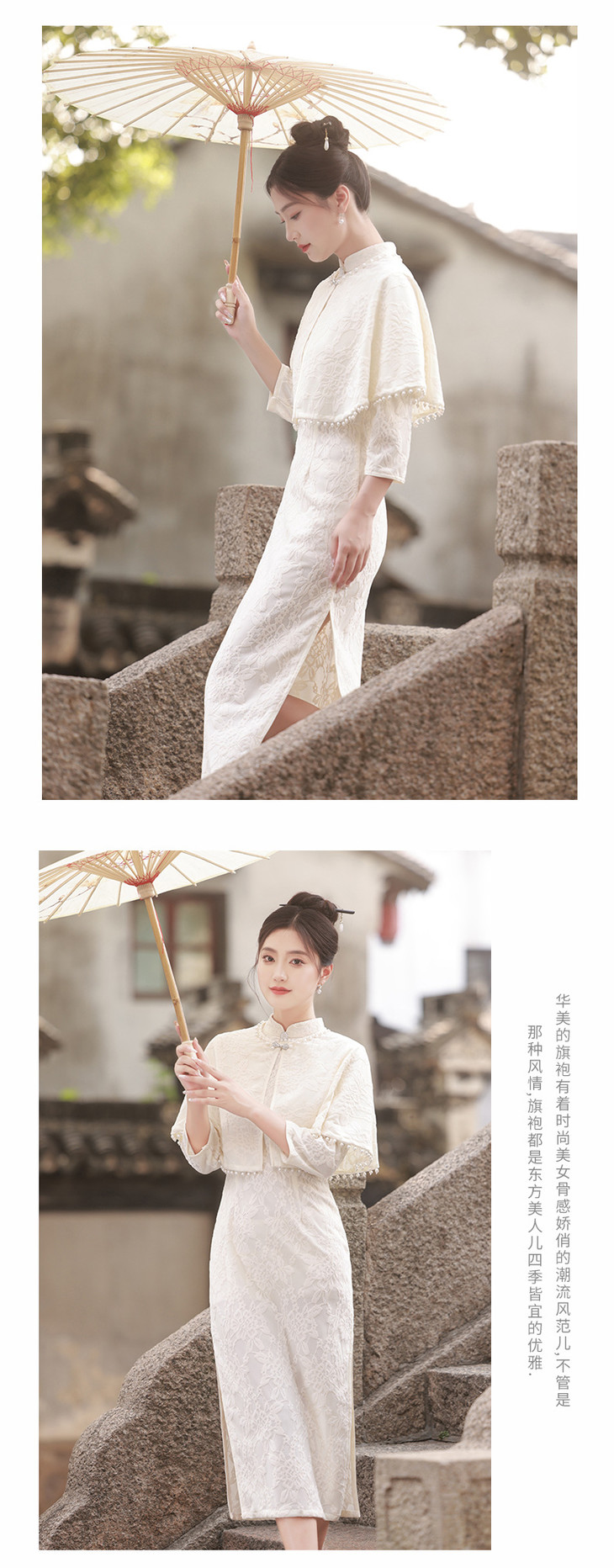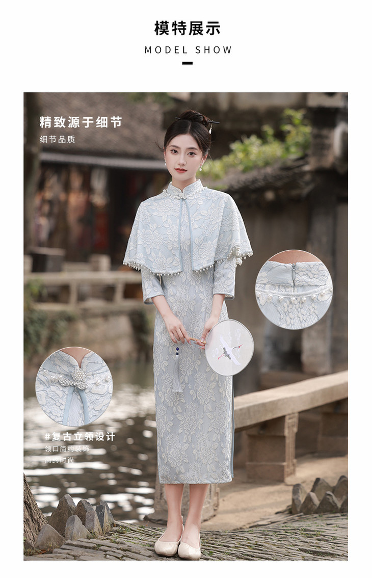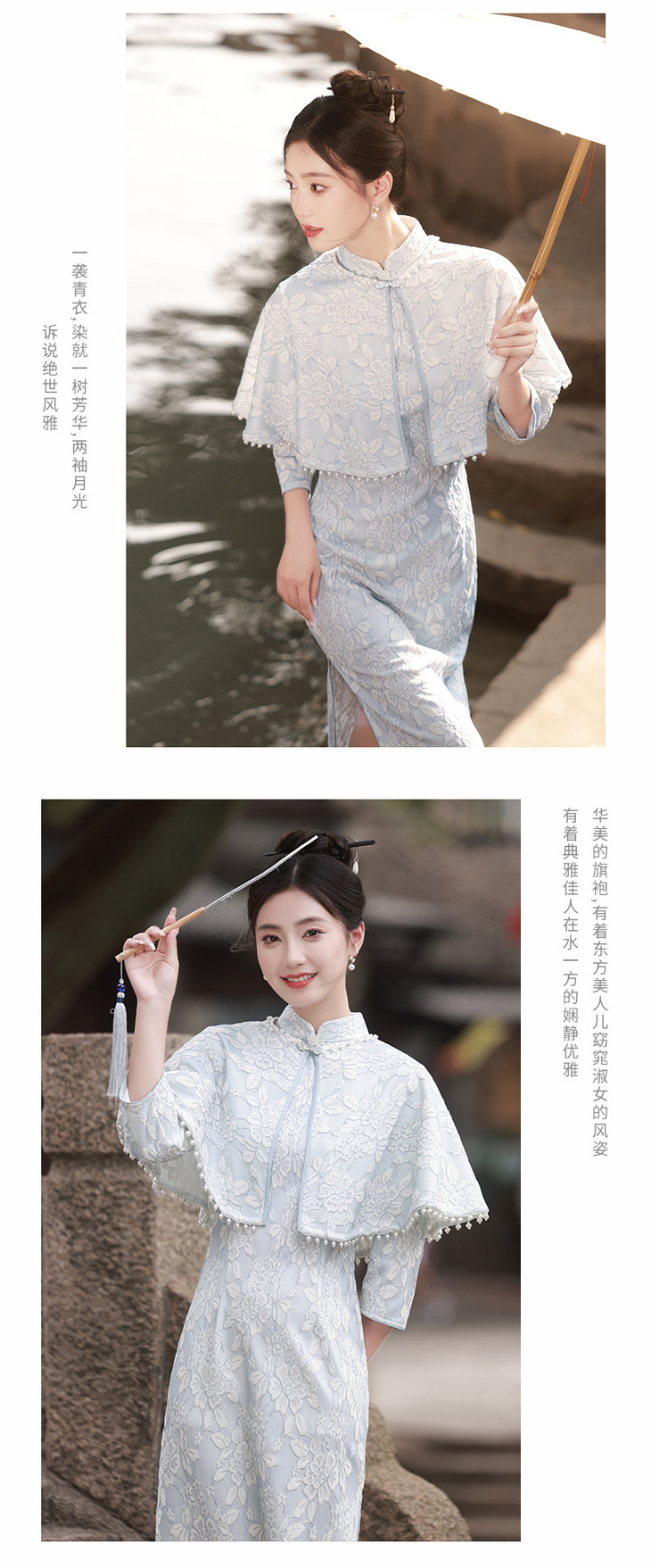 新款秋冬款蕾丝披肩小个子年轻款高端气质旗袍两件套带披肩YG-2294