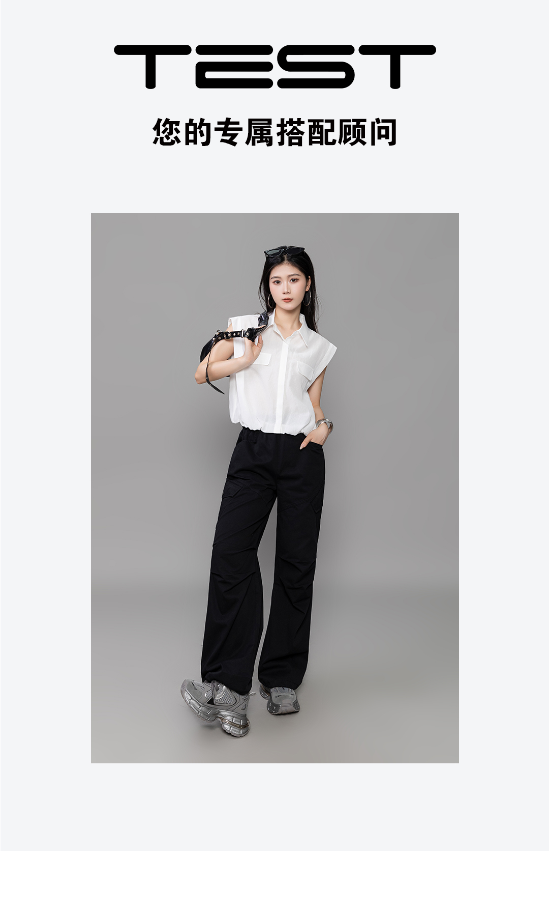 秋上新简约风黑色工装抽绳设计束脚显瘦休闲长裤3253010