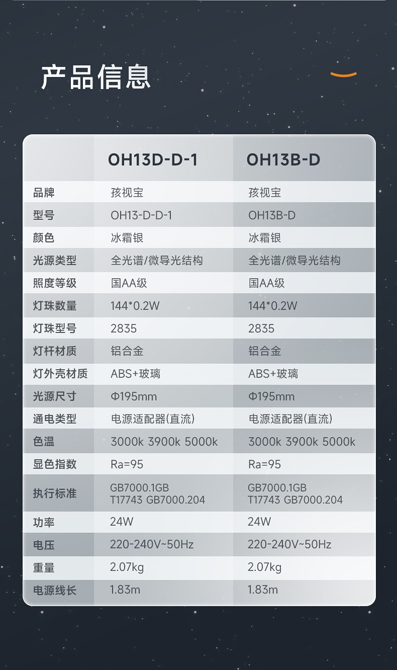 孩视宝护眼灯OH13D-D-1面环双光源防蓝光学习灯