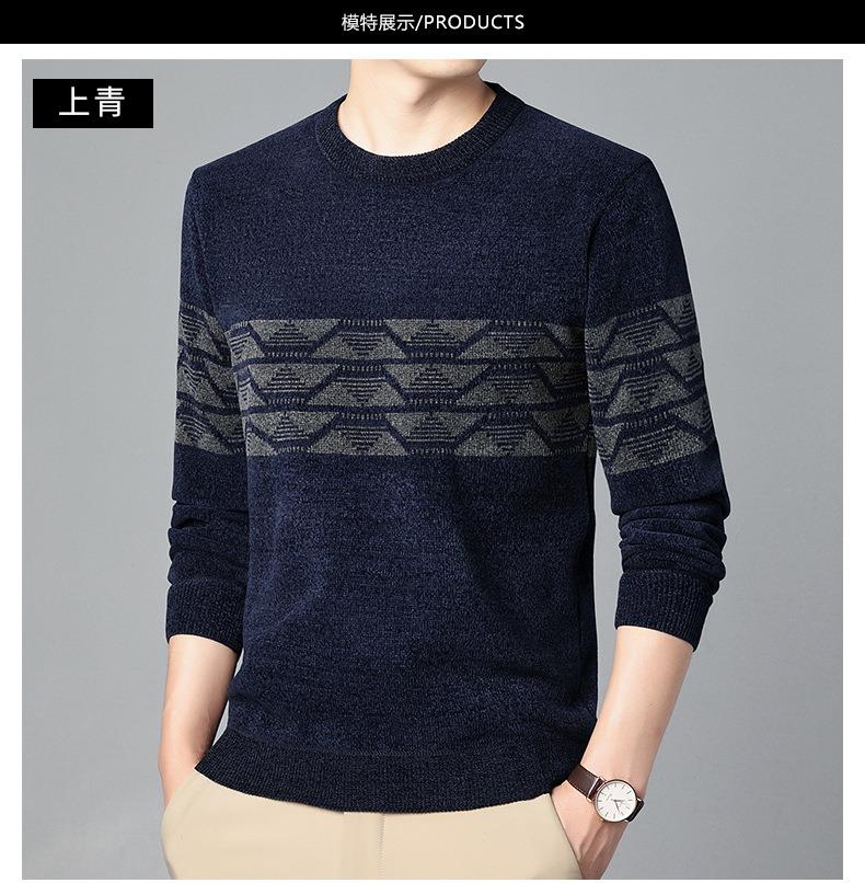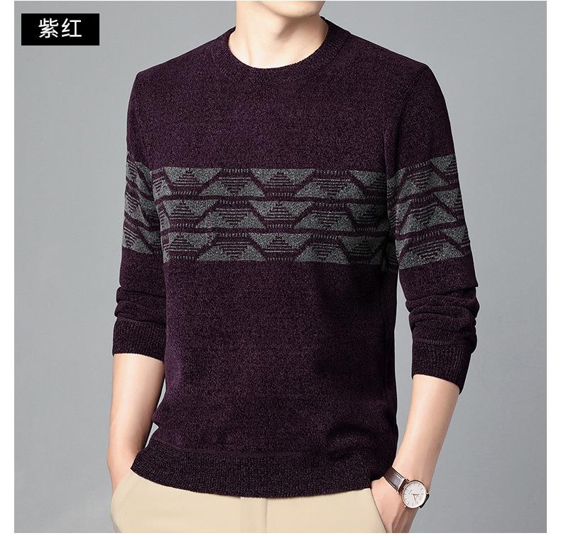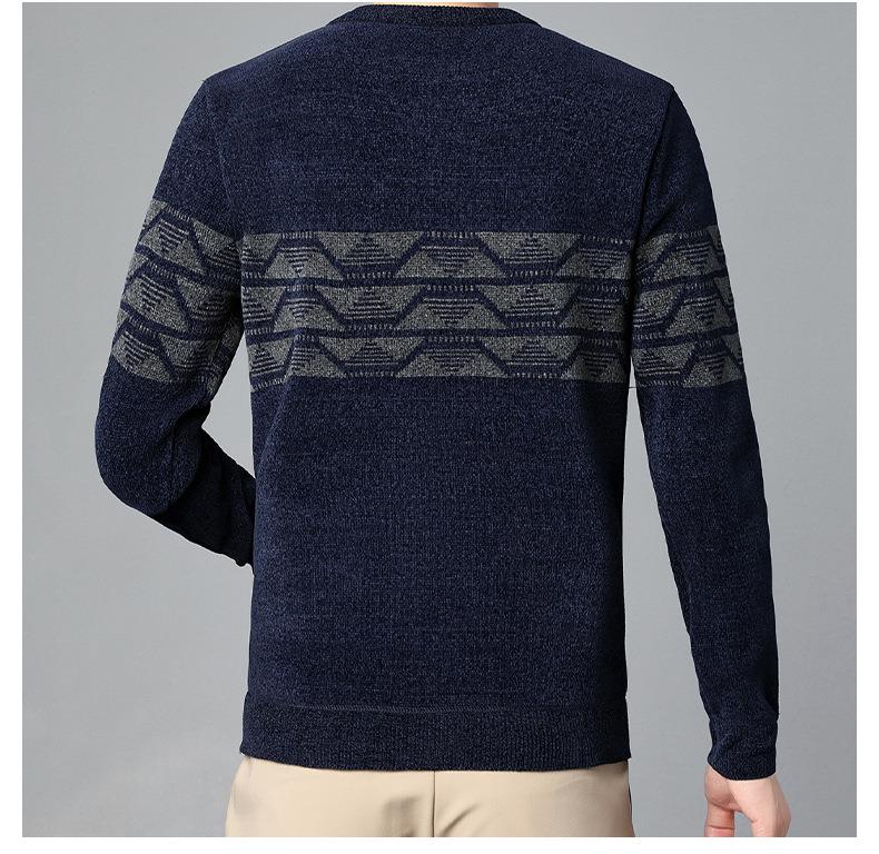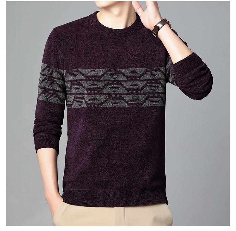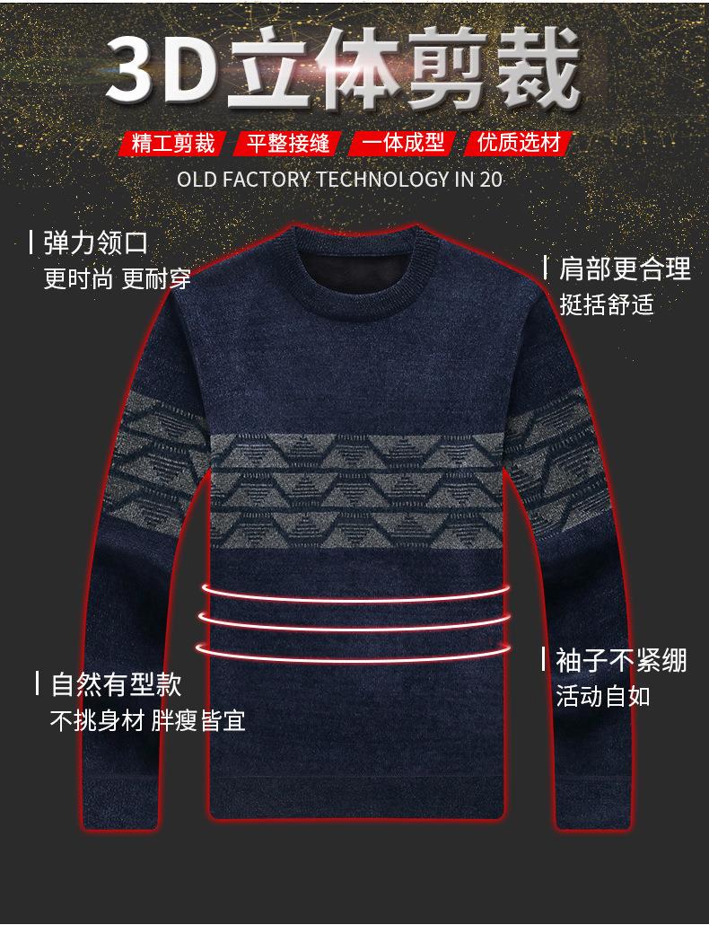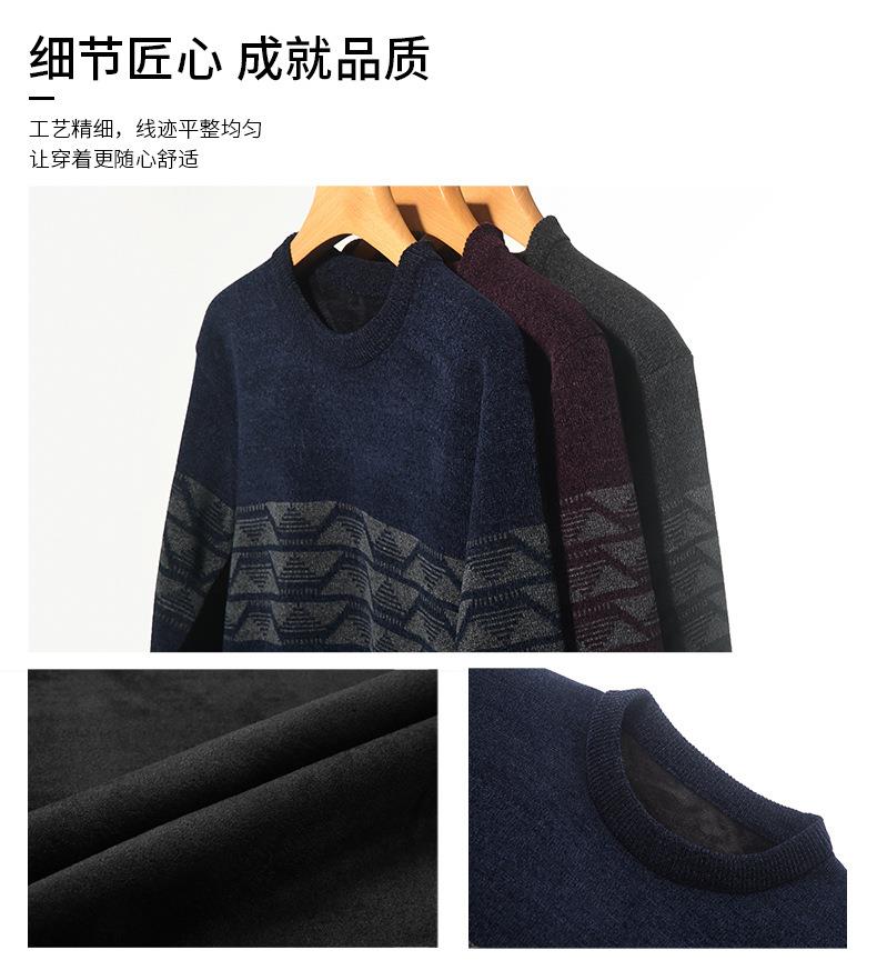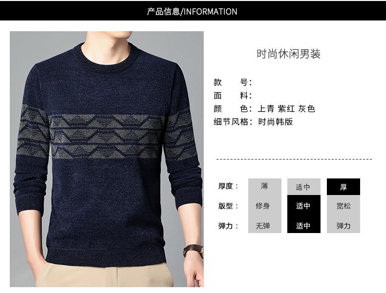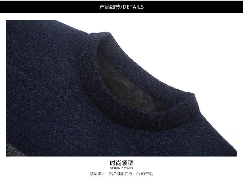 冬季新款雪尼尔加绒毛衣中老年休闲爸爸男装条纹针织衫