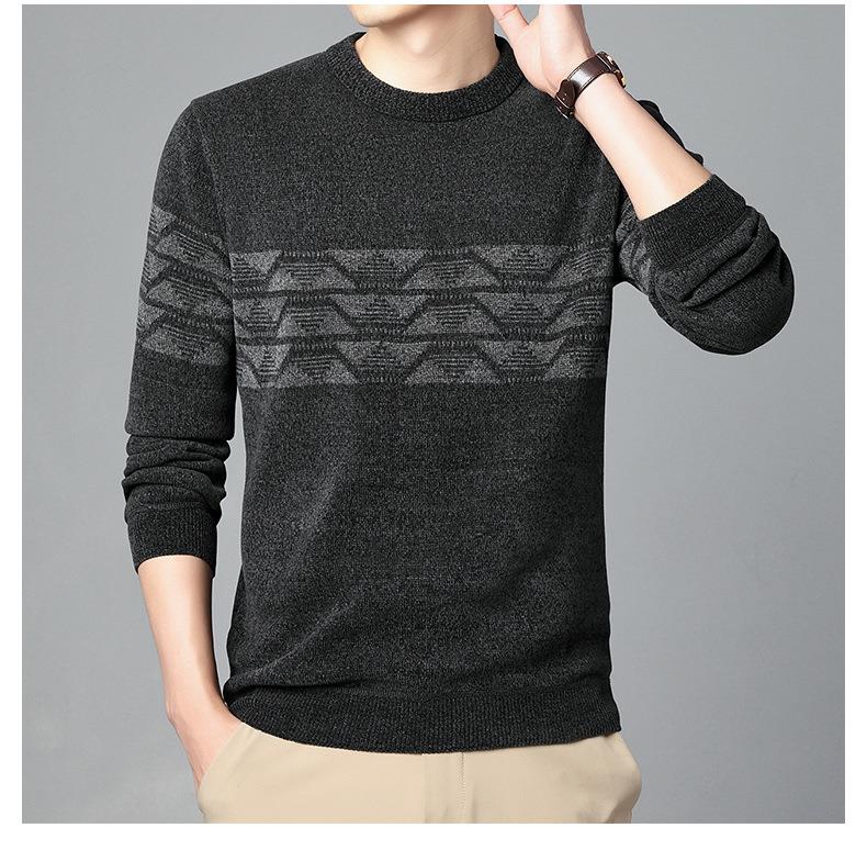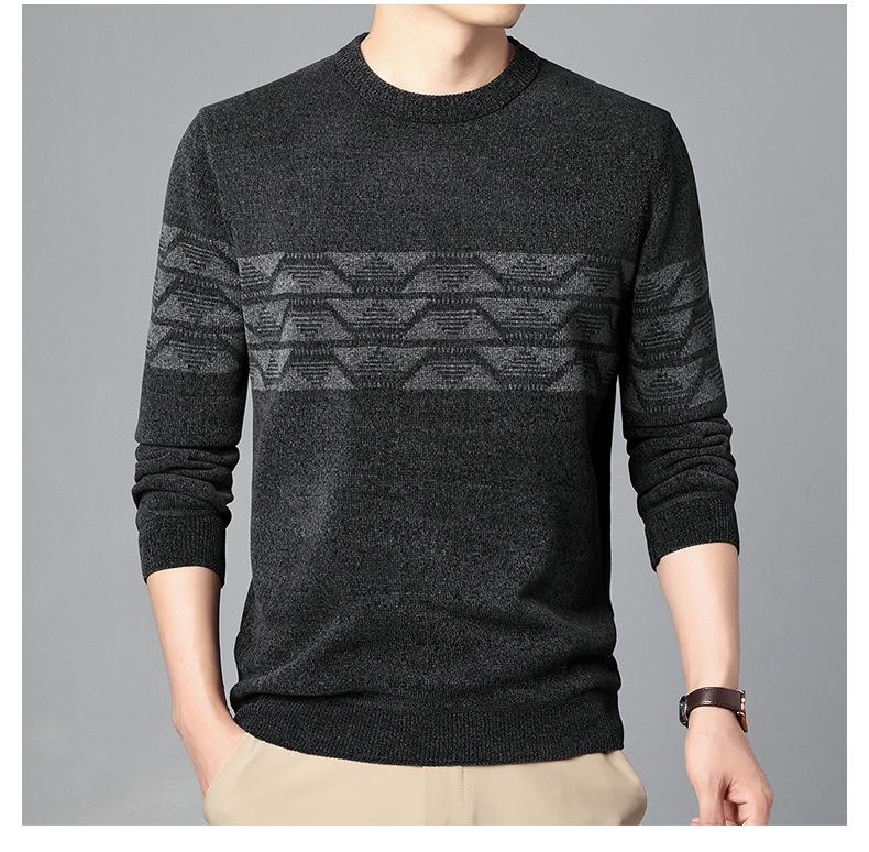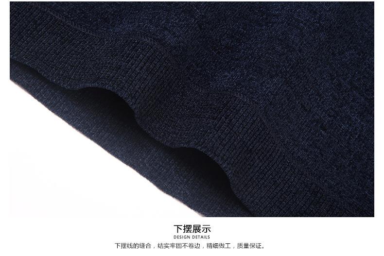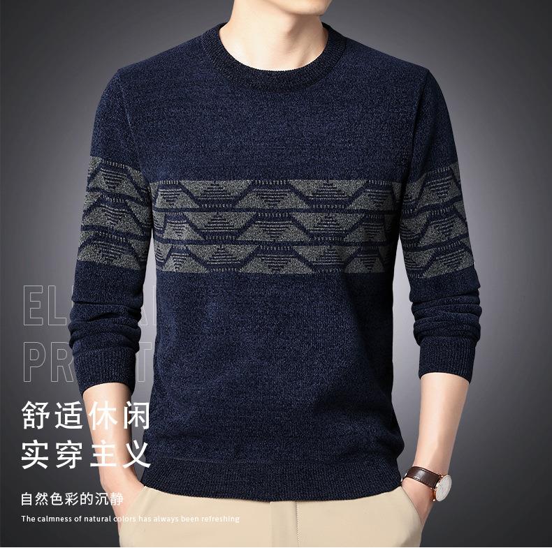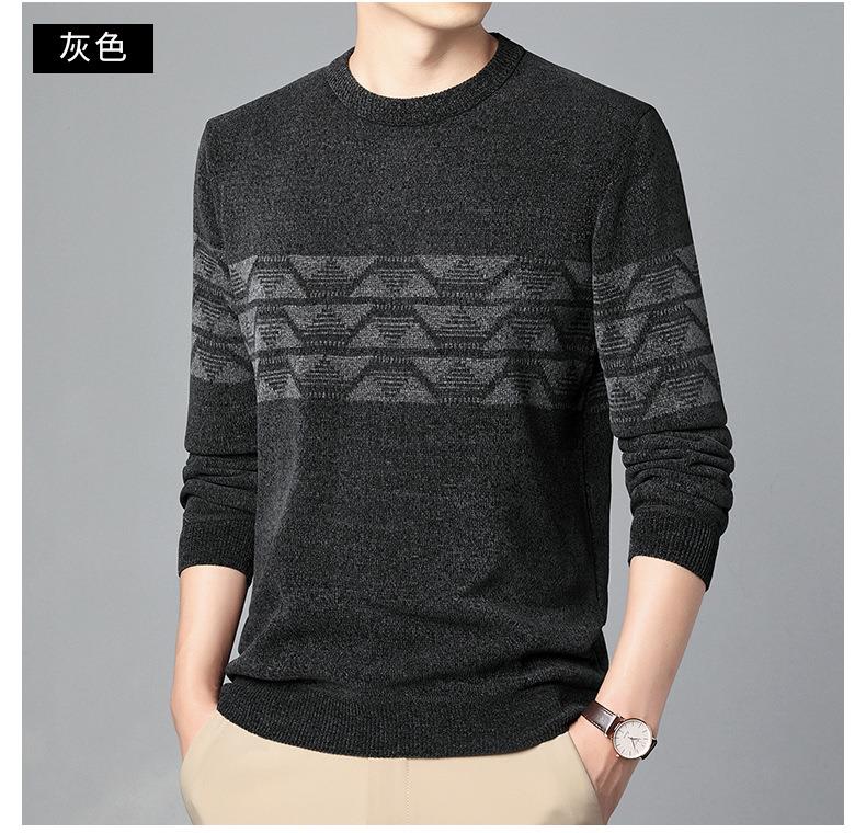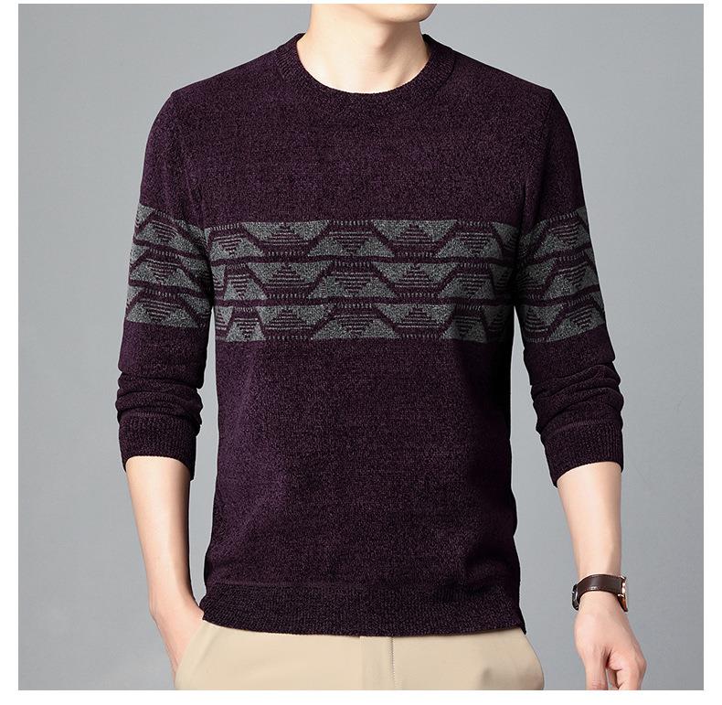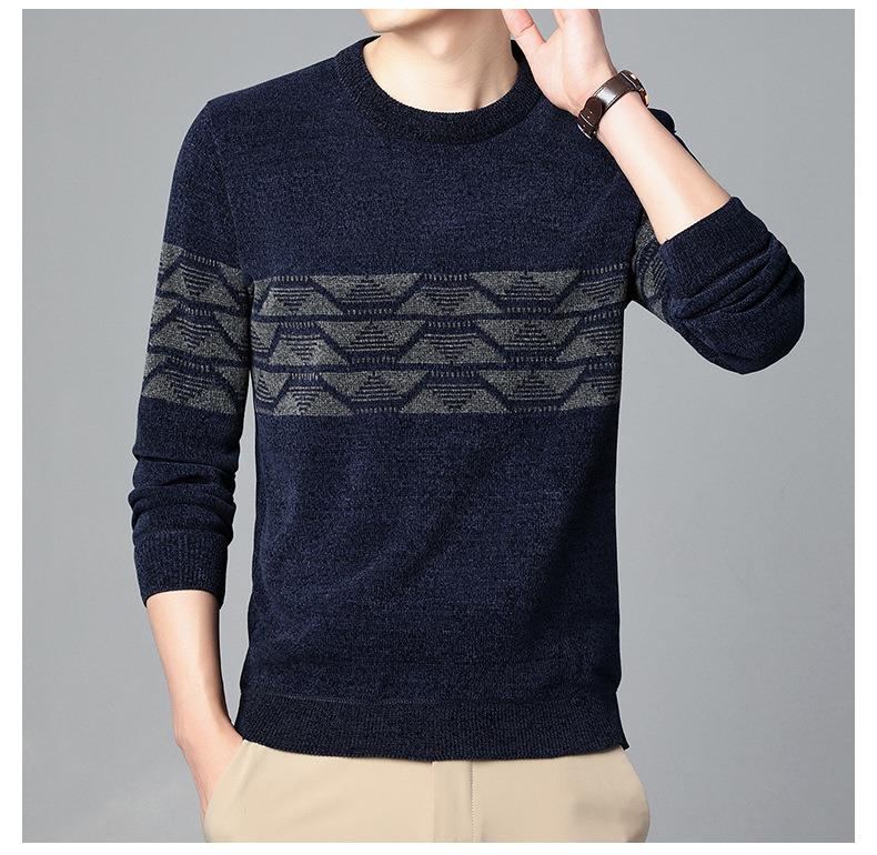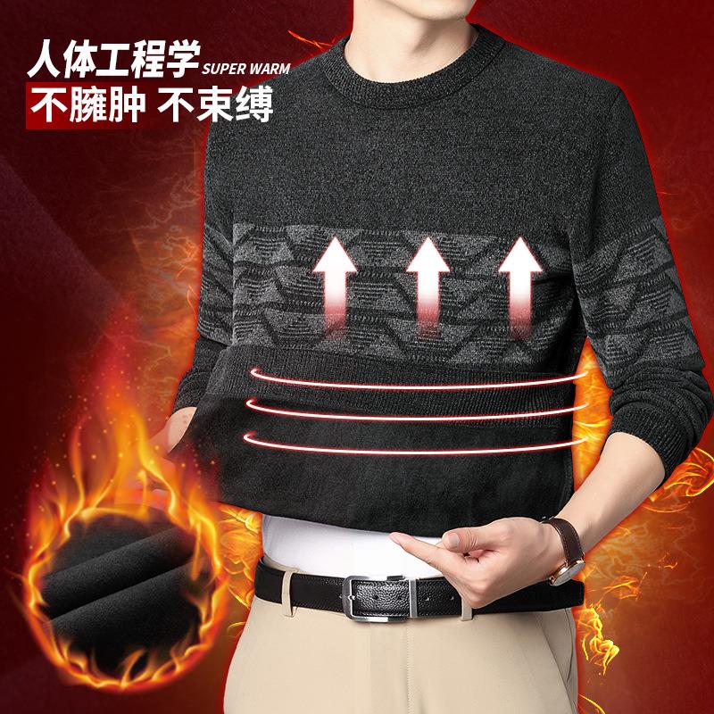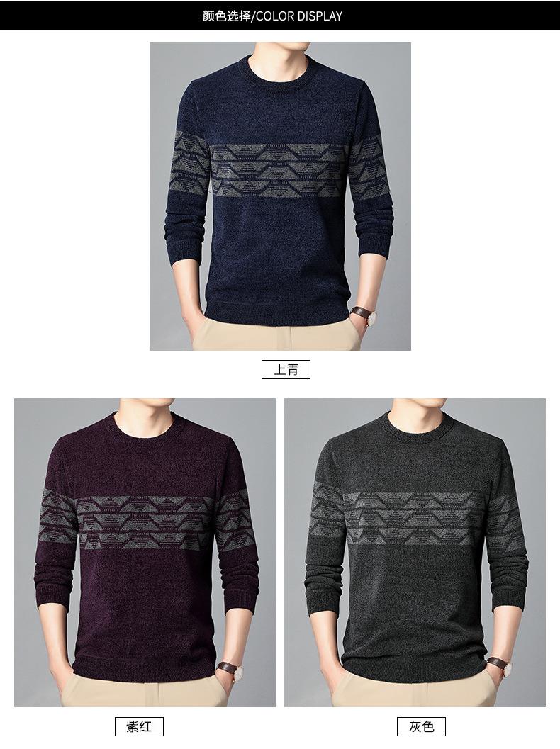冬季新款雪尼尔加绒毛衣中老年休闲爸爸男装条纹针织衫