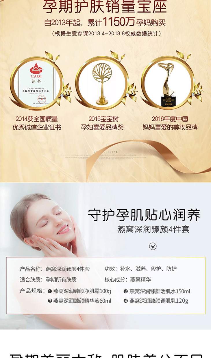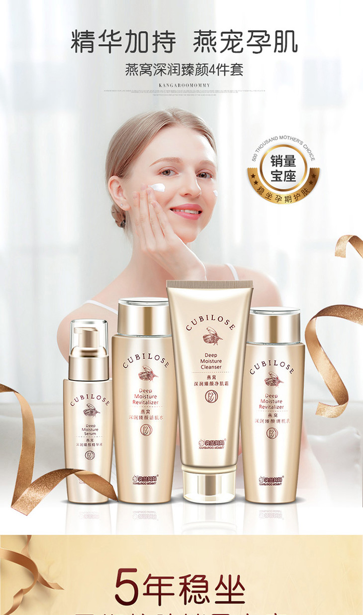袋鼠妈妈 燕窝深润臻颜4件套 孕妇护肤品天然套装 孕妇化妆品JPY带授权招加盟代理