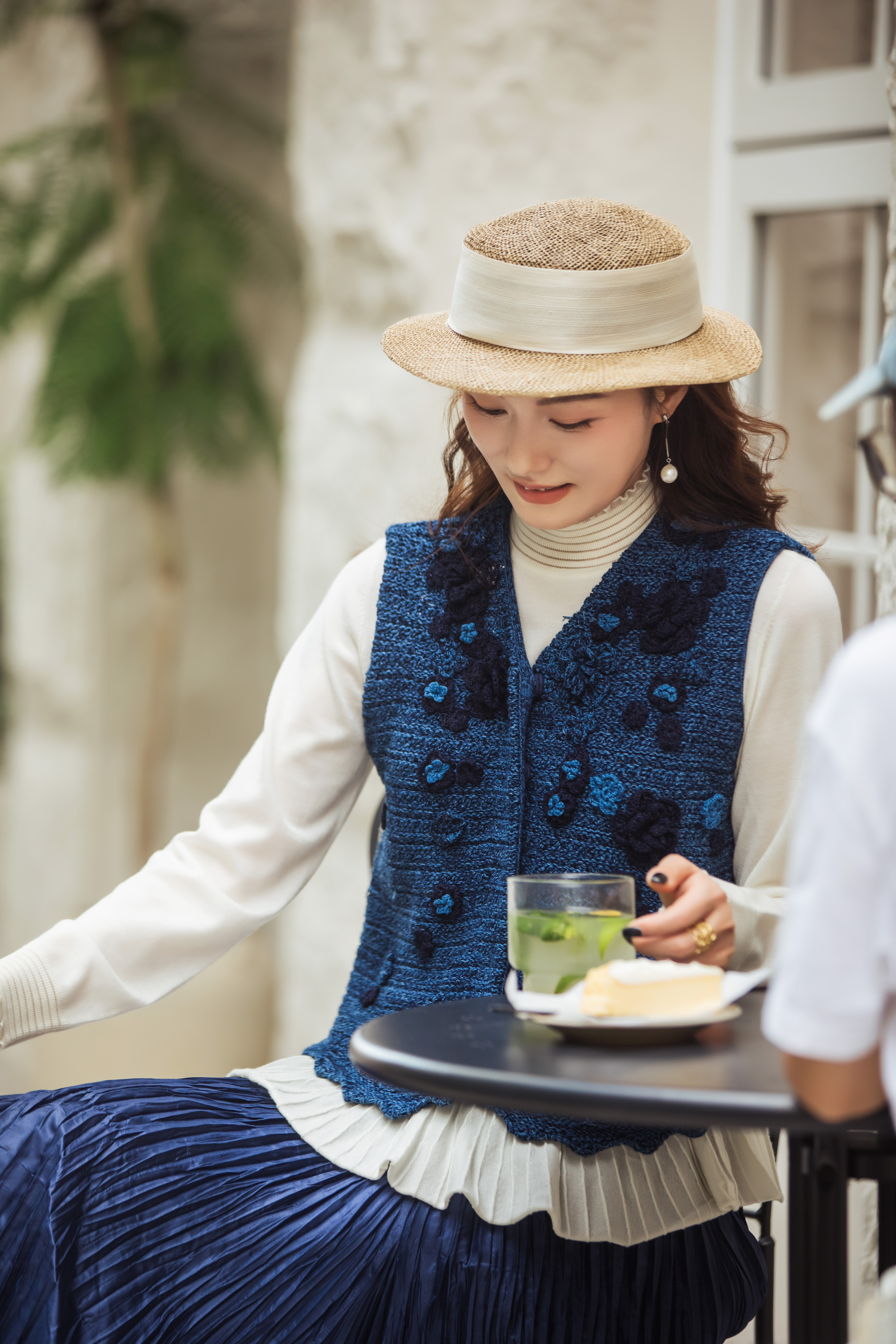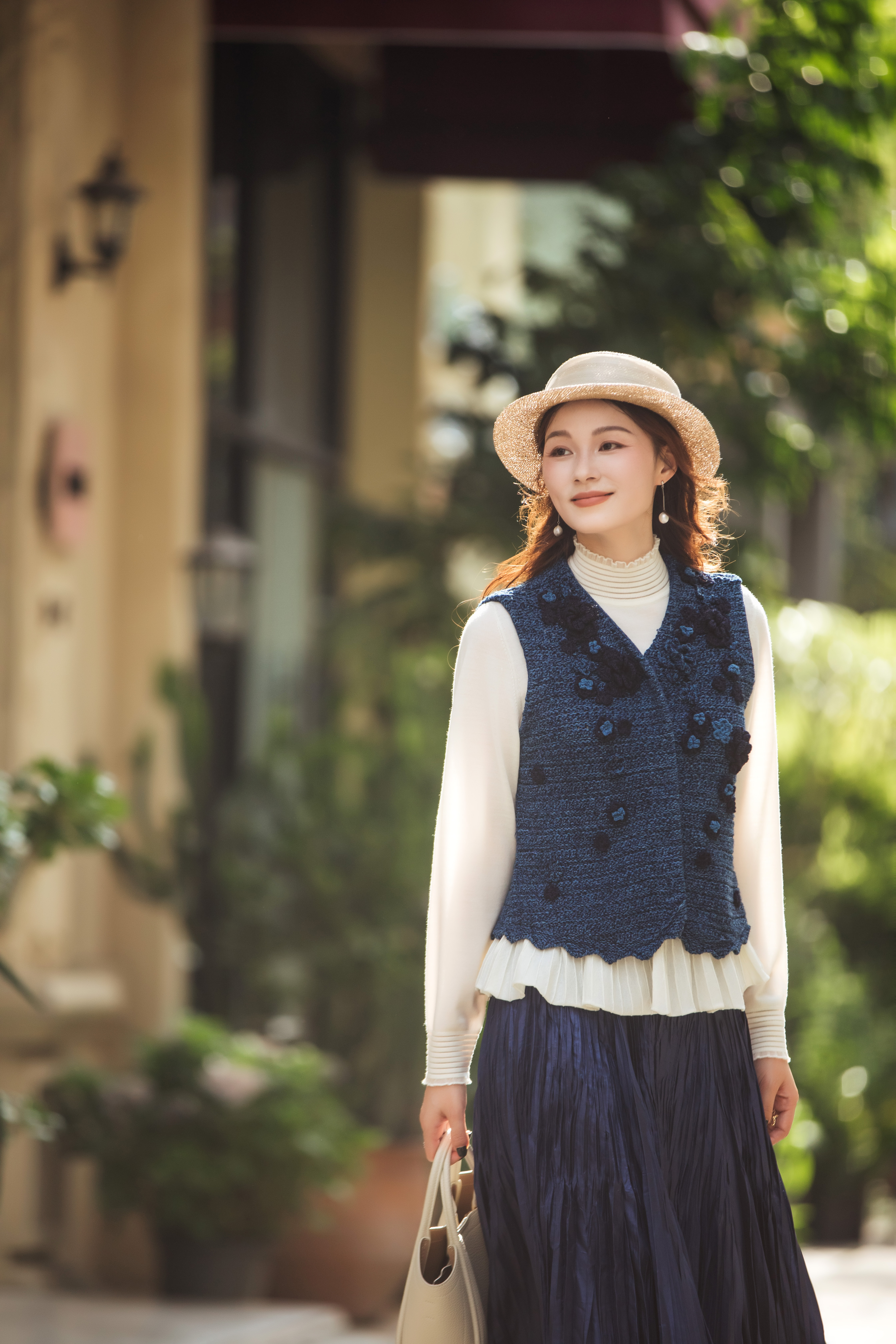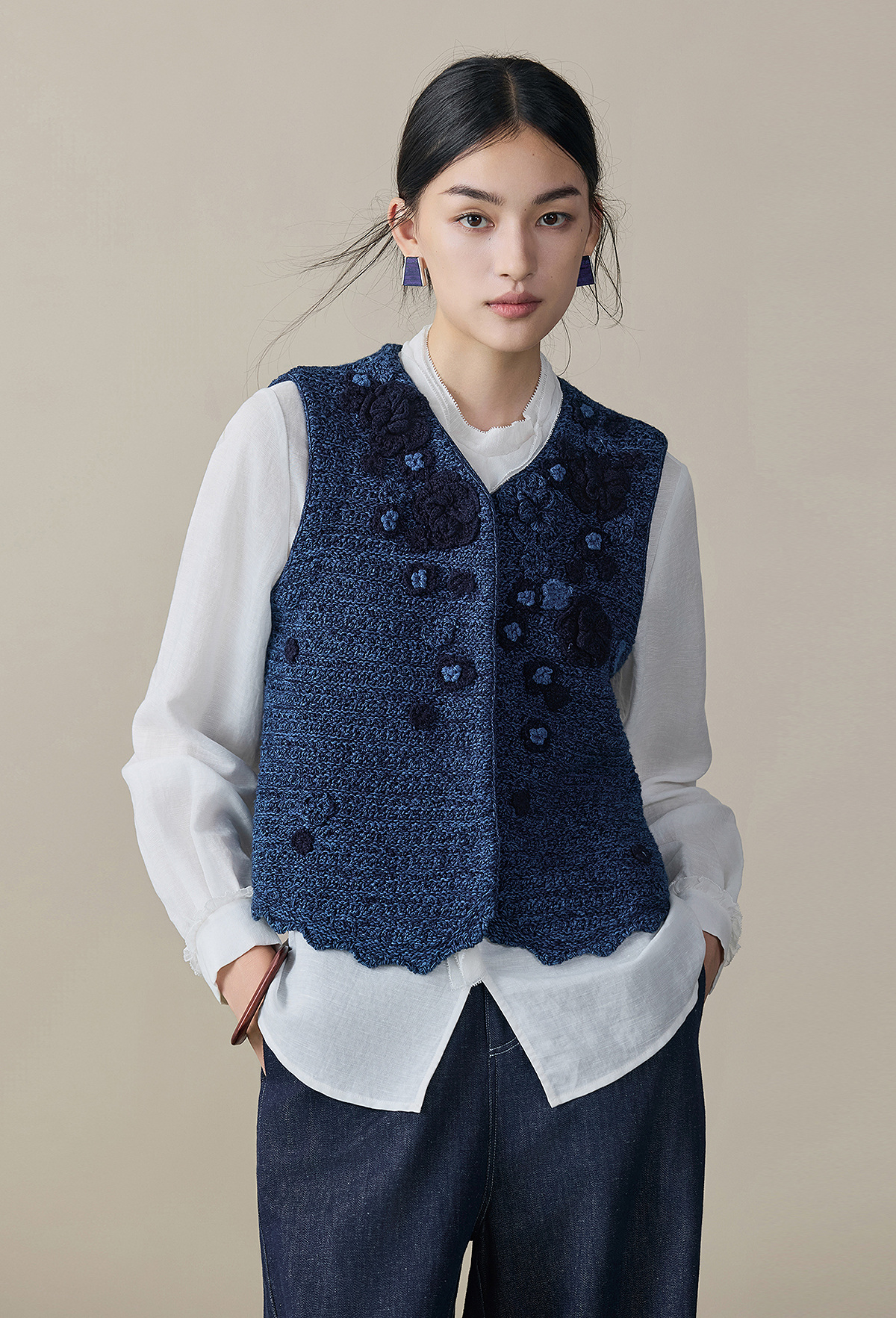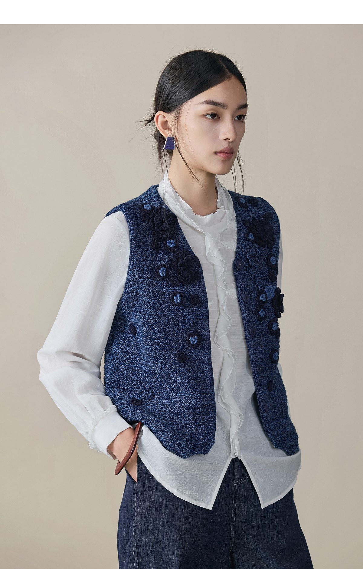 【林栖设计小店】【手工钩花】(现货)纯棉毛织马夹花边2025秋冬新款外套上衣女1954008