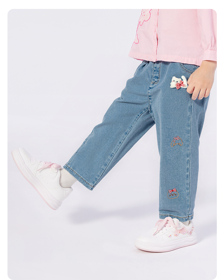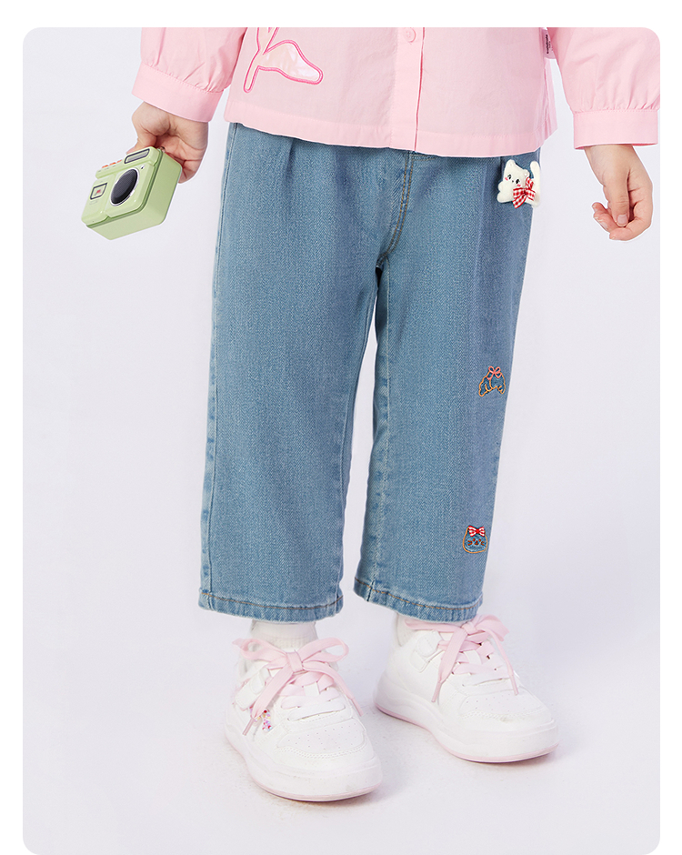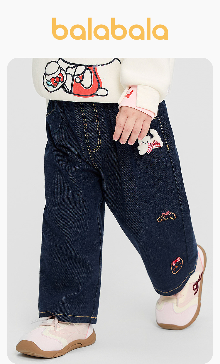 巴拉巴拉女童牛仔裤直筒裤秋冬2025新款长裤绣花洋气