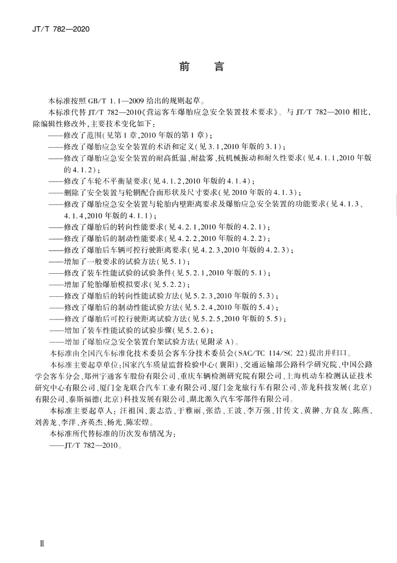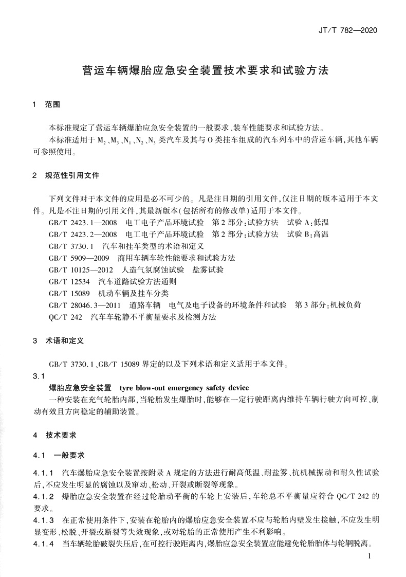 书名:营运车辆爆胎应急安全装置技术要求和试验方法(JT/T 782—2020)