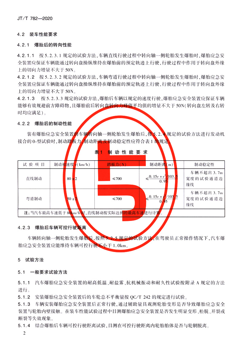 营运车辆爆胎应急安全装置技术要求和试验方法(JT/T 782—2020)