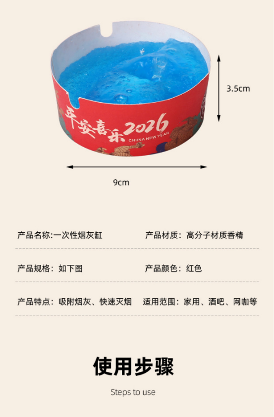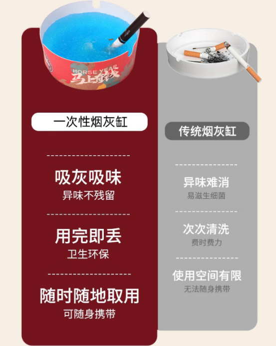 🧧新年红色一次性防飞烟灰缸,增加了新年气氛,又保持了家里的整洁🧧 🌈一次性防飞烟灰缸、轻松吸附烟灰、不易掉落🔥 👉【一次性烟灰缸】精美筒装包装只需9.9元 ✅半固态不仅能吸附烟蒂和烟灰,净化环境空气 ✅使用特别简单!凝胶质地!安全无毒!遇水就会膨胀起来 ✅一次性设计,用完直接扔掉,干净方便,解决了清理烟灰的烦恼 🌈杜绝灰飞烟灭🚬家里、办公室、新年必备品🧧