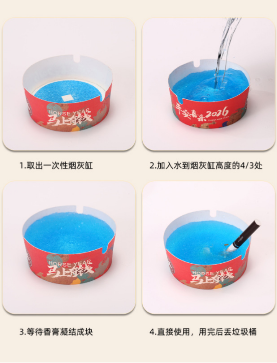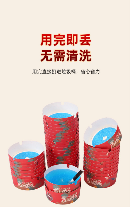 年货节🔥【一次性红色免洗发泡烟灰缸】 逢年过节有了他,新年款红色喜庆的一次性烟灰缸 年底家里客人多的 , 再也不用洗烟灰缸了 !! ✅新年限定发泡一次性烟灰缸灭烟沙家用客厅防飞灰卧室办公室除烟味 多备几桶 ,再也不用担心烟灰飘得到处都是,方便还实用 ✅ 烟灰缸用完就丢,还能吸附二手烟呵护家人健康丨一次性泡发烟灰缸 ✅ 半固态不仅能吸附烟蒂和烟灰,净化环境空气,使用特别简单!凝胶质地!安全无毒!