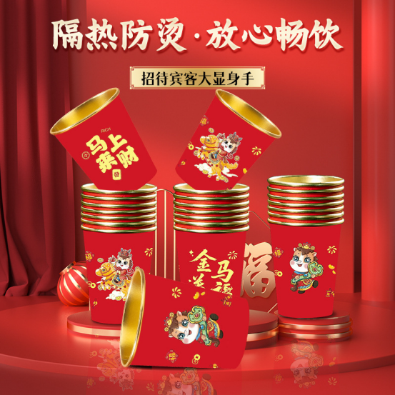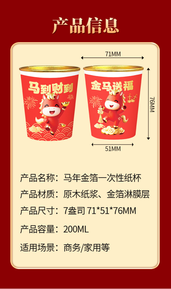 年货节🔥【马年金箔一次性纸杯】这羊毛不薅真的亏了! 过年氛围感必须狠狠拿捏🔥日常喝茶、喝咖啡、正月招待客人!红红火火贼喜庆🎉居家待客真的绝绝子👍 ✅不仅外观设计可爱,还采用了加厚防漏防烫处理 ✅不会软趴趴、加厚加硬、高端大气,隔热防烫,不易变形 👍 结实耐用💕🐎马到功成🎇#家居日用#