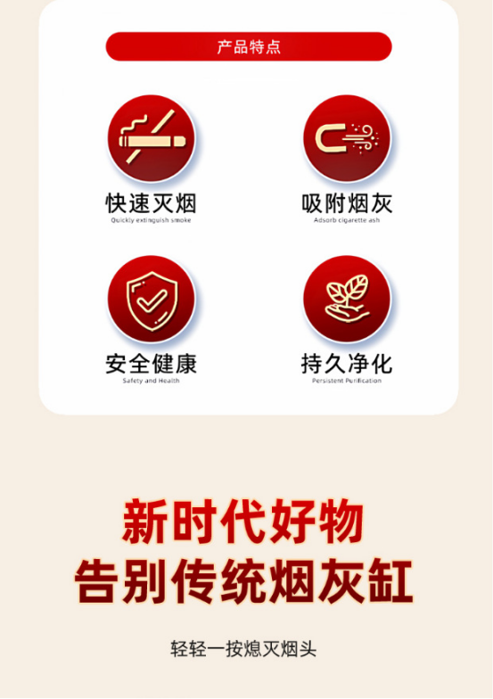 它的一次性设计,用完直接扔掉,干净方便,解决了清理烟灰的烦恼。 盒装设计方便携带,方便灭烟让室内空气更加清新。???? 半固态不仅能吸附烟蒂和烟灰,还能通过高分子分解烟毒,净化环境空气 大大改善传统烟灰缸对室内空气造成的二次伤害 而且用完无需处理,整体扔掉即可 环保又节约,适用场景广,值得推荐?