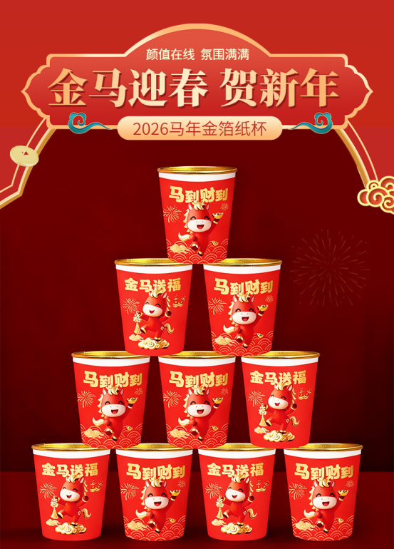 🎉2026🐎马年新春,一次性金箔纸杯,闪耀你的节日时光! 🎊 🍀 亲爱的朋友们,新的一年已经悄然而至🐎🐎🐎 你是否已经准备好迎接这个充满生机与活力的马年了呢? 在这个喜庆的时刻,我们为大家带来了一款别具一格的马年一次性金箔纸杯