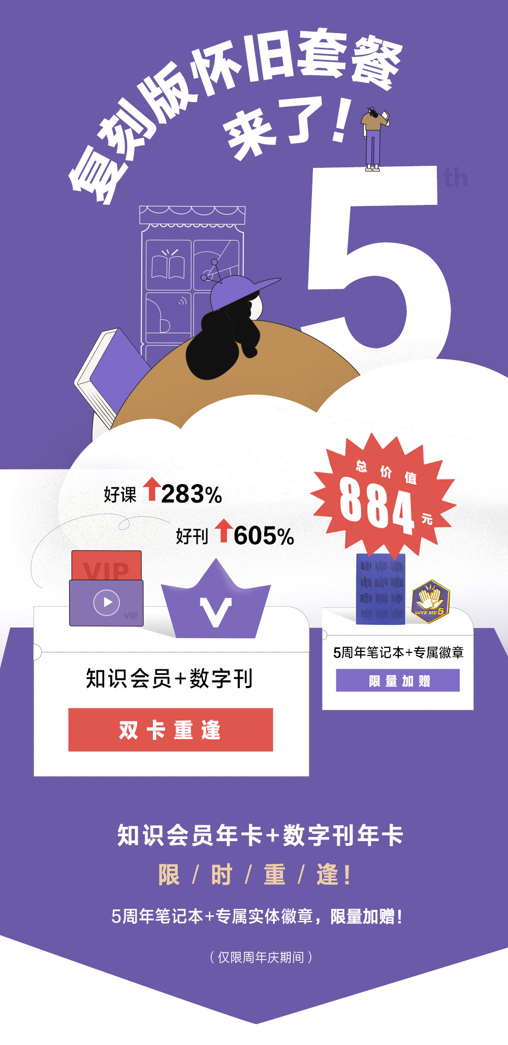 如您首次购买知识年卡/数字刊年卡,购买后,即日起至未来一年可以享受双会员年卡权益,并获赠实体徽章+手账本。