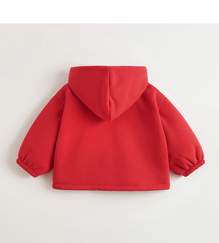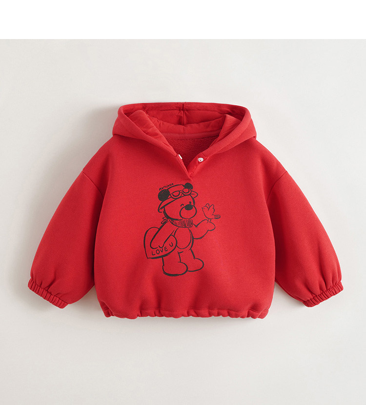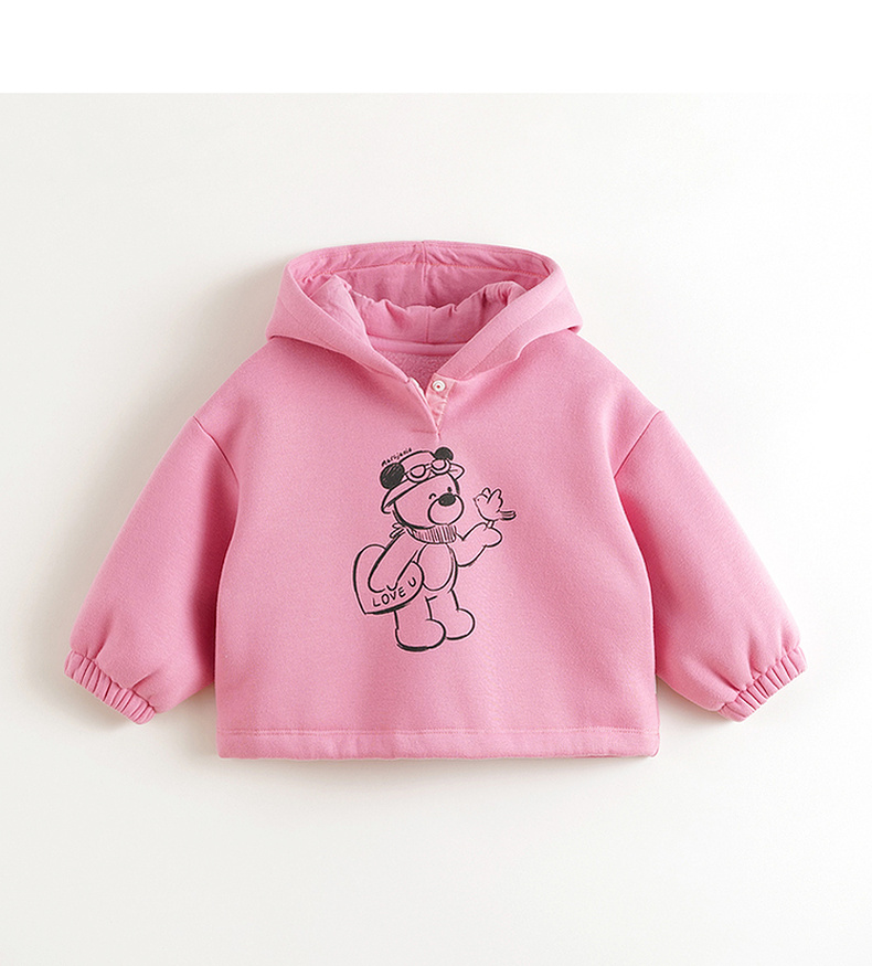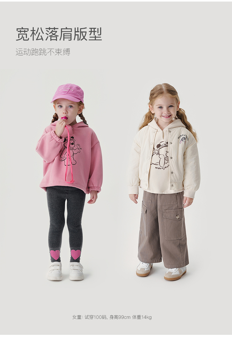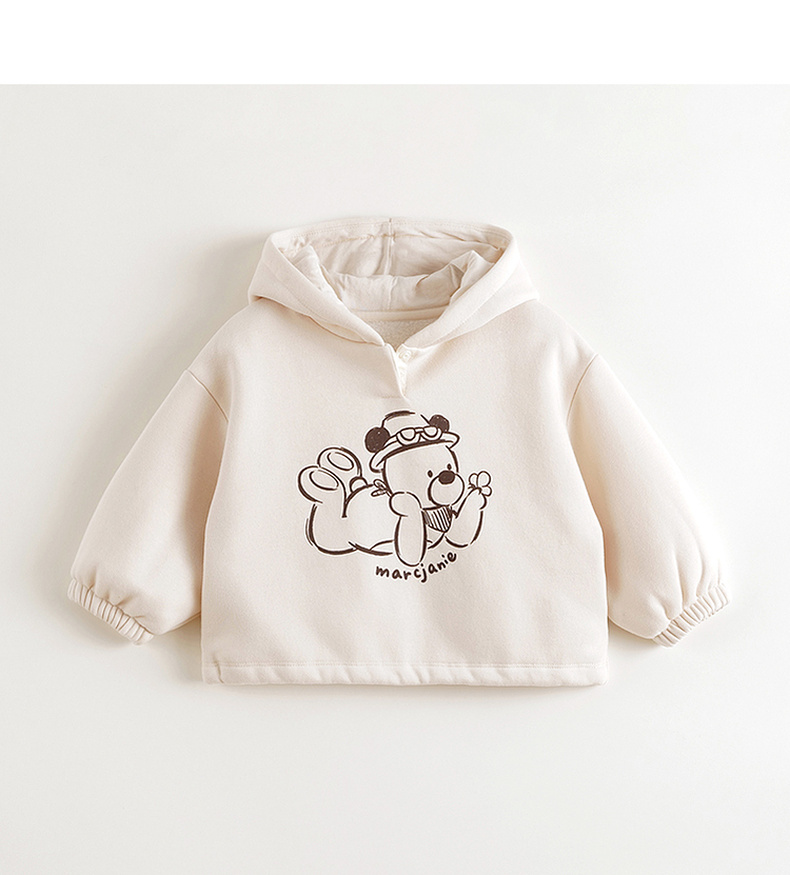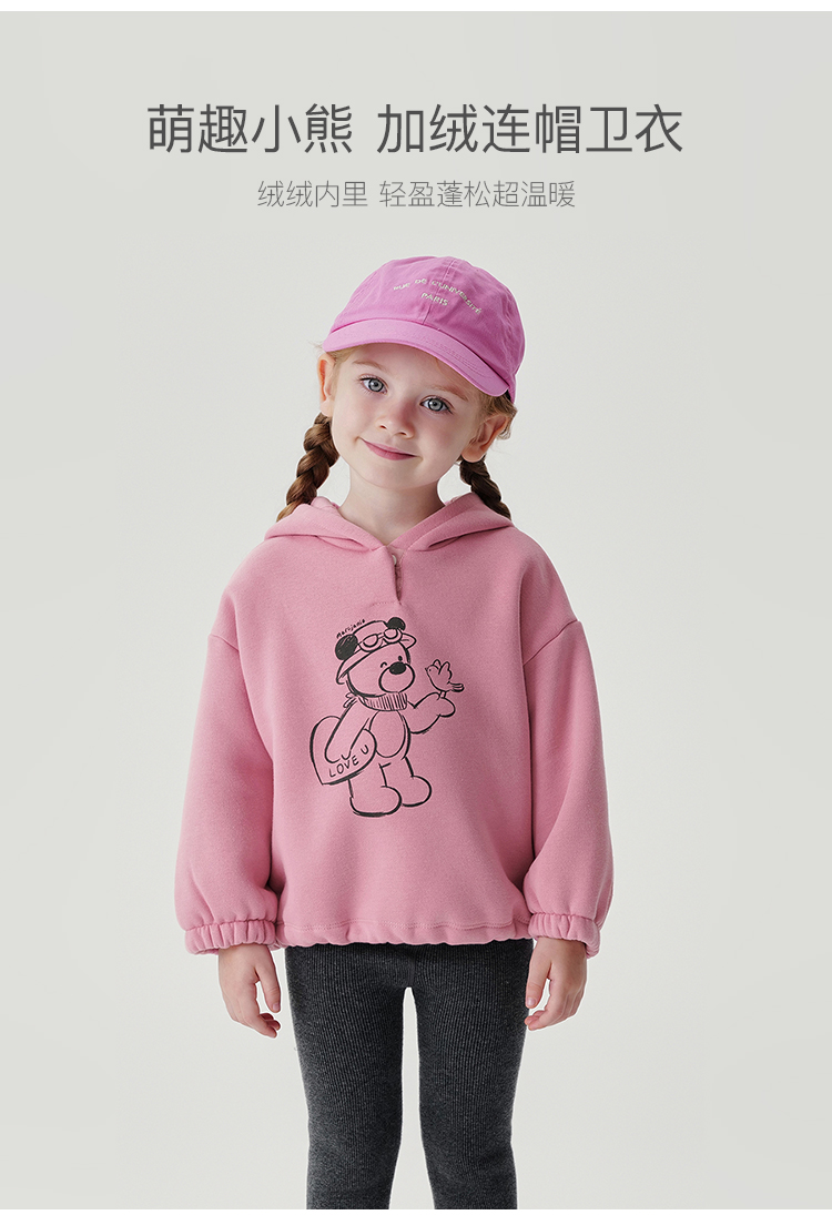 马克珍妮女童萌趣小熊加绒连帽卫衣儿童外套2024年秋冬新款541923