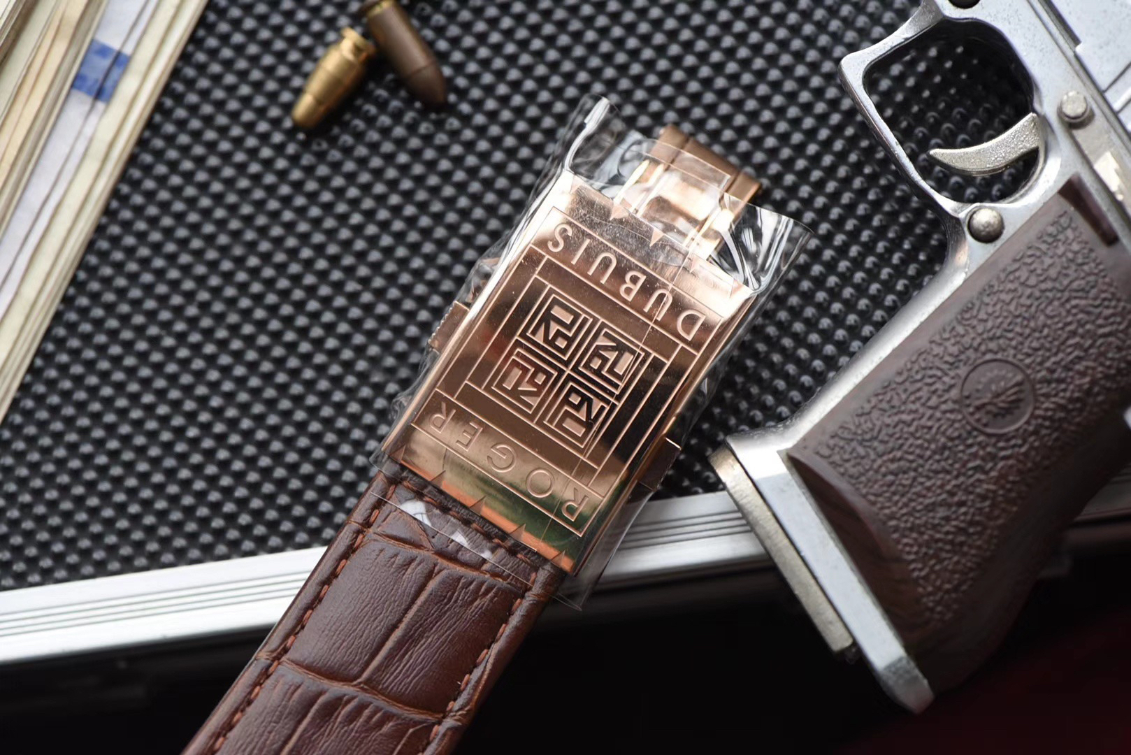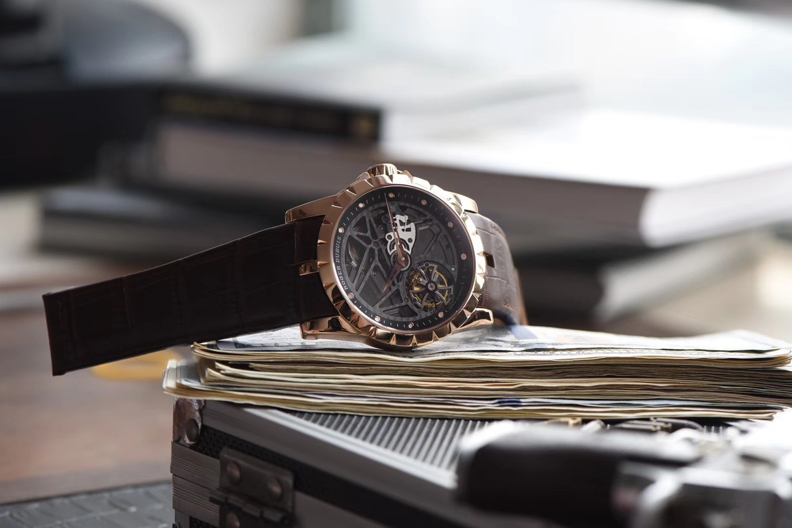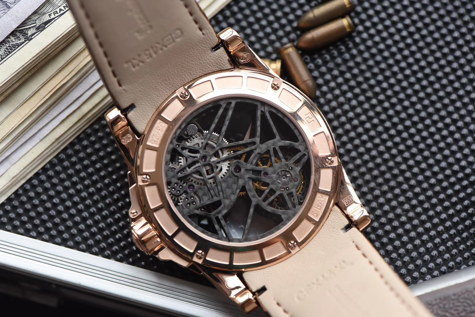 JB罗杰杜彼王者系列玫瑰金壳RDDBEX0392(白壳RDDBEX0393),真的镂空陀飞轮腕表。