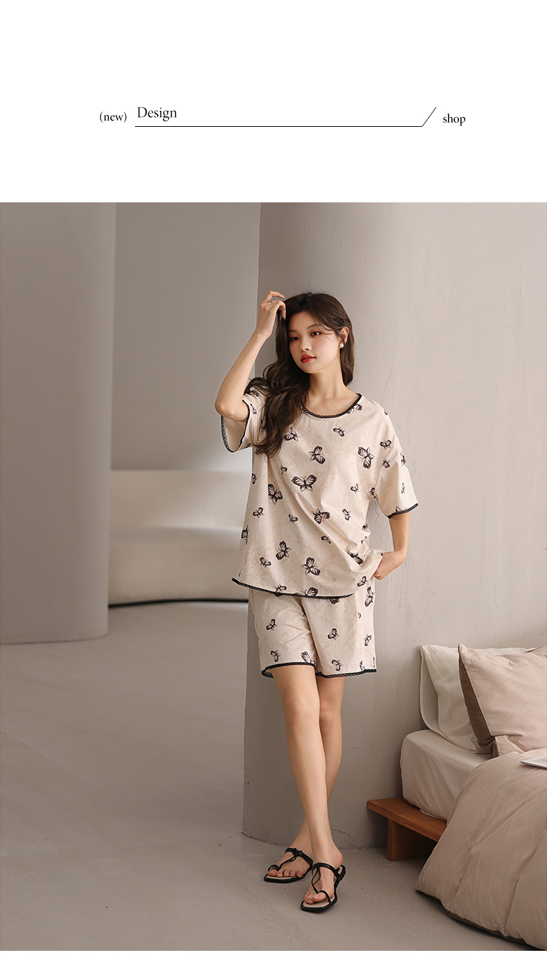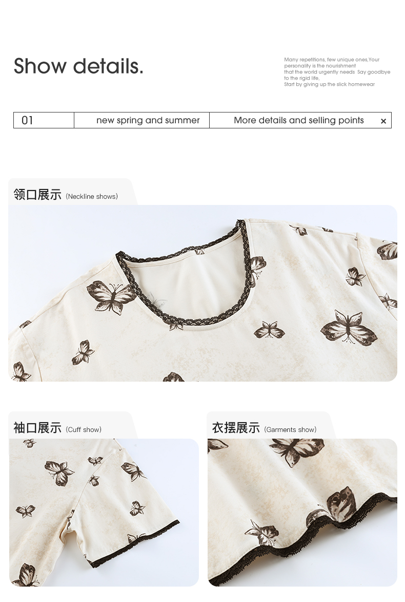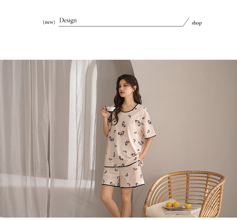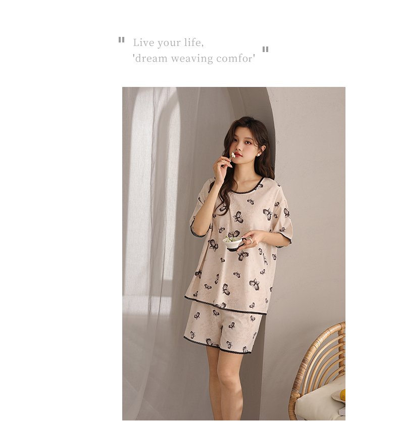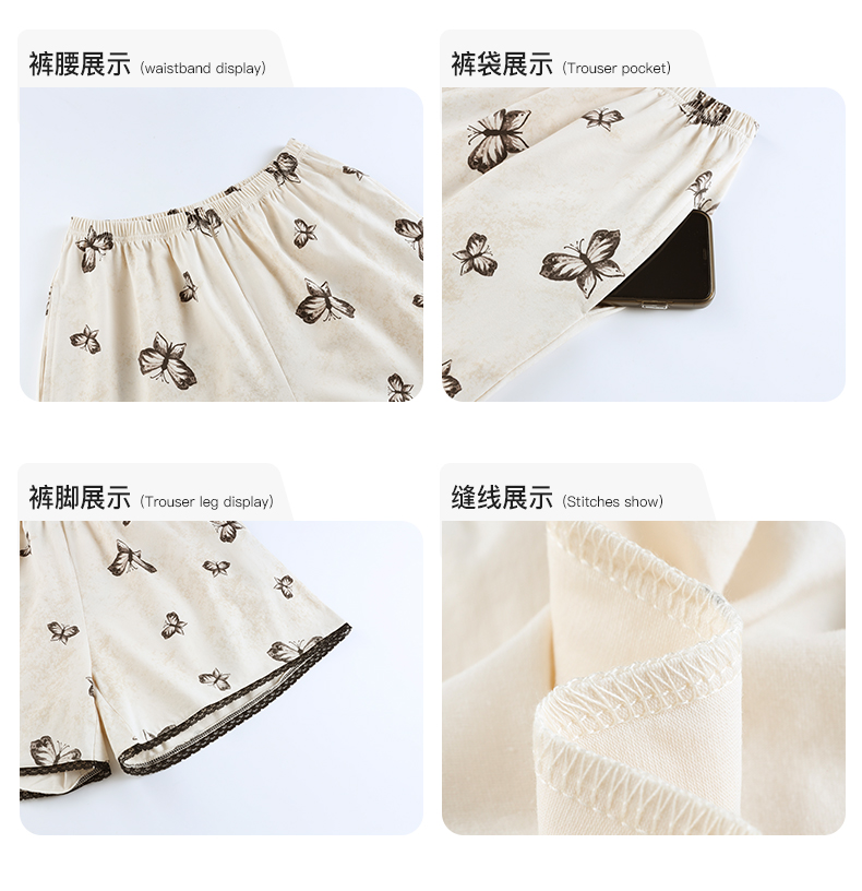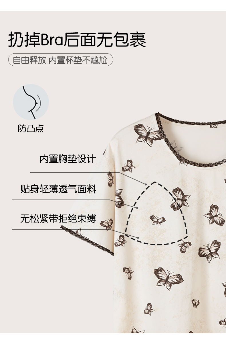 可人儿小众设计奥力绵女士睡衣夏季带胸垫可外出家居服三件套