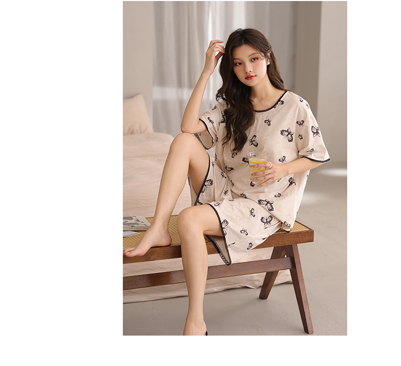 可人儿小众设计师奥力绵女士睡衣夏季短袖少女睡裙可外穿家居服