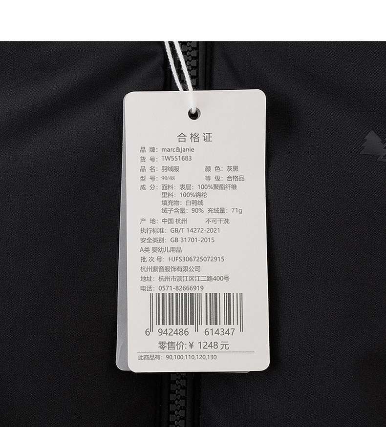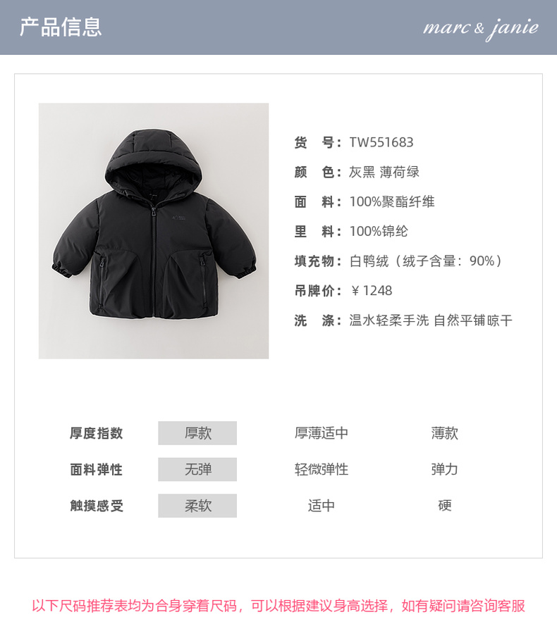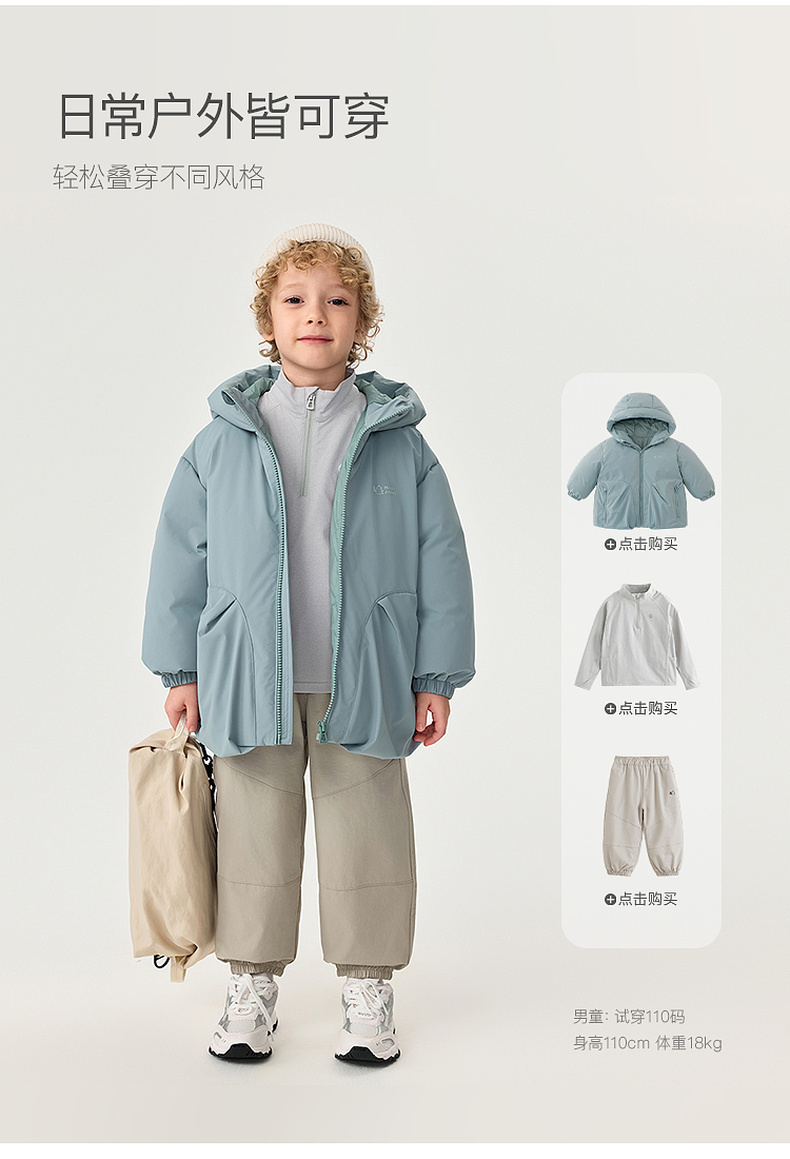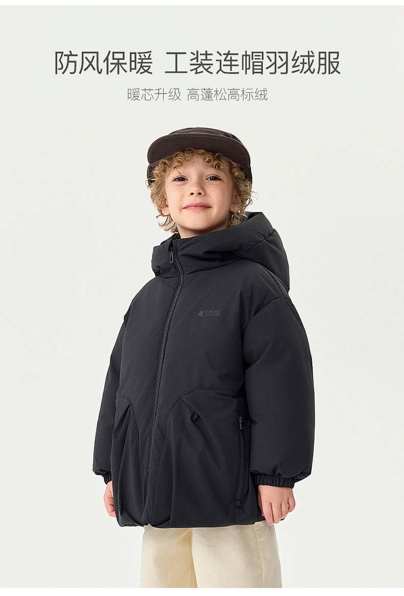 马克珍妮男童时尚加厚工装连帽羽绒服2025年冬装新款551683