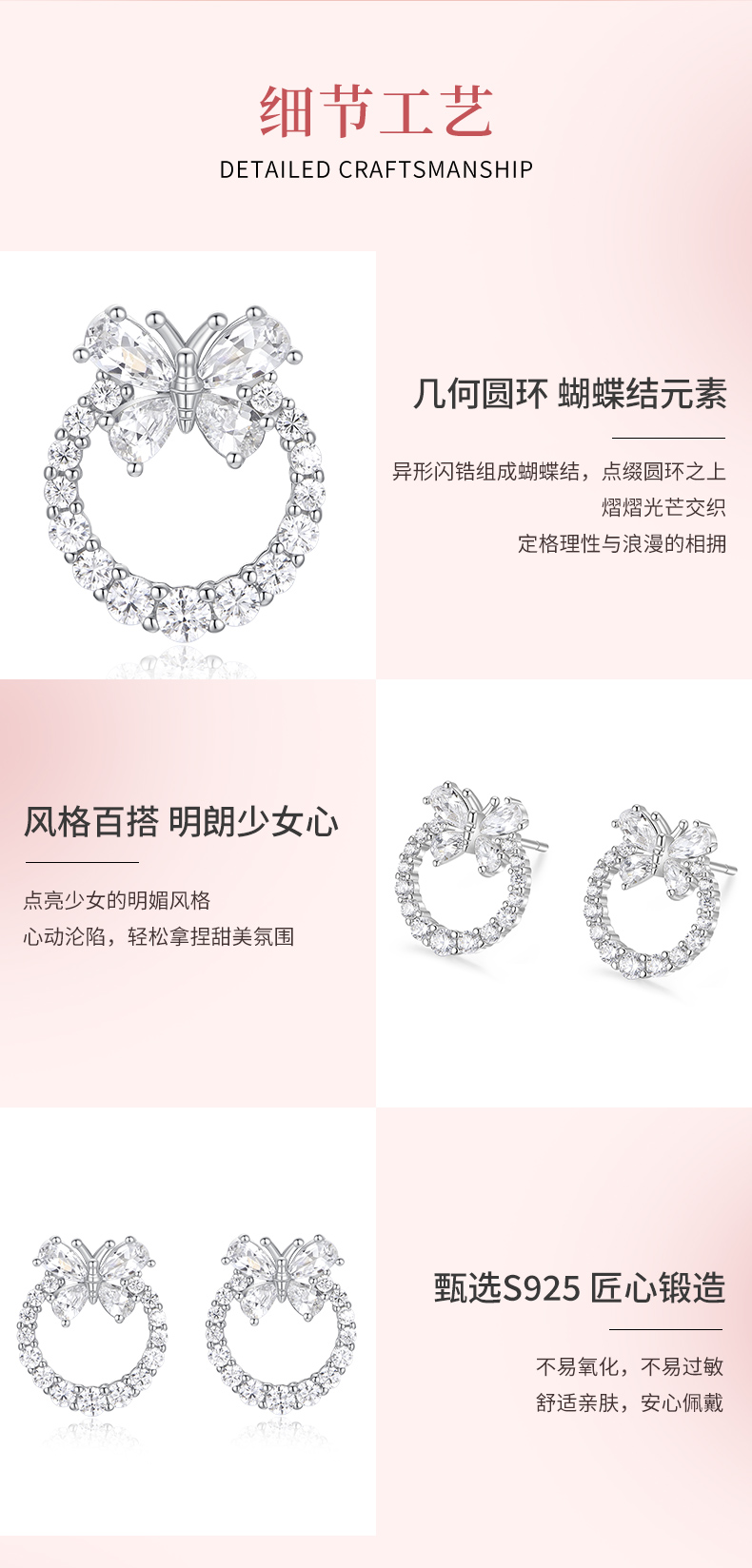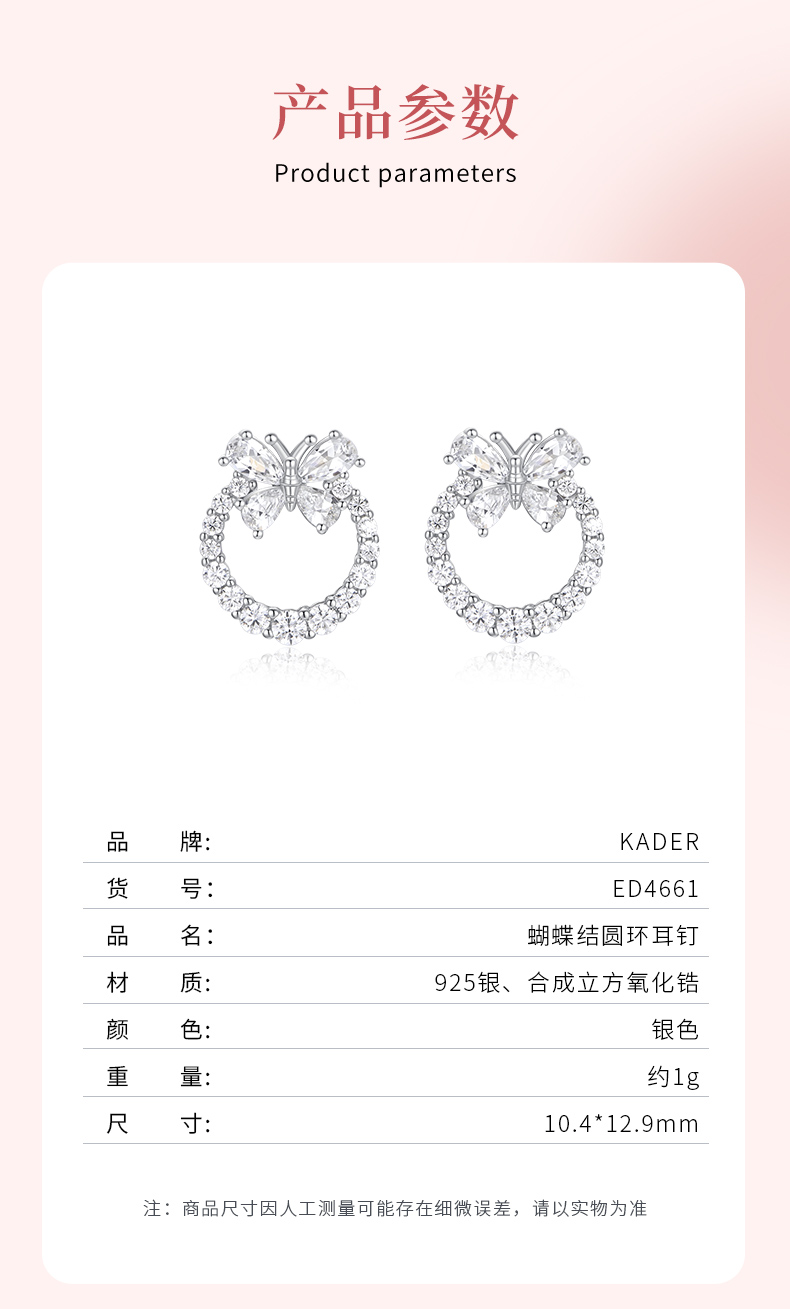 卡蒂罗KADER 蝴蝶结圆环耳钉 在逃公主系列 森系镂空蝴蝶圆环小清新创意养耳洞耳饰设计 韩系小众可爱少女心甜美