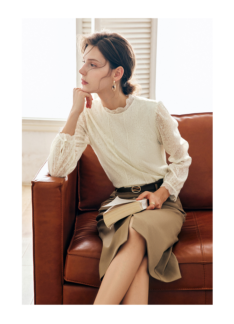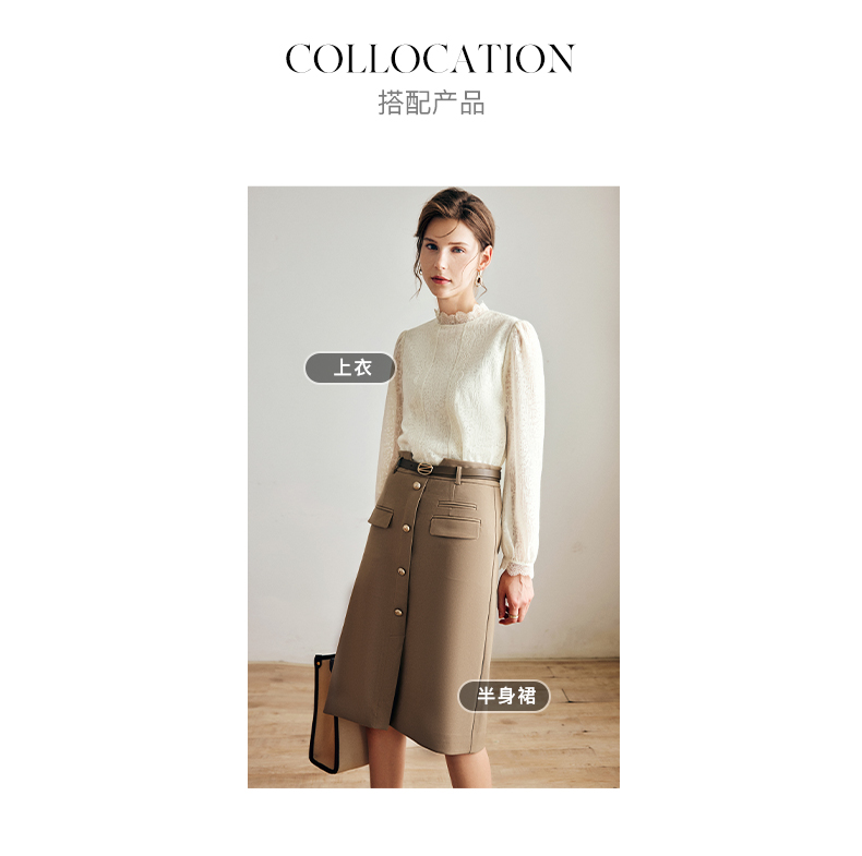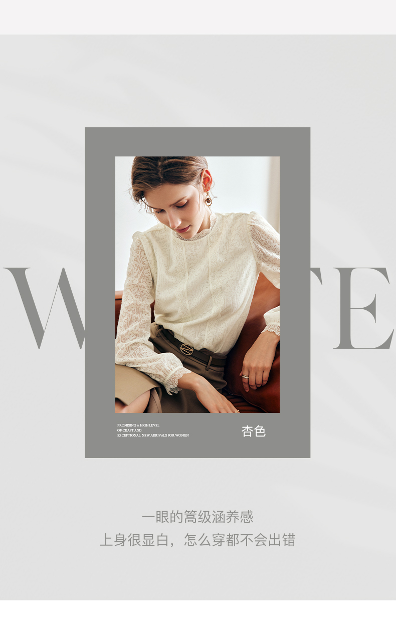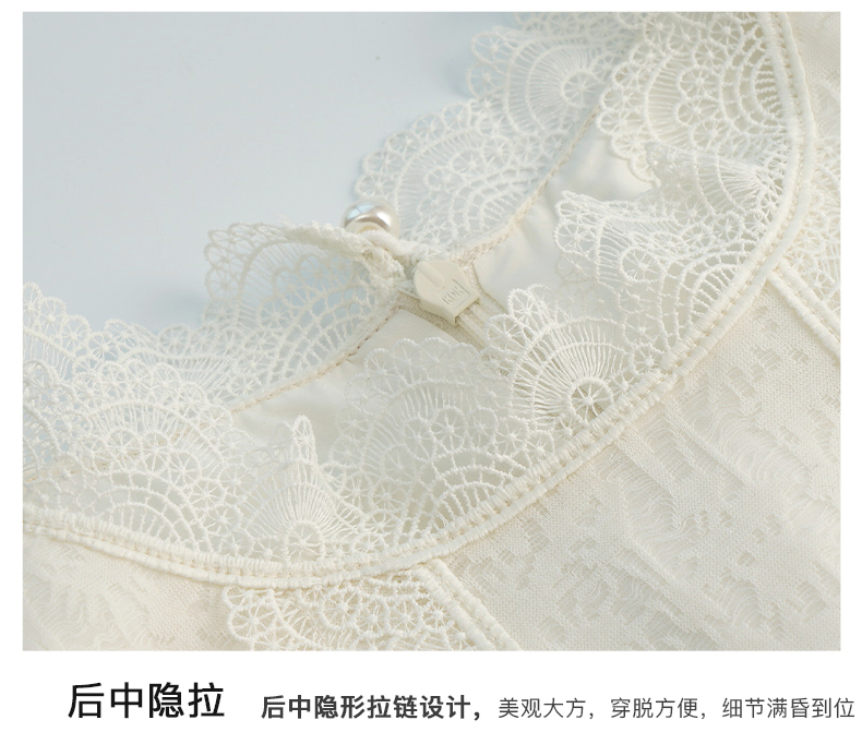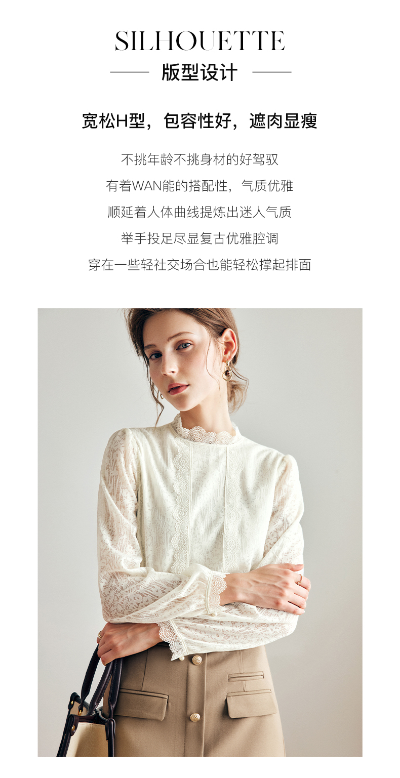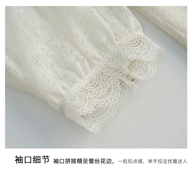 OLrain法式米杏色雪纺蕾丝衫女早秋2022年新款淑女花边小立领上衣