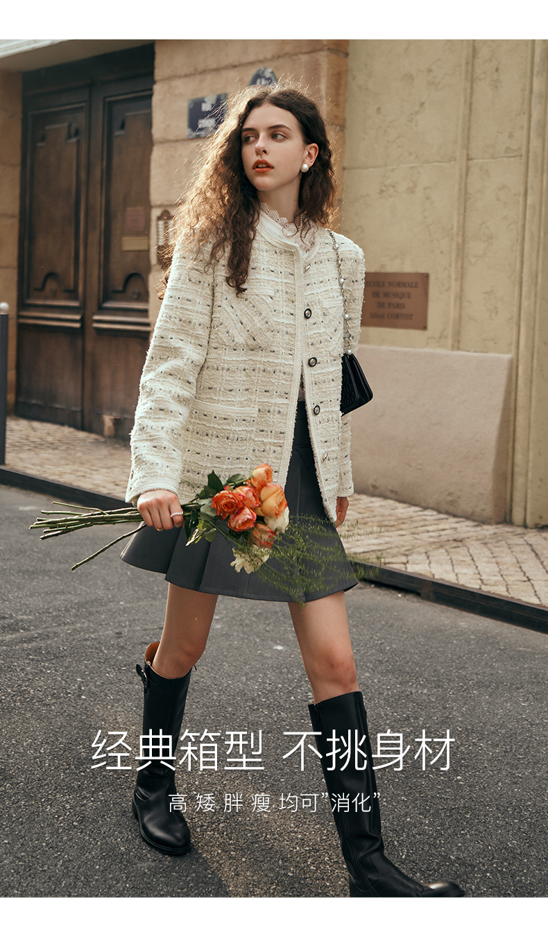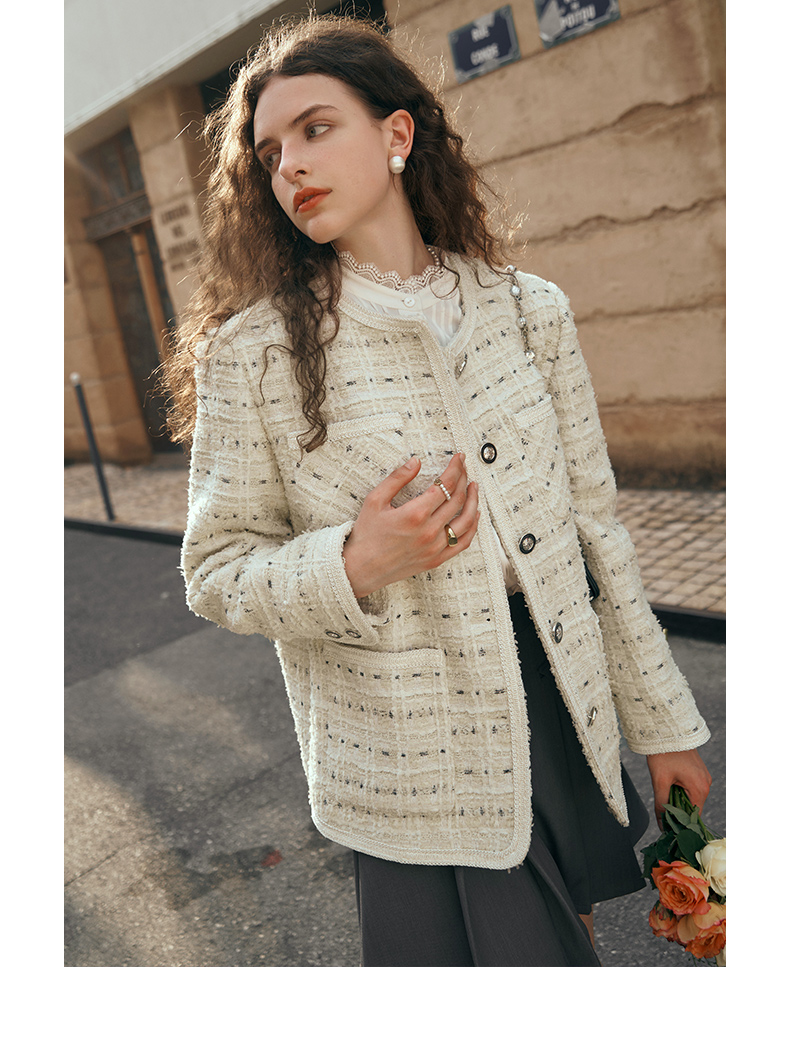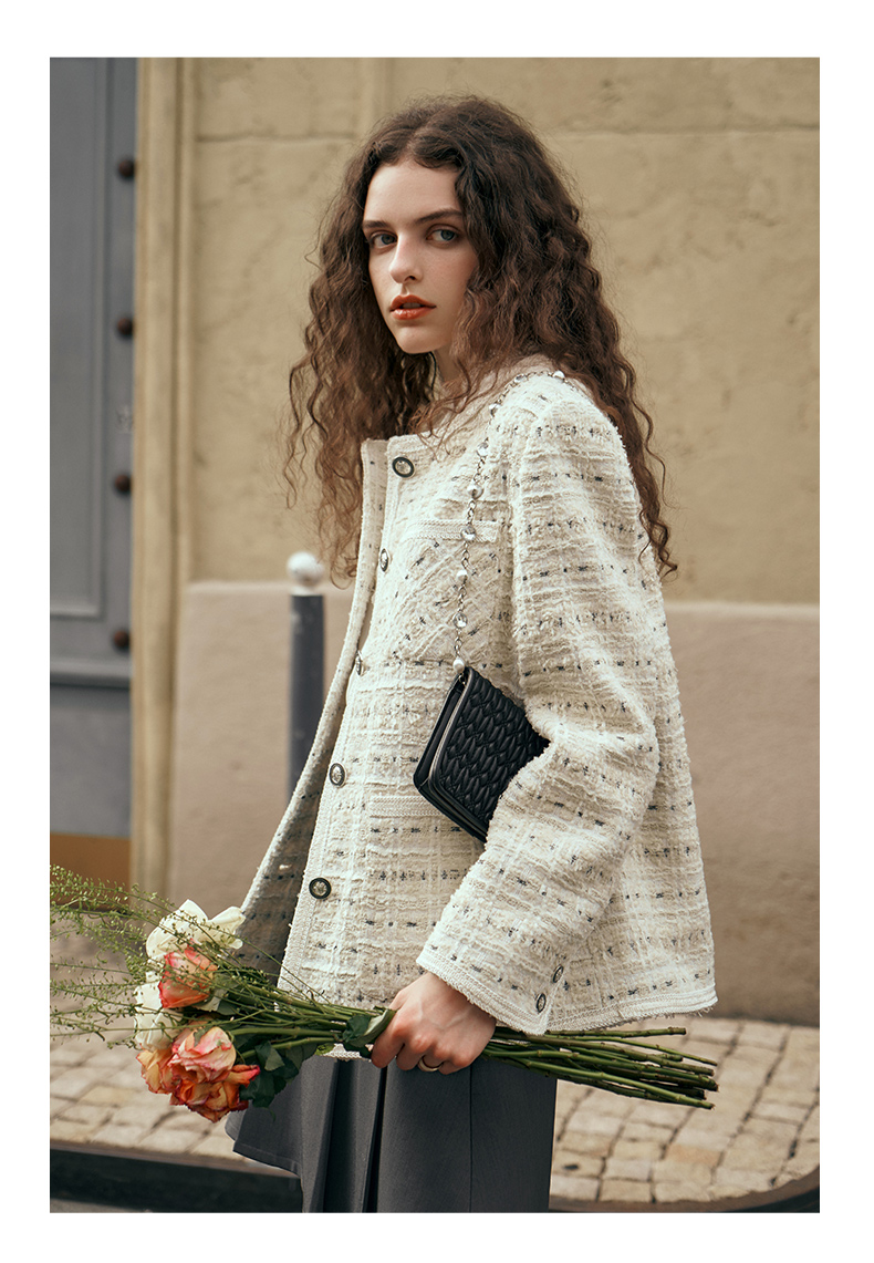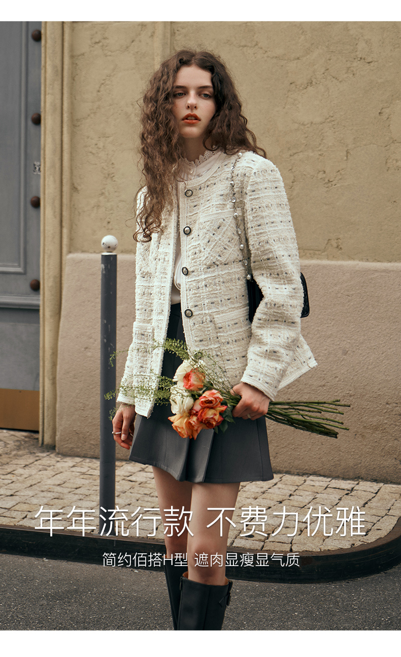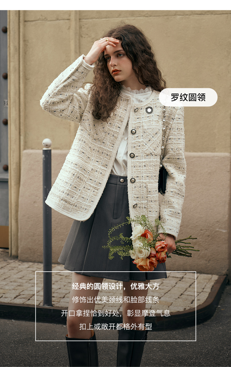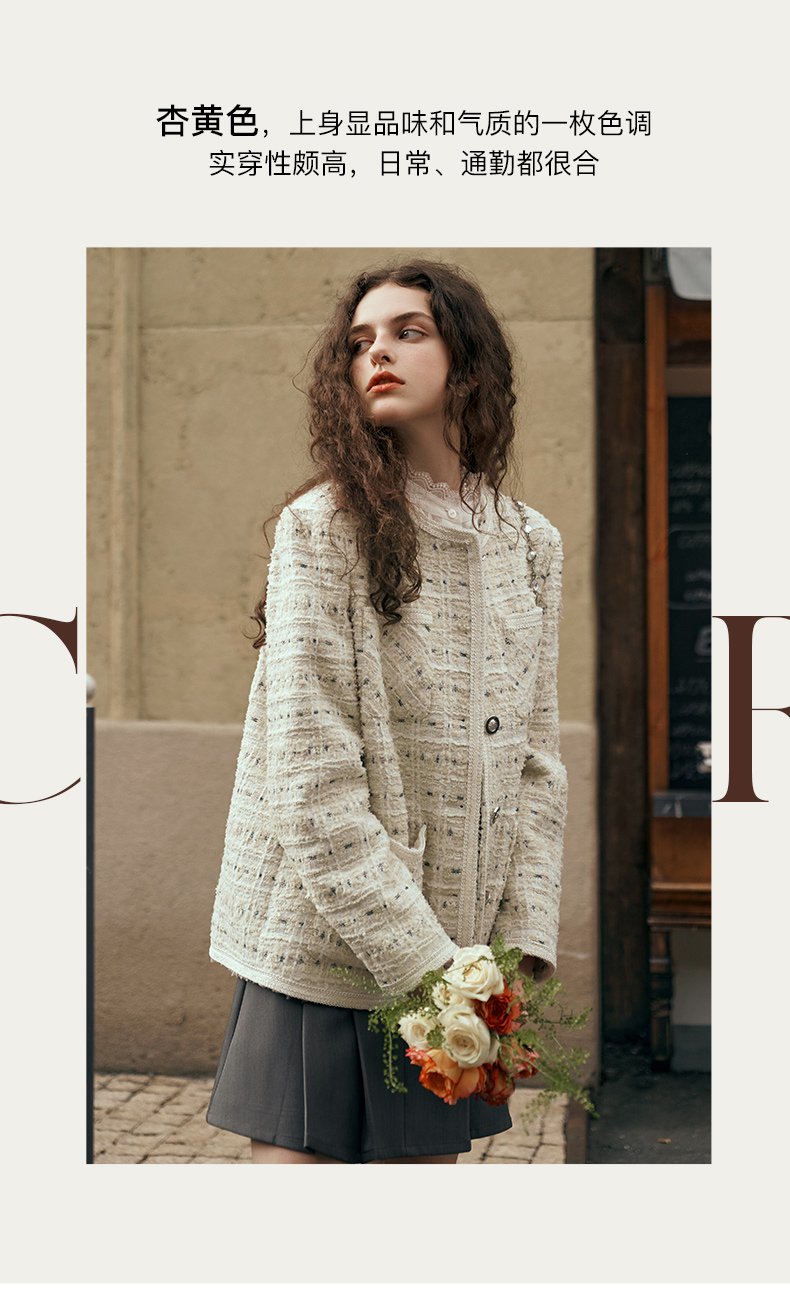 OLrain欧芮儿小香风中长外套女初秋2023年新款时尚气质通勤上衣