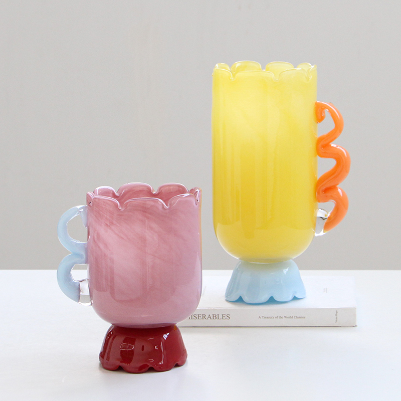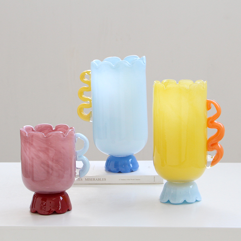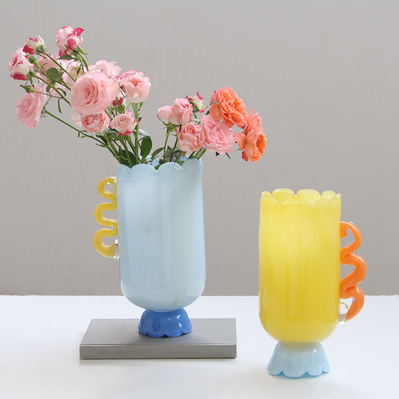 北欧创意单耳直筒彩色玻璃花瓶玄关客厅台面餐桌装饰品鲜花瓶