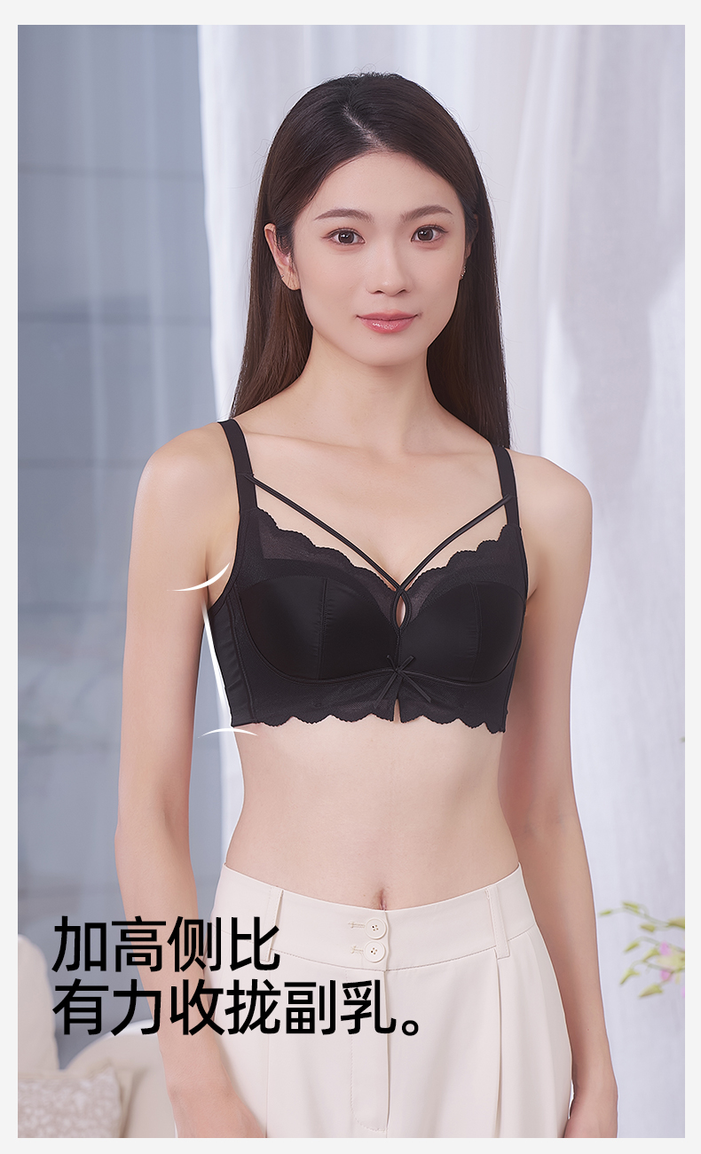 【拍2件199元】【薄杯】熳洁儿 小胸聚拢文胸法式性感交叉带缎面网纱商场同款25201537
