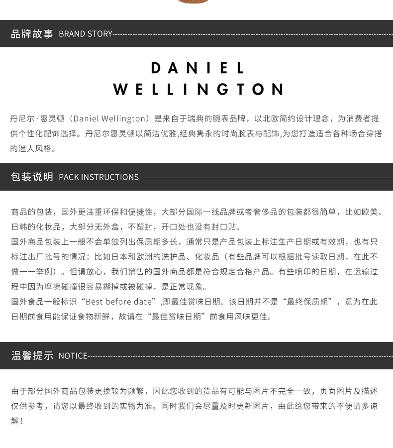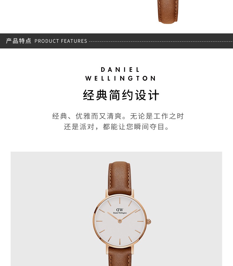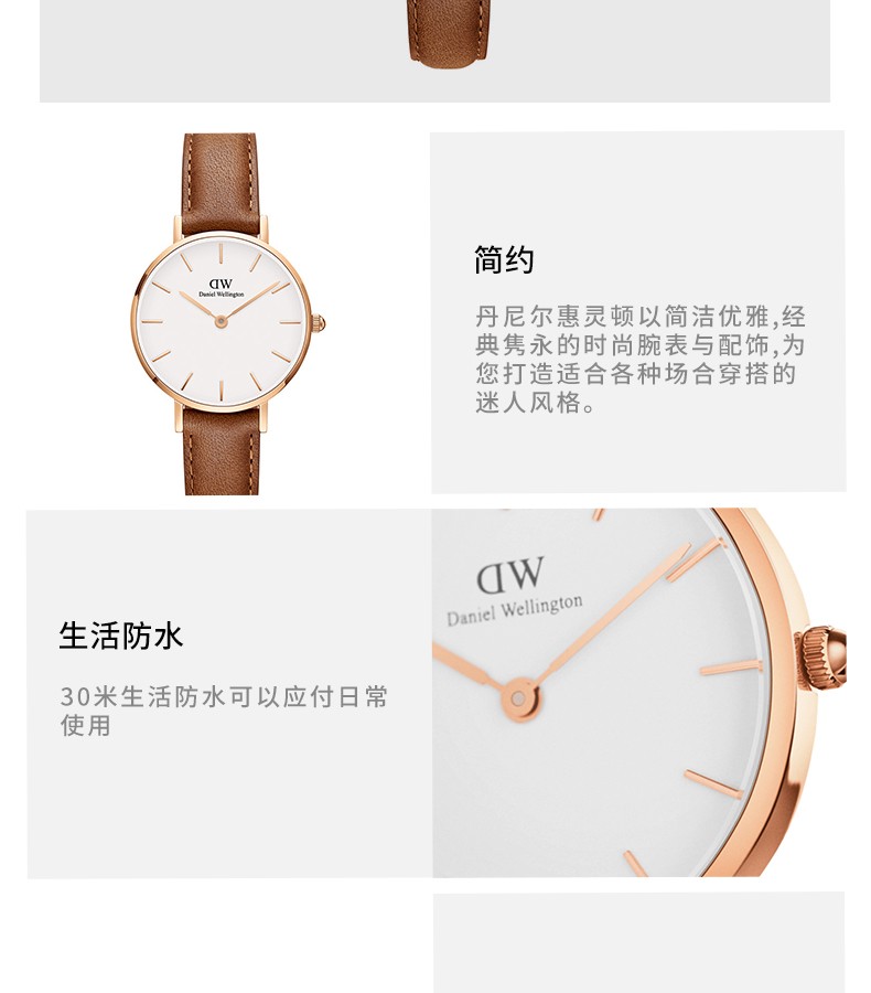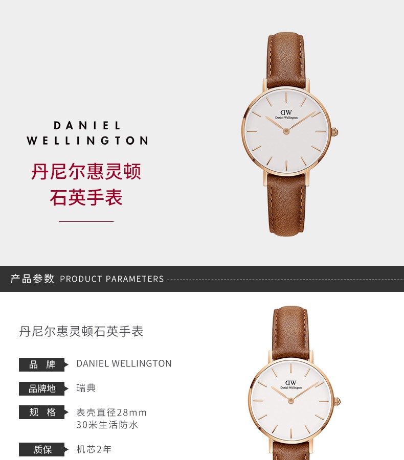 DANIEL WELLINGTON/女表金色边皮革表带28mm白盘石英表DW00100228JPY带授权招加盟代理
