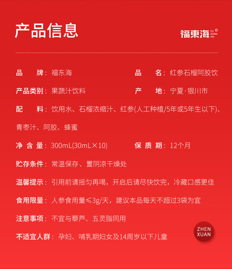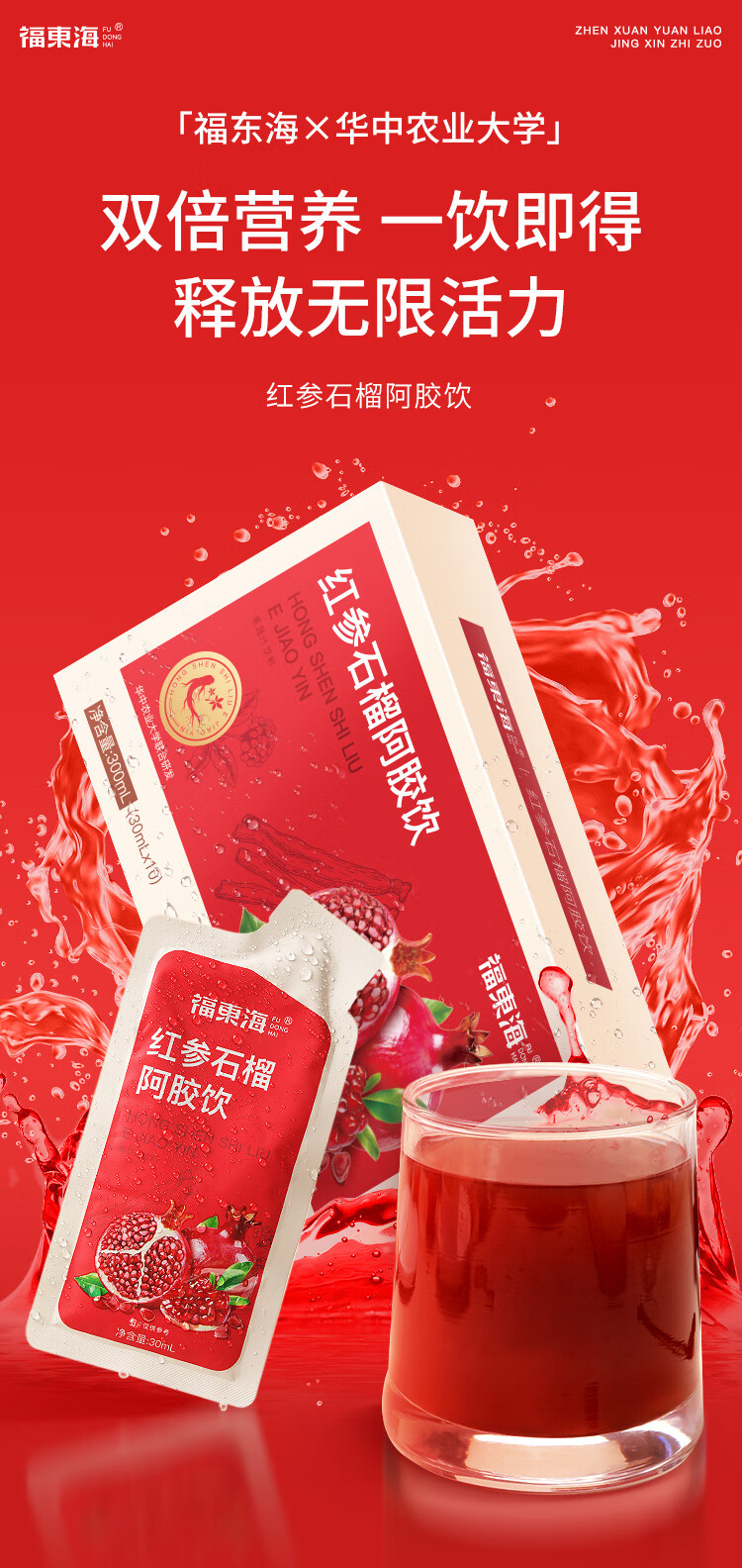 【分仓直发包邮】福东海红参石榴阿胶饮300ml/盒(30mlx10袋)