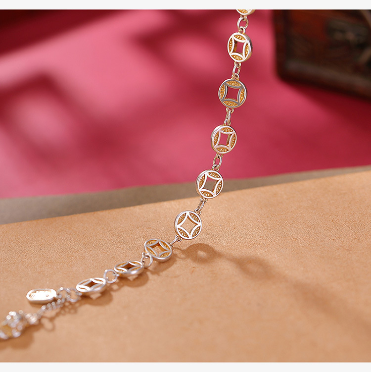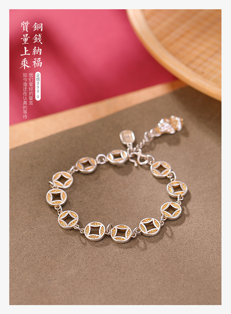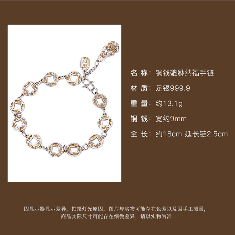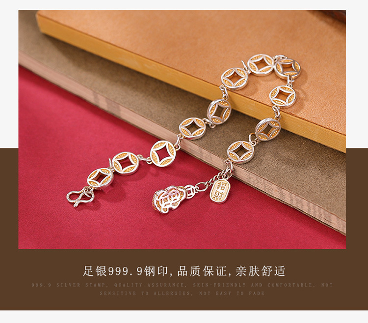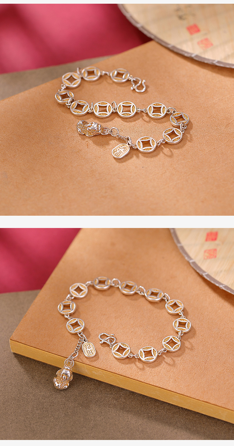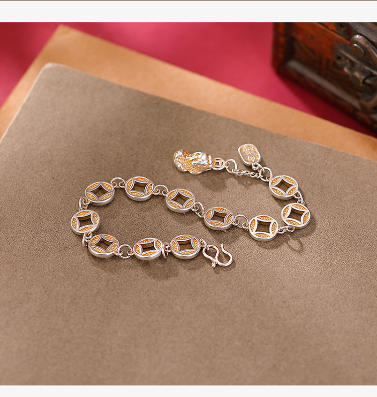 【貔貅纳福】S999银足银描金铜钱古风大气招财手链【CW-SL11758】