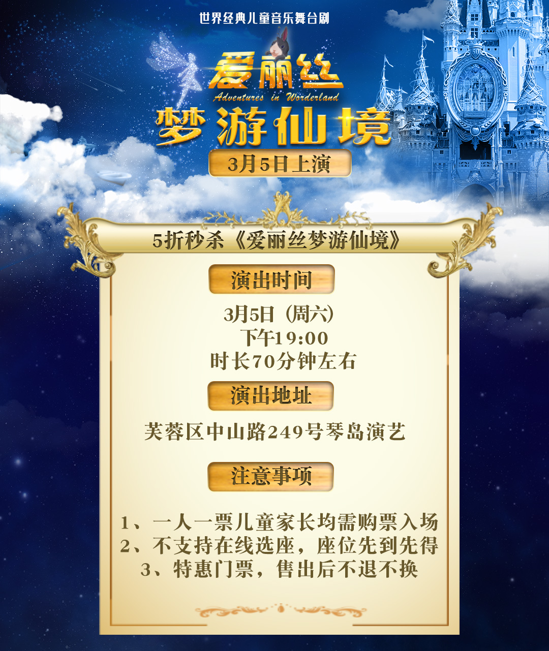 3月5号儿童剧《爱丽丝梦游仙境》门票秒杀