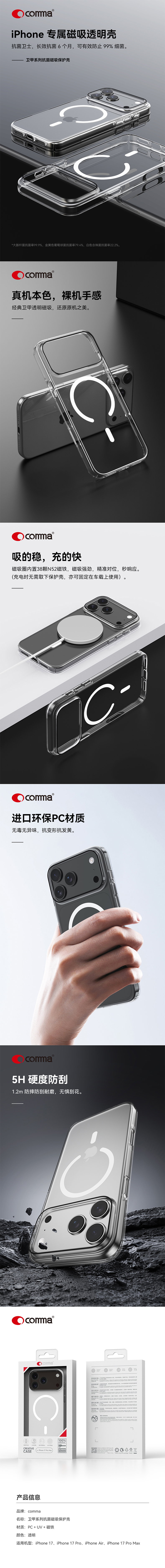 COMMA珂玛 iPhone 系列 卫甲系列抗菌磁吸保护壳-17 系列