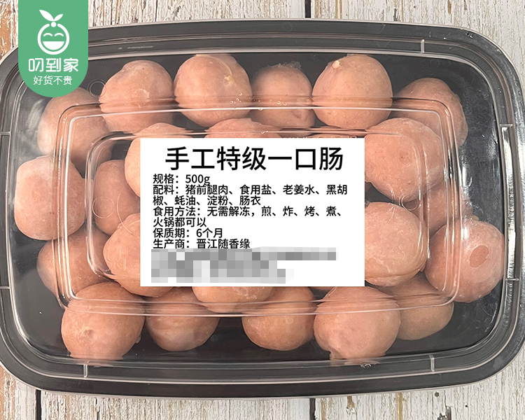 随香缘纯猪肉原味手工一口肠(约500g/盒)生产日期: 12月17日