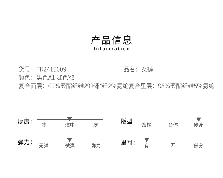 VIVIAN LIU薇薇安刘R2425002春女装新款腹部捏褶通勤直筒长裤