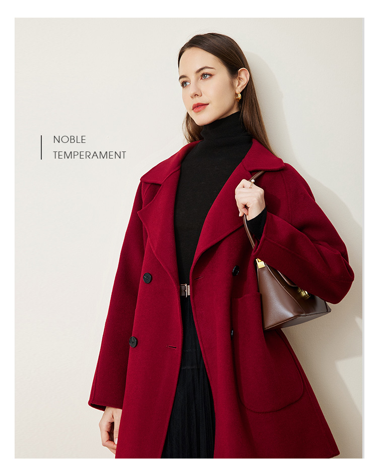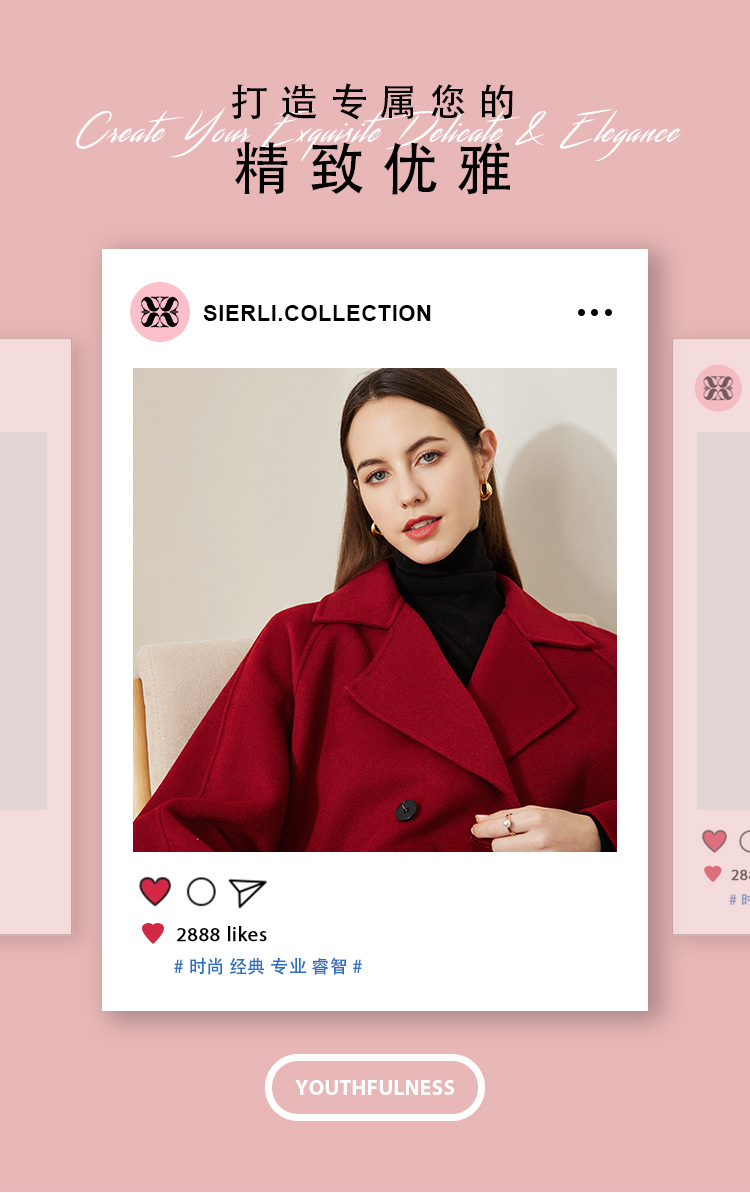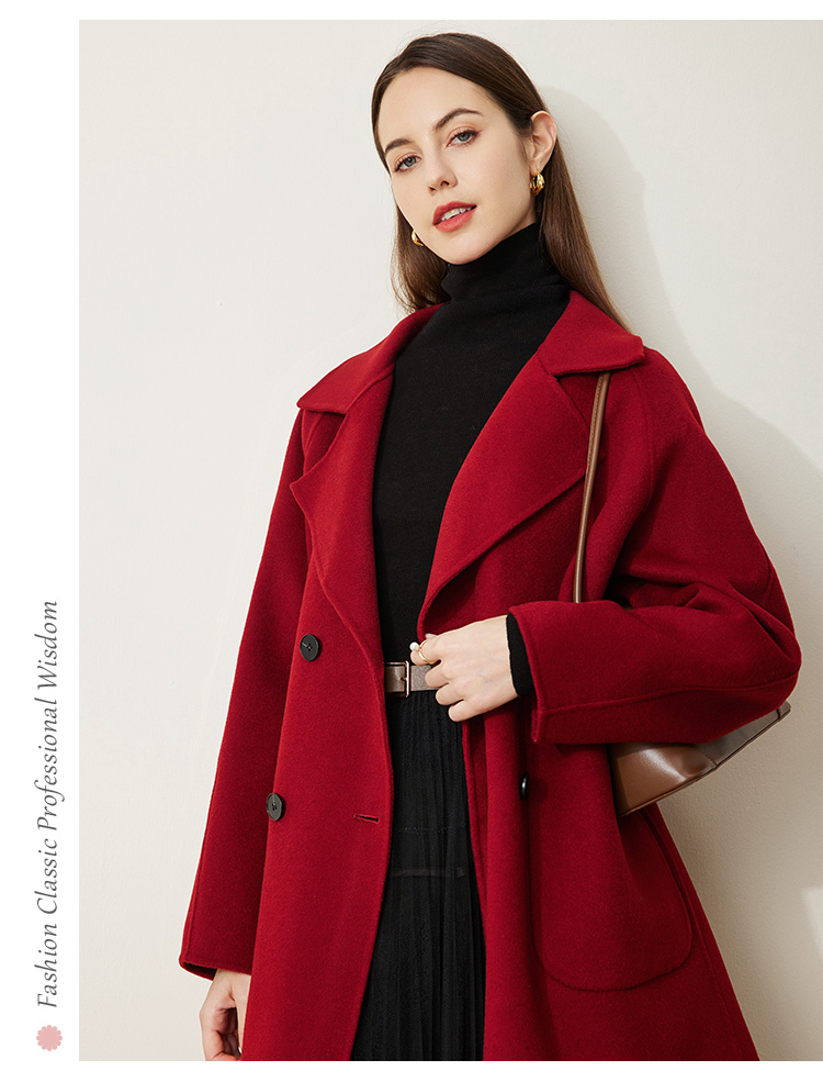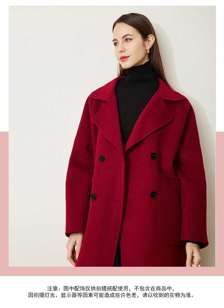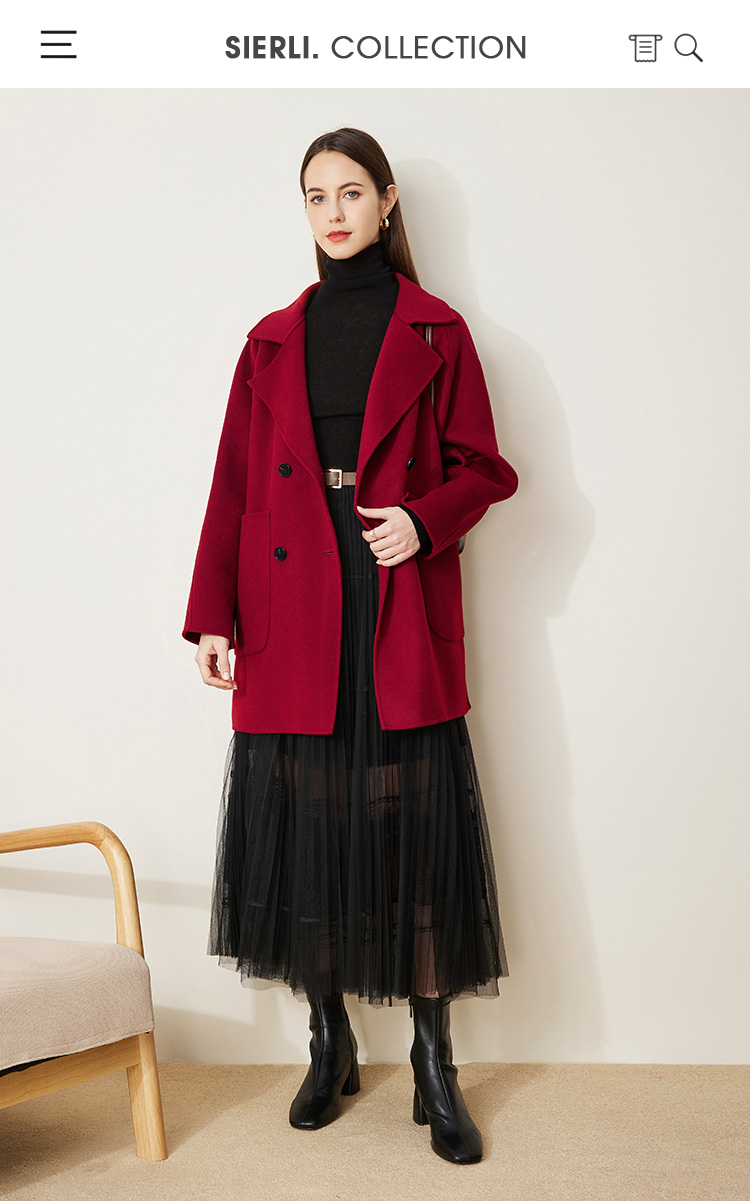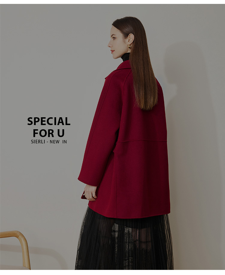LH9U1斯尔丽2021新款秋冬瑟俪淑女风纯色气质百搭优雅外套双面呢大衣女