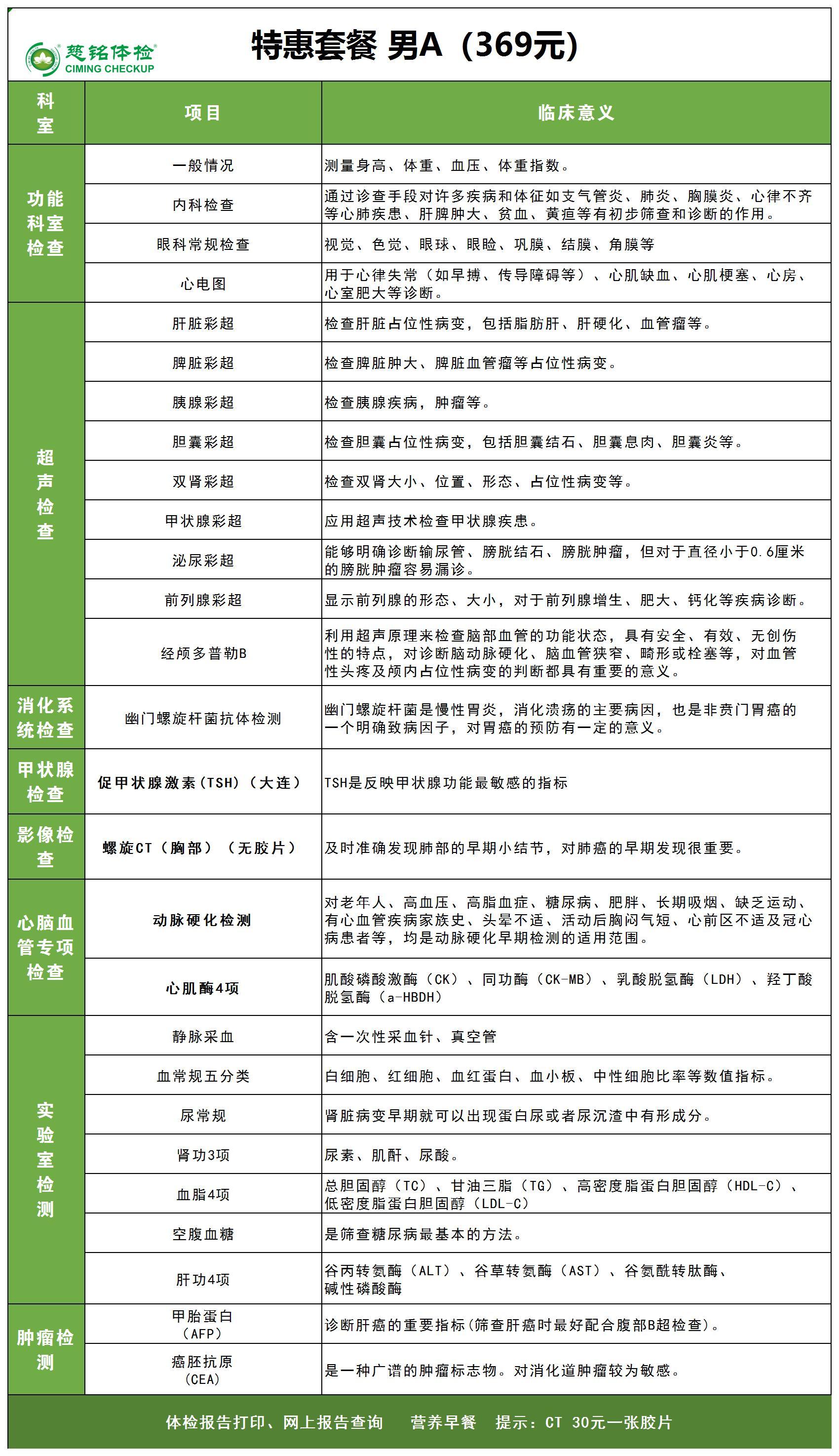 慈铭体检-369元男士专享精品套餐