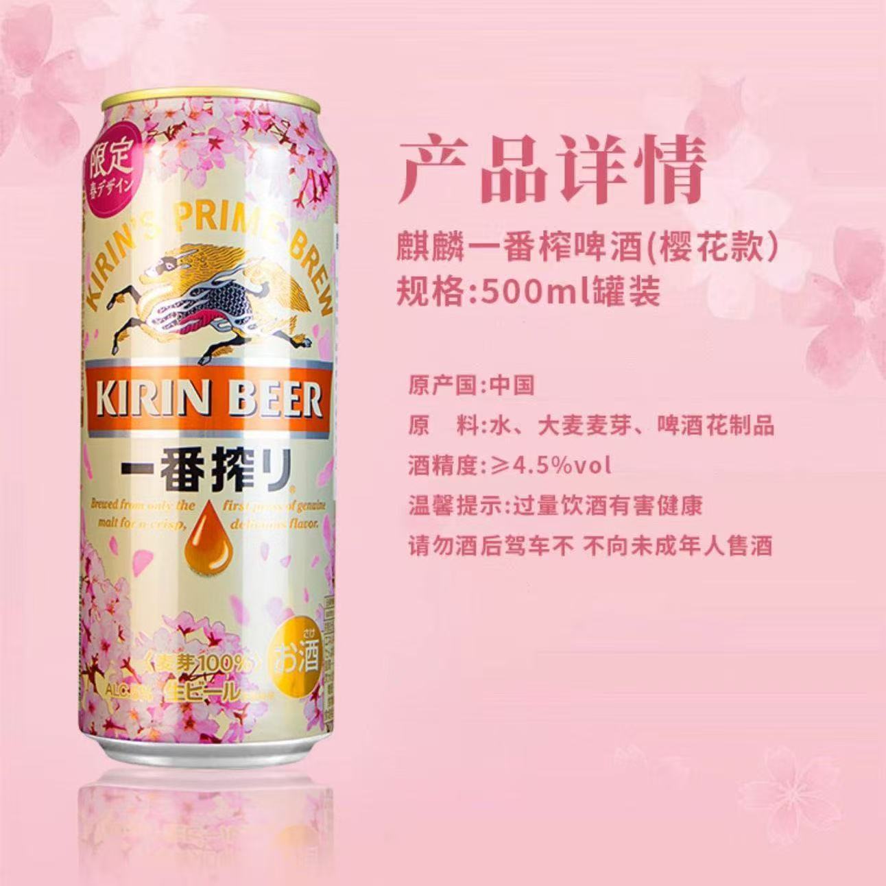 麒麟一番榨啤酒(樱花款)春季限定 酒精度:4.5° 麦芽度:11°