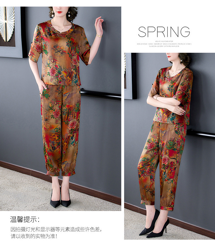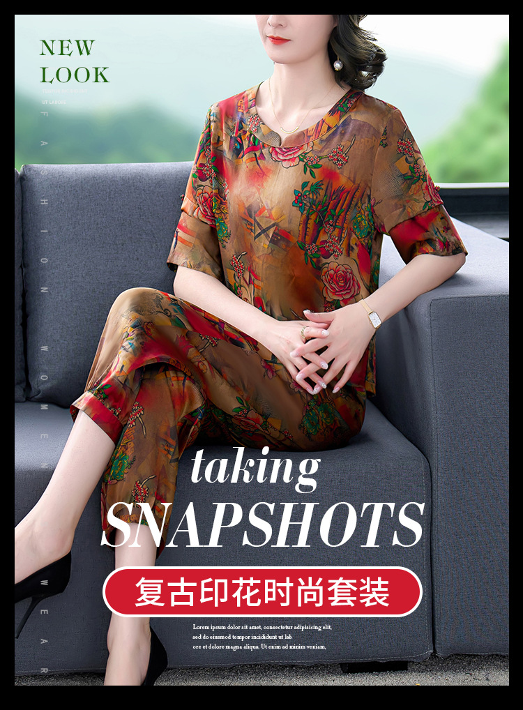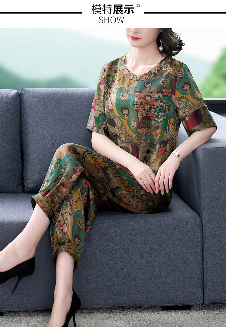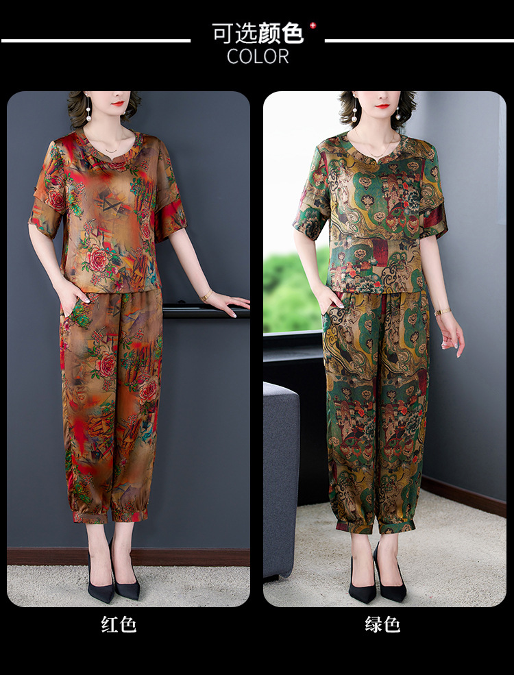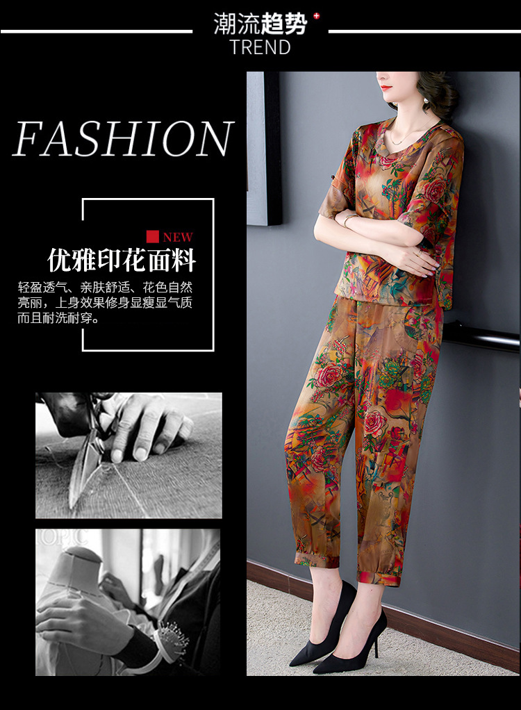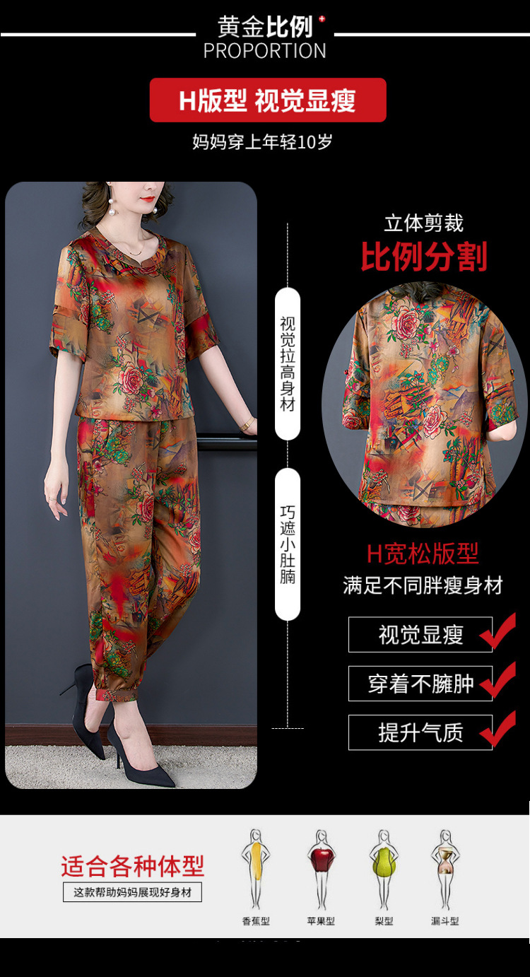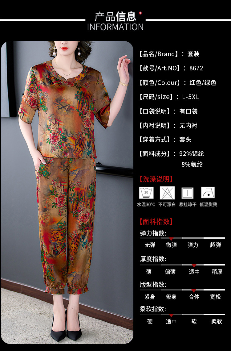 仿香云纱套装,中年妈妈气质通勤休闲时尚两件套YMR8672
