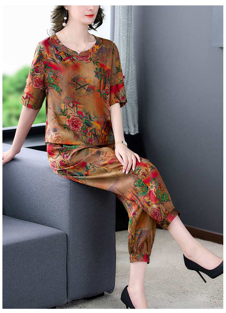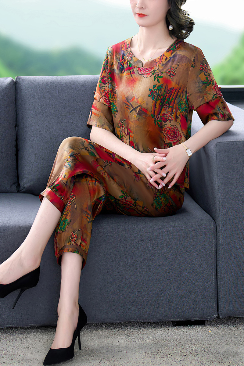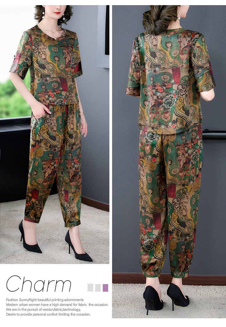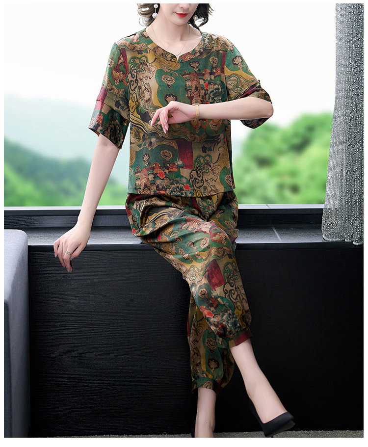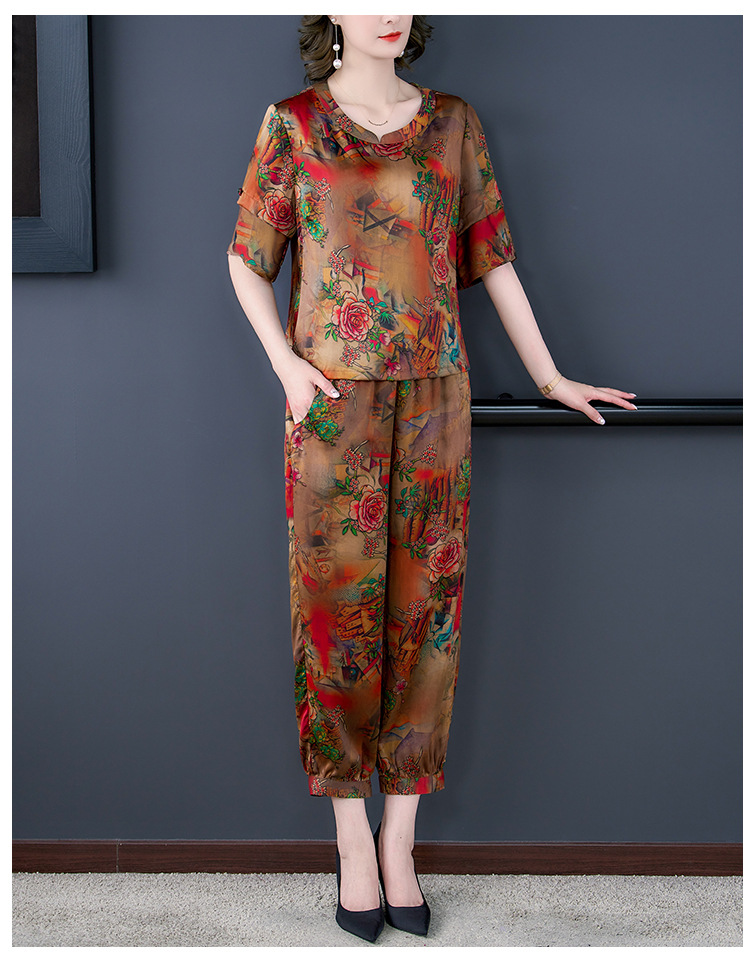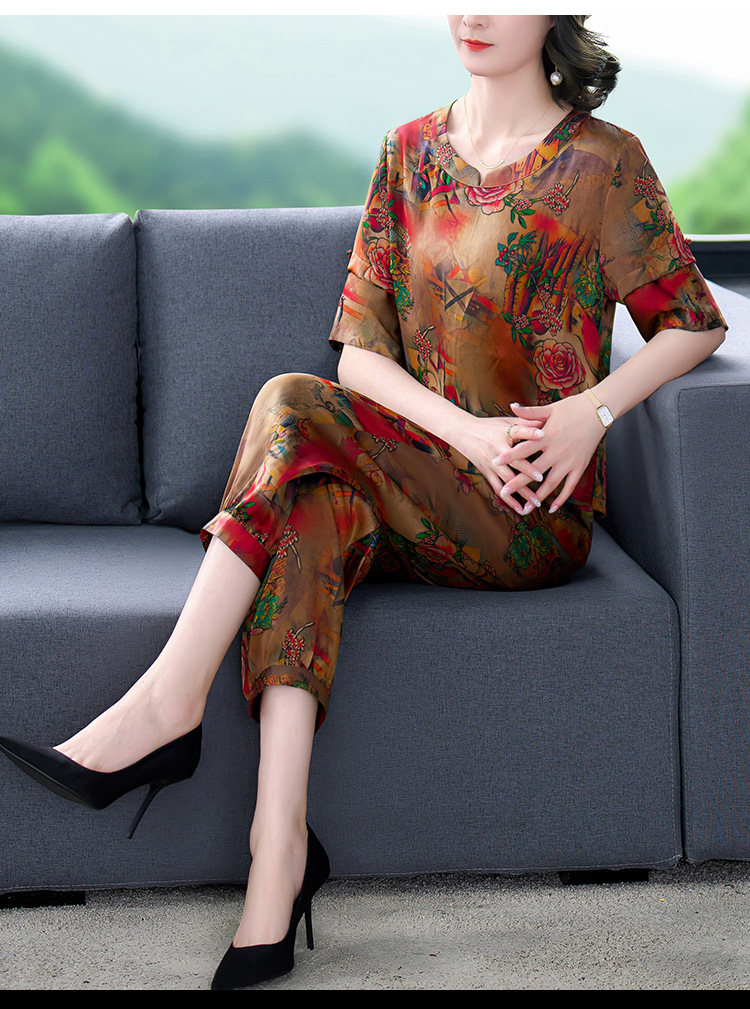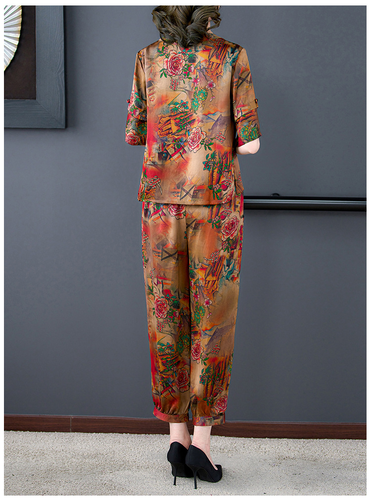 仿香云纱套装,中年妈妈气质通勤休闲时尚两件套YMR8672